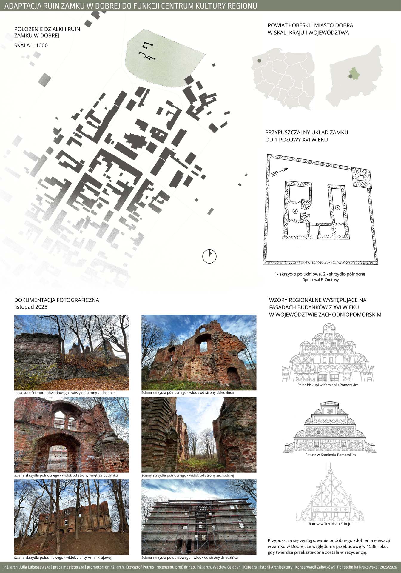 Projekt zakłada adaptację ruin zamku w Dobrej (powiat łobeski) do funkcji centrum kultury regionu, łączącego działalność edukacyjną, społeczną, rekreacyjną oraz promocyjną. Głównym celem koncepcji jest przywrócenie historycznemu założeniu znaczenia jako miejsca integracji lokalnej społeczności, przy jednoczesnym zachowaniu i wyeksponowaniu jego zabytkowej substancji. Obiekt ma stać się przestrzenią aktywną, dostępną i atrakcyjną zarówno dla mieszkańców, jak i turystów.