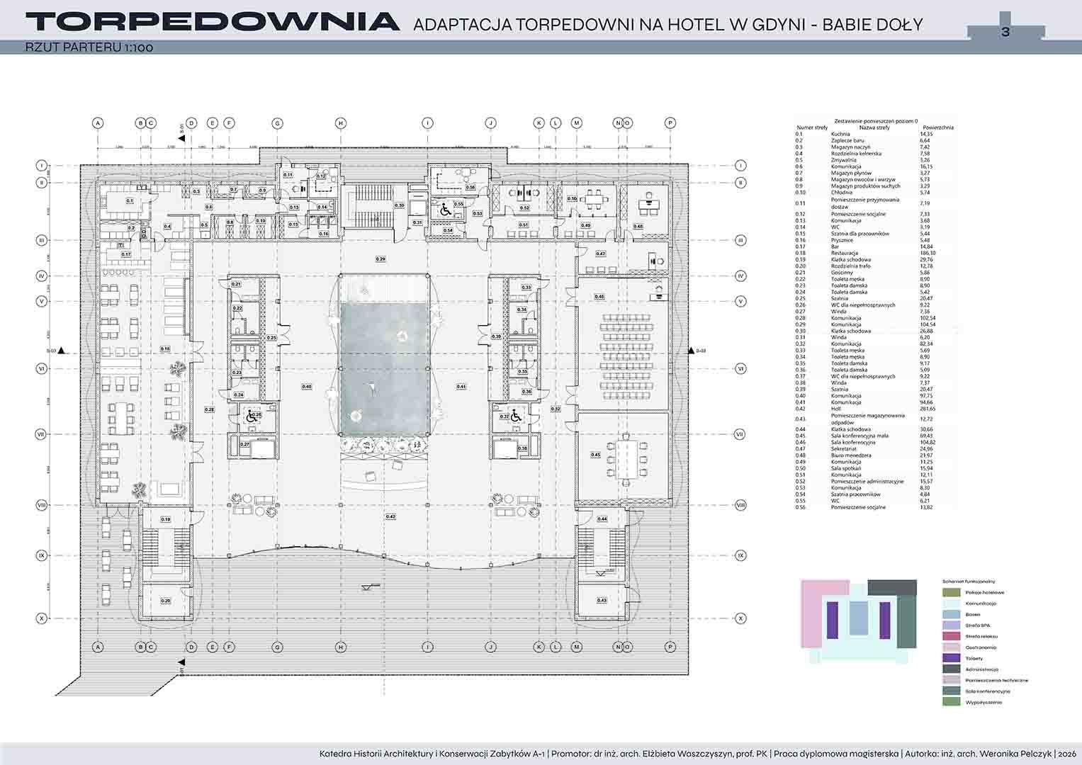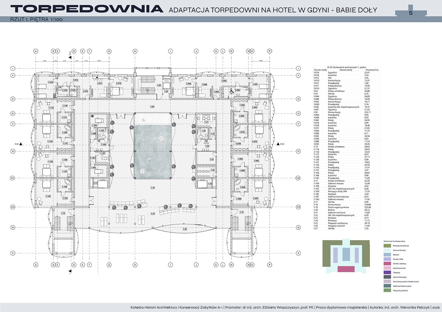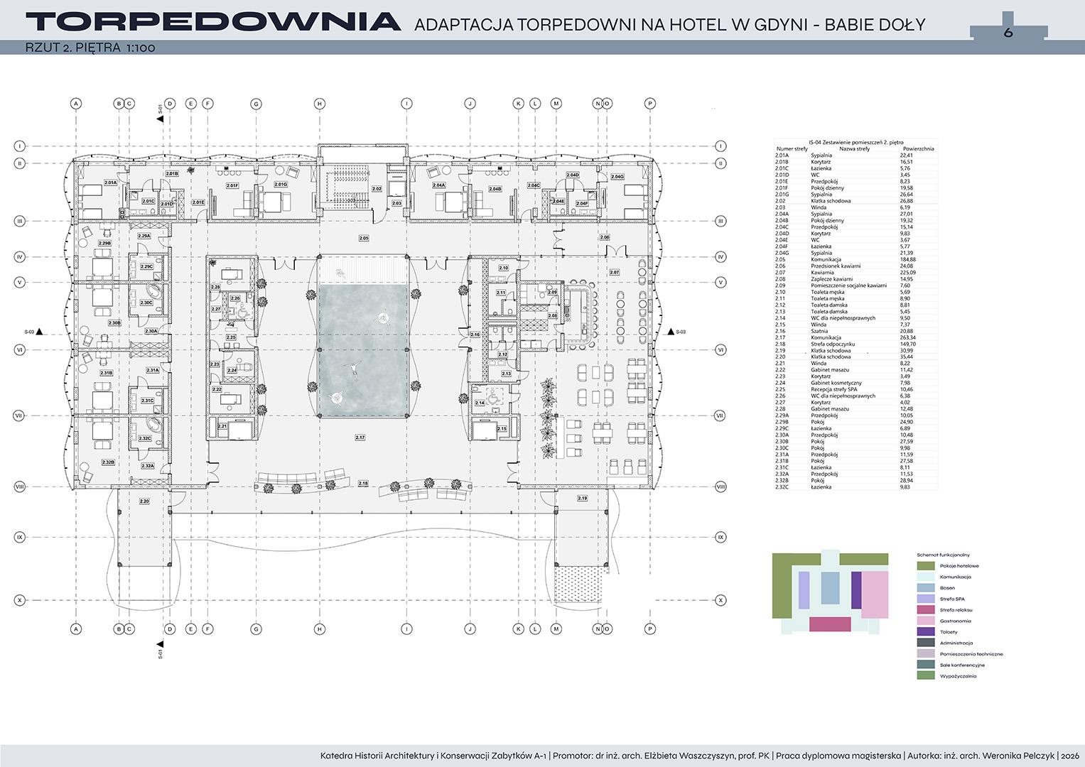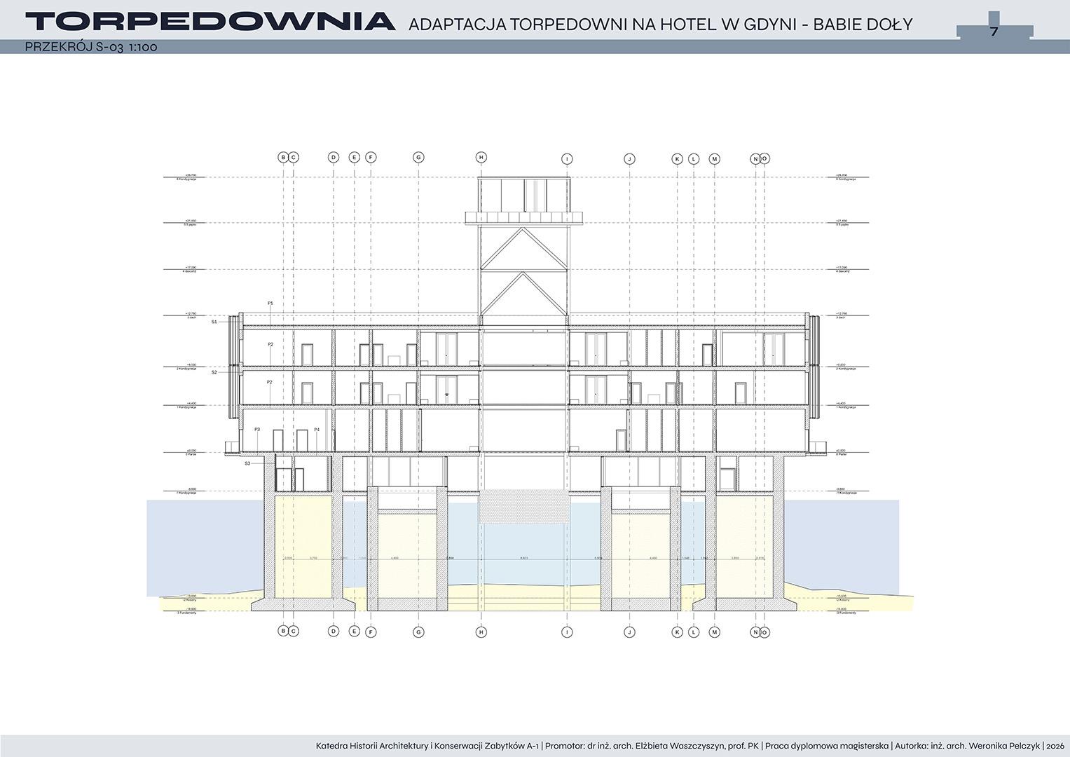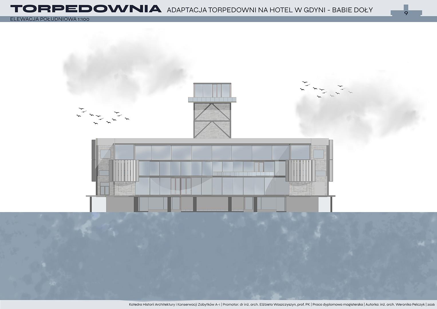Tematem pracy dyplomowej jest adaptacja torpedowni na funkcję hotelową. Projekt zakłada przywrócenie życia obiektowi, który od lat pozostaje w stanie ruiny, a jednocześnie niezmiennie fascynuje i intryguje mieszkańców oraz turystów. Nowa funkcja ma na celu ponowne włączenie torpedowni w strukturę miasta i uczynienie jej dostępną dla użytkowników.