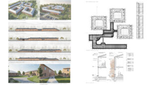 Ideą projektu jest stworzenie kameralnego ośrodka opiekuńczo-terapeutycznego dla osób zmagających się z demencją, zlokalizowanego w miejscowości Wielgomłyny, w spokojnym, zielonym otoczeniu sprzyjającym wyciszeniu i poczuciu bezpieczeństwa. Projekt zakłada powstanie obiektu o czytelnej, prostej strukturze przestrzennej, dostosowanej do możliwości percepcyjnych użytkowników. Układ funkcjonalny oparto na krótkich, intuicyjnych ciągach komunikacyjnych, eliminujących dezorientację i stres, a przestrzenie wspólne stanowią naturalne centra życia codziennego mieszkańców. Kluczowym założeniem jest integracja istniejącej zabudowy w otoczeniu zieleni. Szczególny nacisk położono na kontakt z naturą – zaprojektowano dostęp do terenów zielonych i ogrodu terapeutycznego, które wspierają proces leczenia i poprawiają jakość życia podopiecznych. Celem projektu jest stworzenie miejsca łączącego funkcje opiekuńcze, terapeutyczne i społeczne, zapewniającego osobom z demencją godne, bezpieczne i przyjazne środowisko życia.