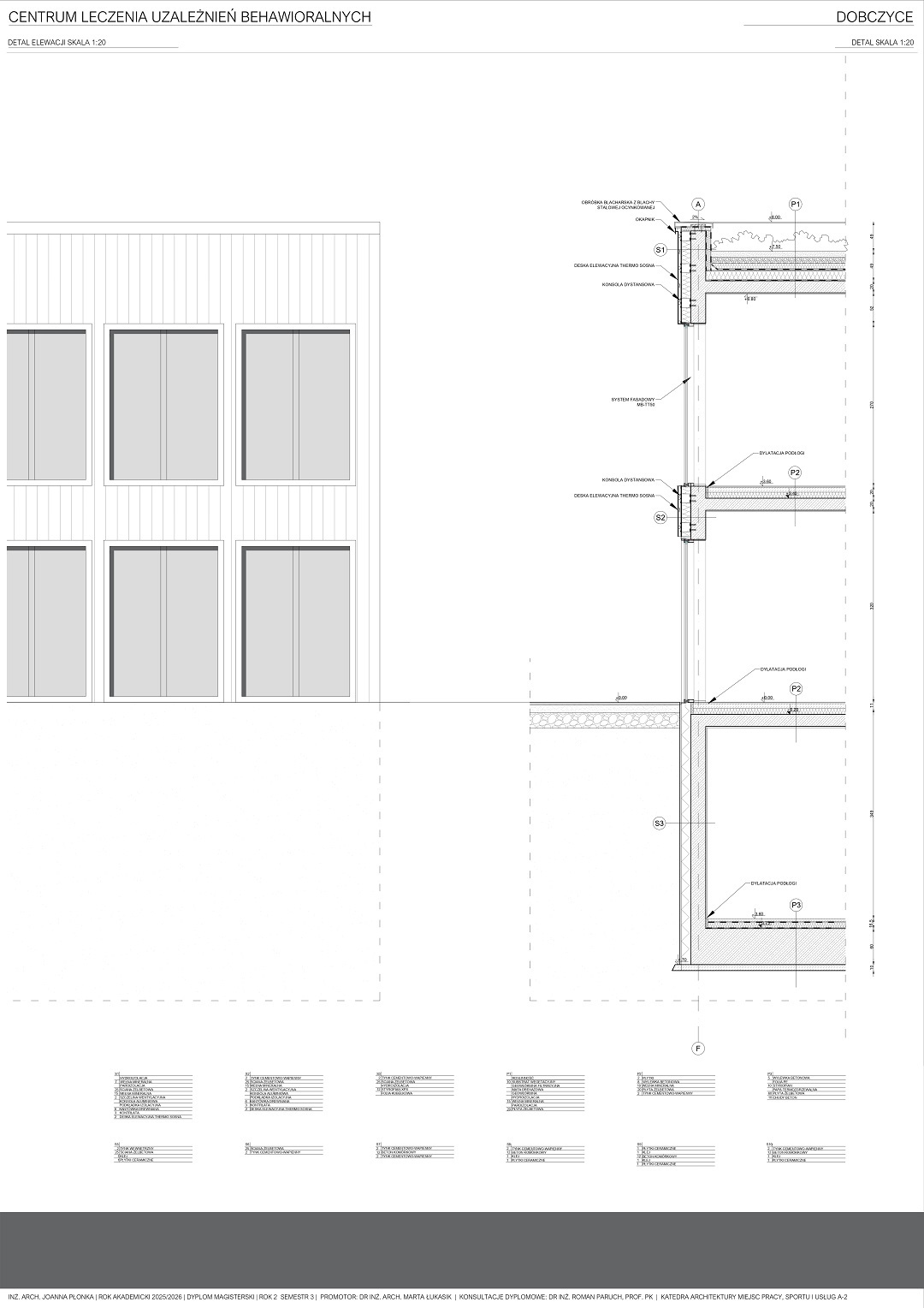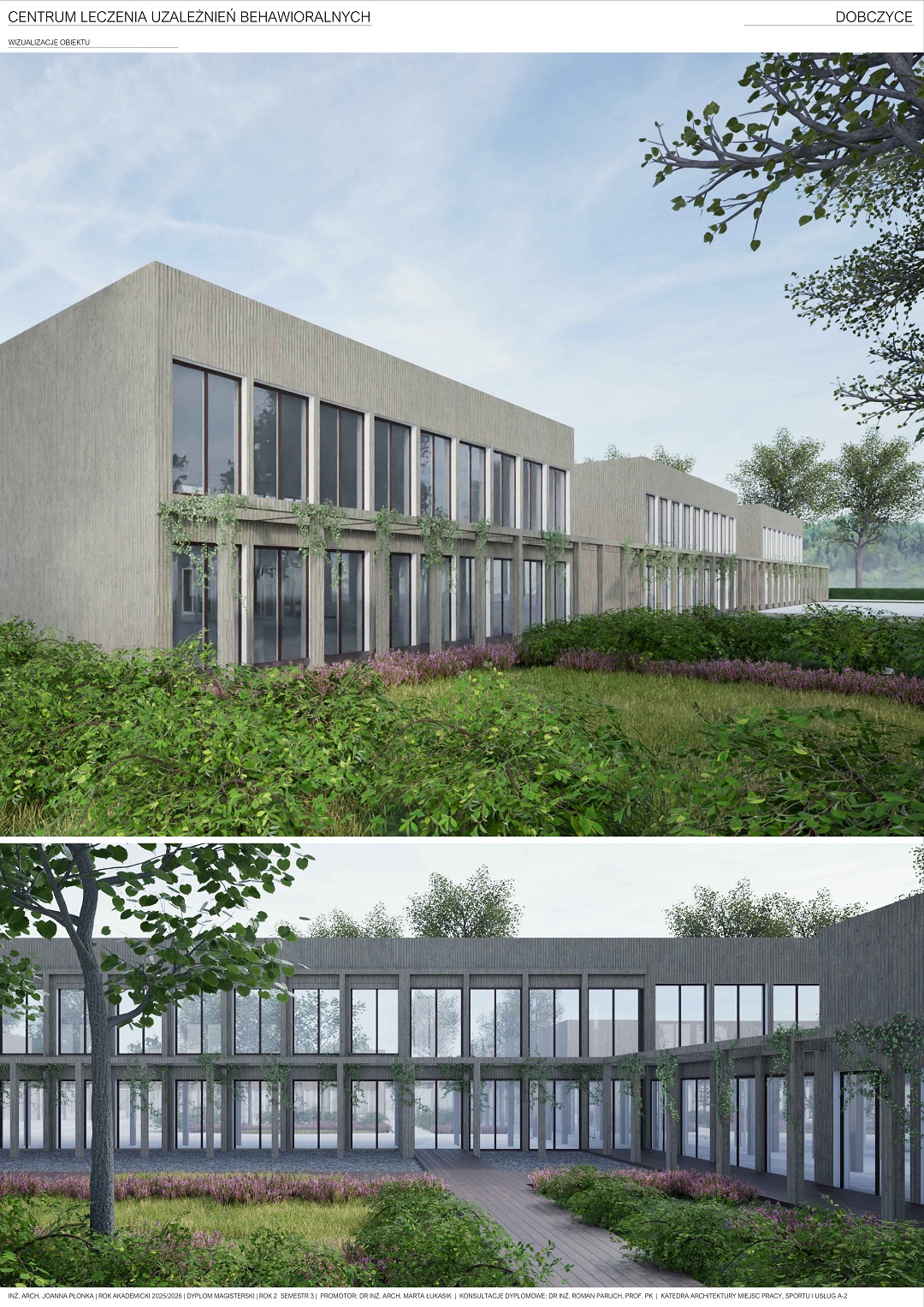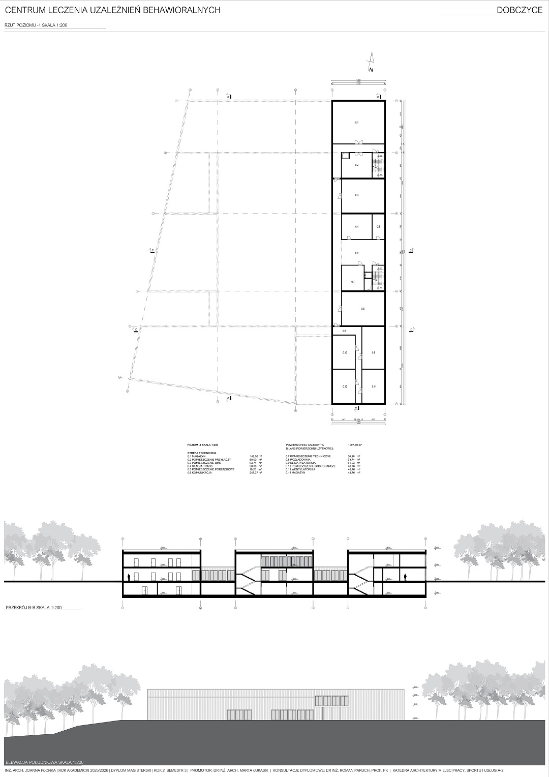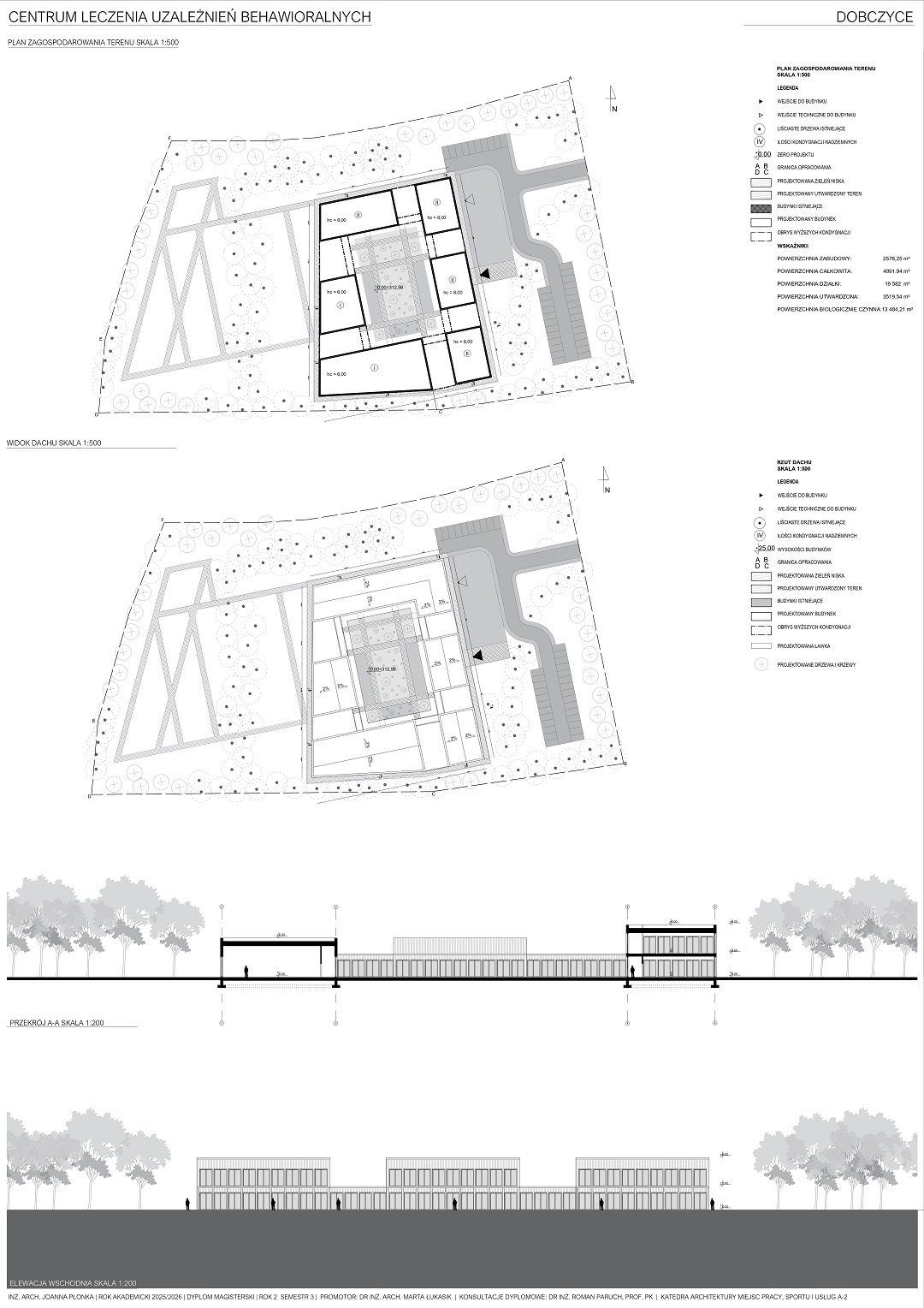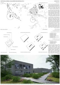 Projekt centrum leczenia uzależnień stworzony jest z myślą o młodych ludziach pragnących wyjść z uzależnienia w przyjaznej atmosferze oraz przestrzeni. Obiekt jest przeznaczony dla osób zmagających się z uzależnieniami behawioralnymi w wieku 13-18 lat. Na terenie obiektu pacjenci będą przechodzić terapię uzależnień oraz wykonywać różnego rodzaju aktywności fizyczne jak i społeczne. Głównym celem jest stworzenie funkcjonalnej przestrzeni dla pacjentów, które spełni wszystkie ich potrzeby.