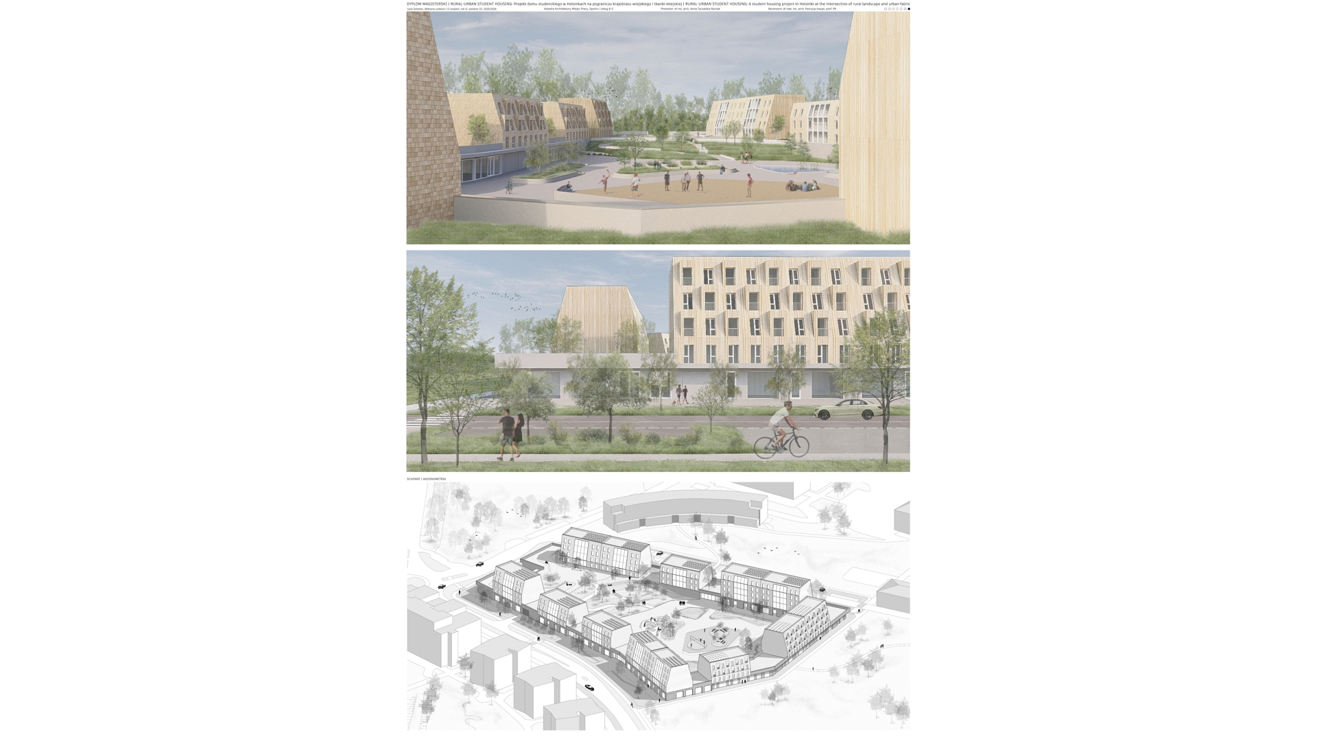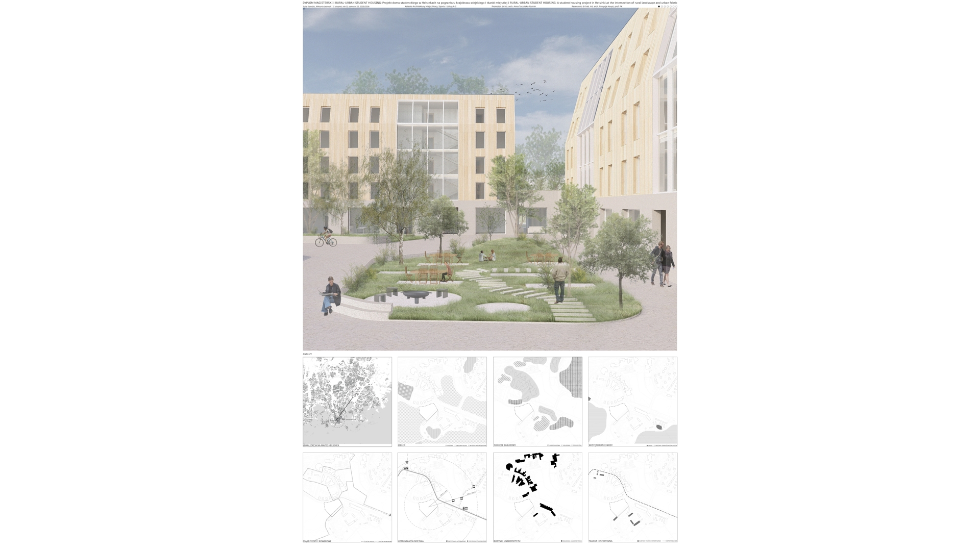 Tematem pracy magisterskiej jest projekt akademika zlokalizowanego w Helsinkach w Finlandii. Projekt zakłada stworzenie przestrzeni przyjaznych do życia dla wszystkich studentów. Ma być miejscem integracji, ale jednocześnie miejscem odpoczynku w prywatnej przestrzeni. Kluczowym czynnikiem jest jego lokalizacja, znajduje się w bezpośrednim sąsiedztwie Uniwersytetu Helsińskiego, w oddalonej o około 8 kilometrów od centrum dzielnicy Vikki. Budynek został podzielony na różnorodne strefy funkcjonalne. Parter stanowi bazę całego założenia i pełni funkcje usługowe, zarówno dla studentów jak i zewnętrznych użytkowników. Wyższe kondygnacje, od pierwszego do piątego piętra stanowią poziomy mieszkalne, gdzie w każdym z nich wyodrębniona została strefa głośna ze strefami wspólnymi mieszkańców wraz z komunikacją oraz strefa cicha, w której znajdują się mieszkania. Głównym celem przy projektowaniu zagospodarowania terenu było stworzenie przestrzeni dostępnej, bezpiecznej, zielonej oraz umożliwiającej zarówno odpoczynek oraz relaks, jak i ruch oraz integrację mieszkańców, czy lokalnej społeczności. Całość założenia opiera się na centralnie położonym budynku akademika, który dzieli zagospodarowanie terenu na dwie części. Pierwsza część została zaprojektowana jako wielofunkcyjna przestrzeń półpubliczna stanowiąca dziedziniec dostępny dla pieszych oraz rowerzystów, natomiast druga część, znajdująca się wokół projektowanego budynku jest już przestrzenią publiczną, dostępną również dla samochodów.