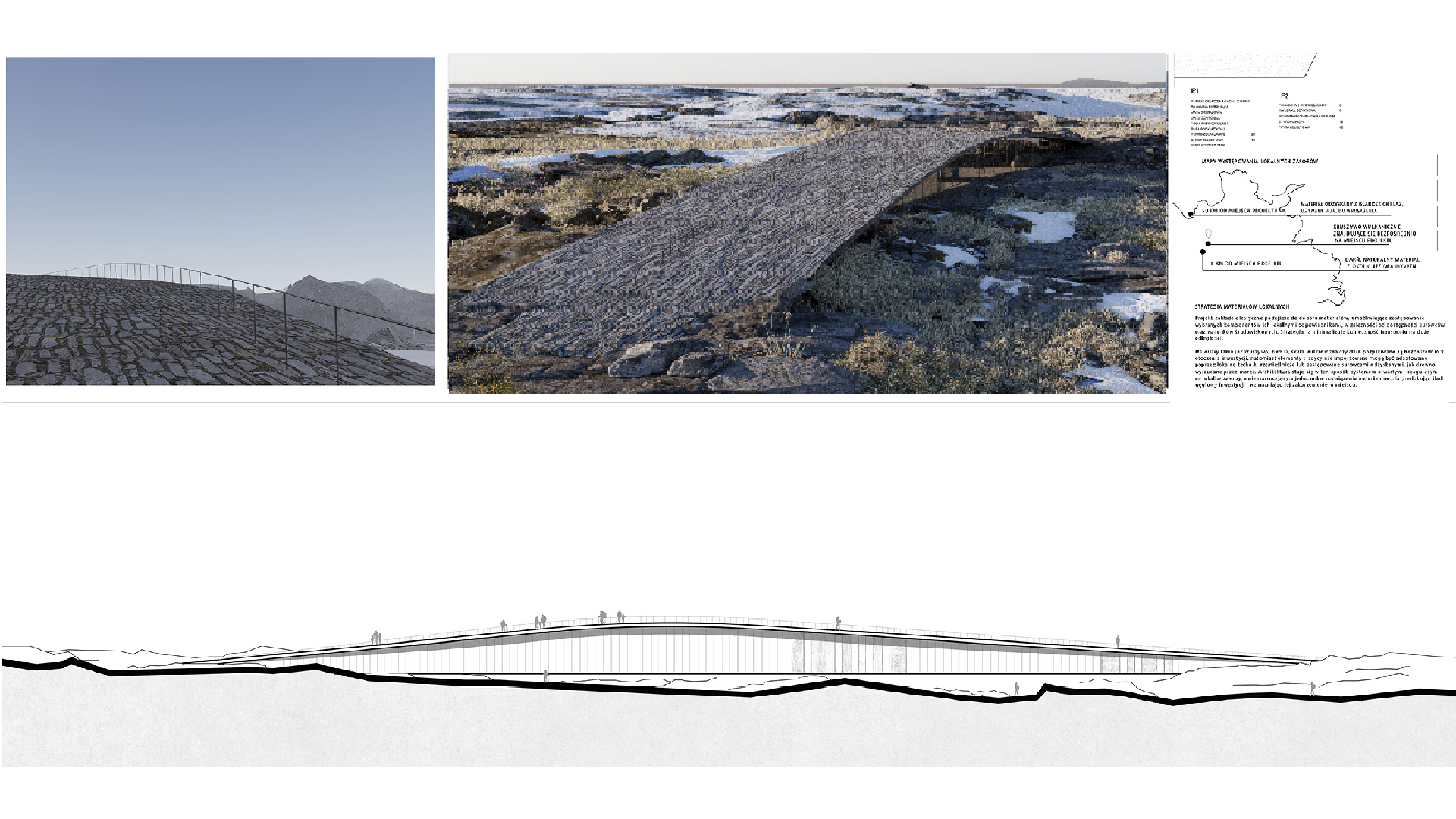 Inspiracją dla układu funkcjonalnego stały się naturalne formacje skalne występujące na polach lawowych. Ich geometria posłużyła jako punkt wyjścia układu funkcjonalnego, który naśladuje abstrakcyjny kształt lawy, organizujący przestrzeń budynku. W projekcie wykorzystano naturalne surowce charakterystyczne dla tego regionu Islandii, podkreślając ideę architektury jako przedłużenia krajobrazu i narzędzia jego ochrony.