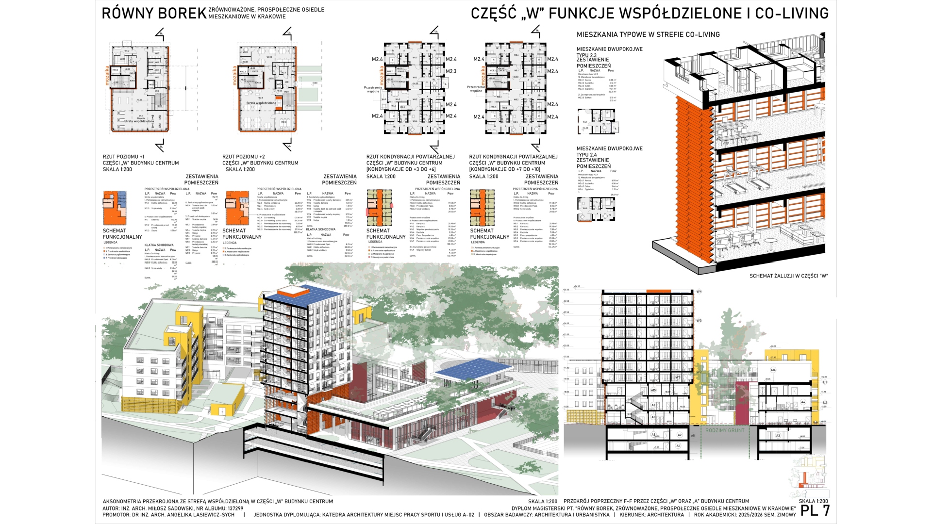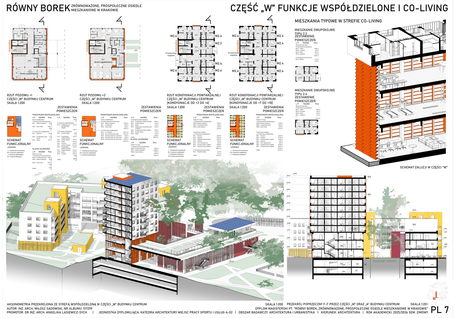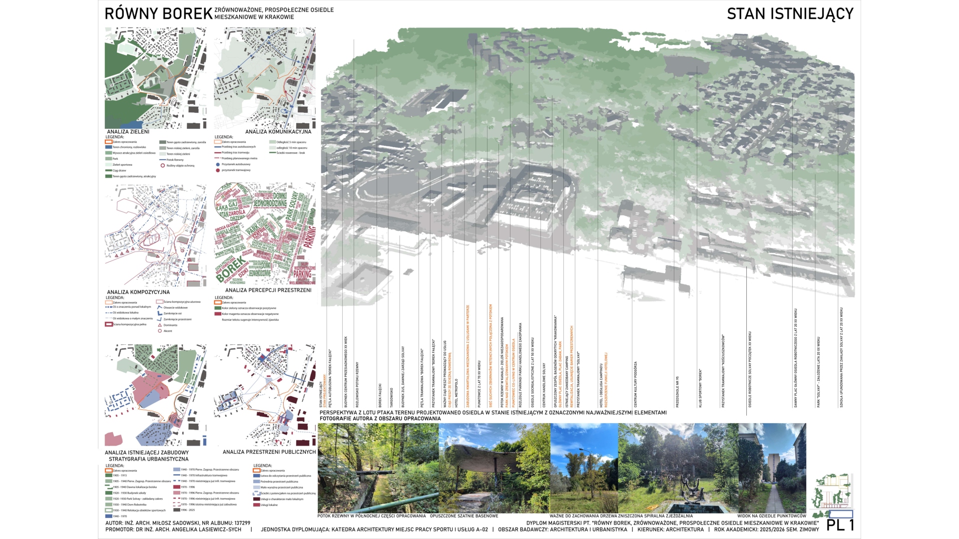 Projekt obejmuje zagospodarowanie terenu blisko Borku Fałęckiego w Krakowie w celu powstania zrównoważonego, pro-społecznego osiedla mieszkaniowego z funkcjami kulturowymi i usługami oraz towarzyszącymi obiektami budowlanymi. Zaprojektowano zabudowę w układzie przeważająco kwartałowym. Cześć z lokali projektowanych na osiedlu stanowi strukturę mieszkaniową co-living. W centrum założenia znajduje się zrewitalizowany obszar opuszczonego basenu otwartego, przekształconego w obszerny zbiornik akumulacyjny wody deszczowej wraz z parkiem, skateparkiem, placem zabaw oraz pawilonem handlowym. Osiedle przecina sucha rzeka, która ma pozwolić na akumulację wody opadowej. Projekt zakłada również powstanie budynku hybrydowego w centralnej części osiedla łączącego funkcję publiczną ogólnodostępną ze współdzielonymi przestrzeniami dla mieszkańców oraz strefami mieszkalnymi.