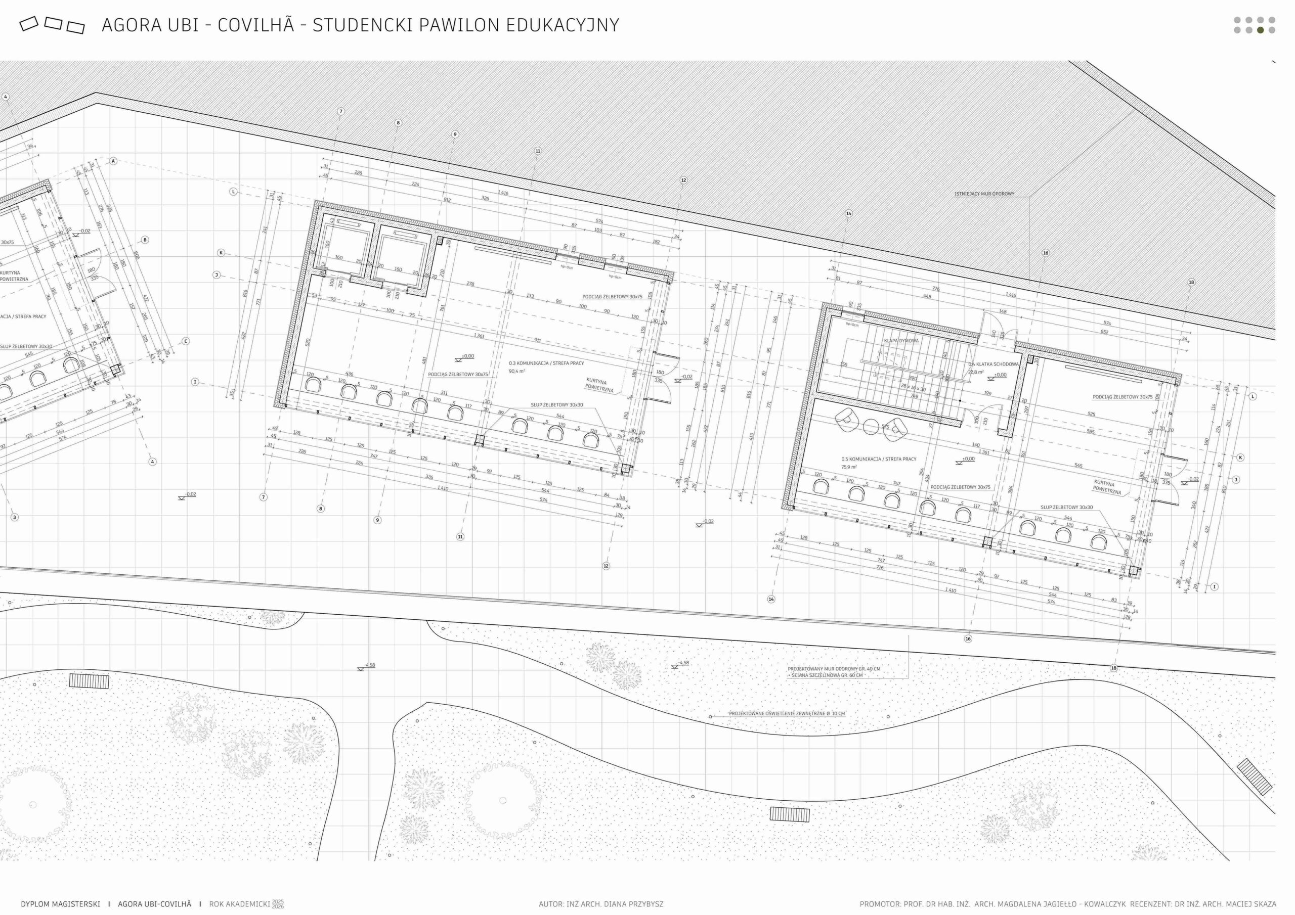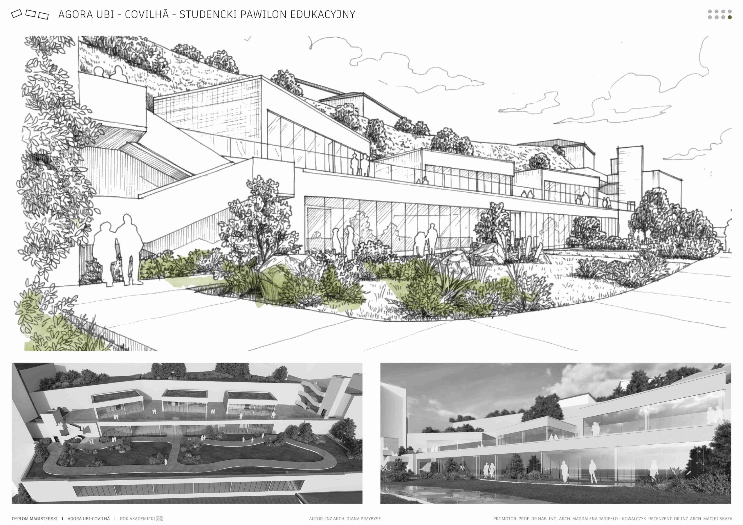 Projekt wraz z pracą pisemną obejmuje obszary wydziałów University of Beira Interior ( UBI ) w miejscowości Covilhã, Portugalia. Pomimo wysokiego poziomu kształcenia i dosyć dużego zainteresowania uczelnią, obiekty pozostają rozpierzchnięte po niemal całej miejscowości, nie posiadając wspólnego łącznika. Założenie przewiduje stworzenie połączenia między wydziałami , które projektowano z myślą o integracji i rozwoju. Przyjmuje ono formę przestrzeni społecznej z pawilonem, małą architekturą, miejscami spotkań i odpoczynku, który jako nowy element aranżacyjny ma za zadanie współgrać z istniejącą już zabudową , wzbogacając jej dotychczasową funkcję. Obiekt wpisuje się w zastaną konfigurację terenu, ciekawą, ale wymagającą pod względem projektowym z uwagi na występujące różnice wysokości i istniejące mury oporowe. Projekt stworzono przy Wydziale Architektury University of Beira Interior – miejsca położonego centralnie na mapie wydziałów uczelni. Praca dąży do przybliżenia pojęcia Nieformalnych Przestrzeni Uczenia Się i ich wpływu na tkankę kampusów uczelni przy jednoczesnej integracji architektury z istniejącą zabudową oraz terenami zielonymi.