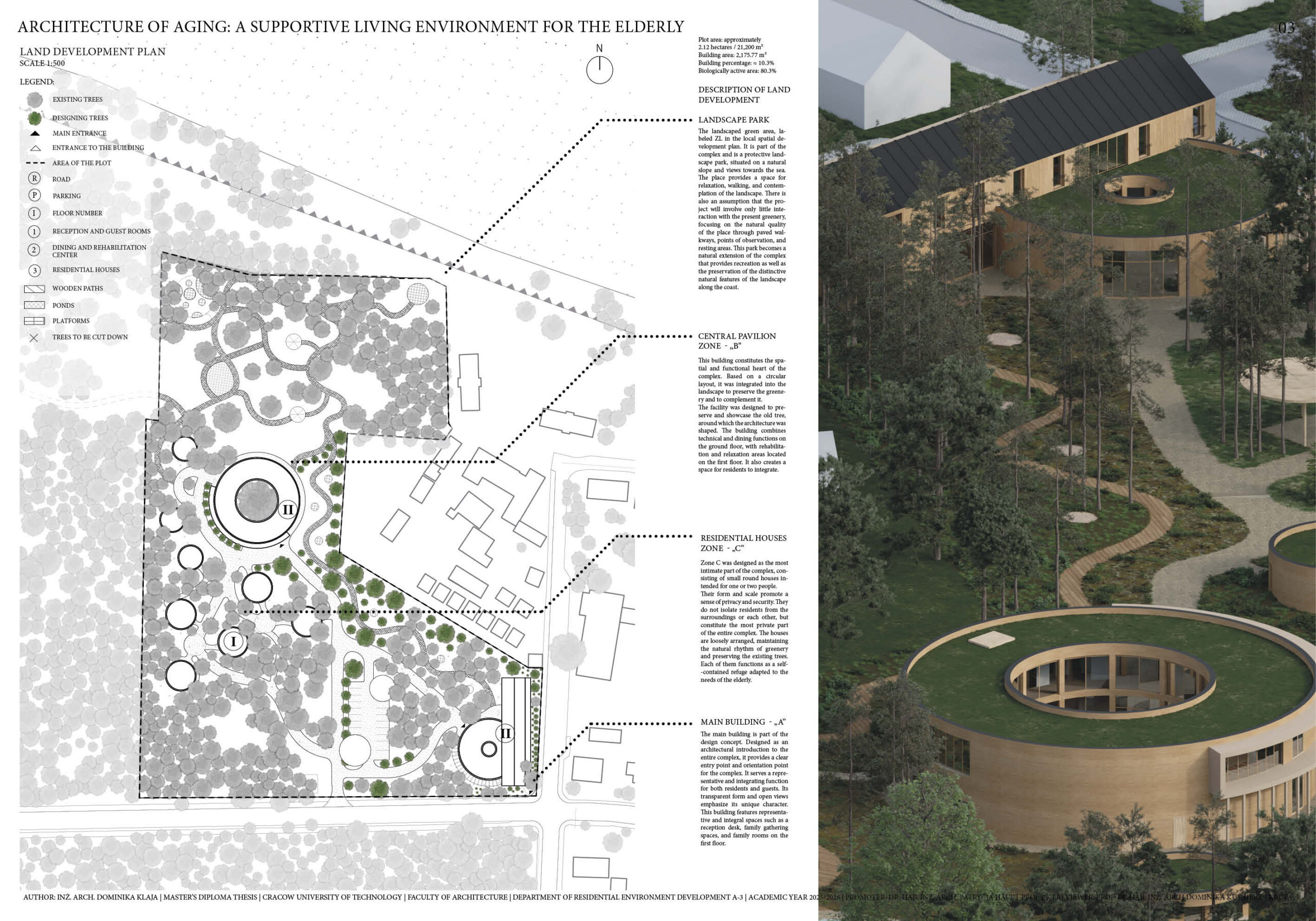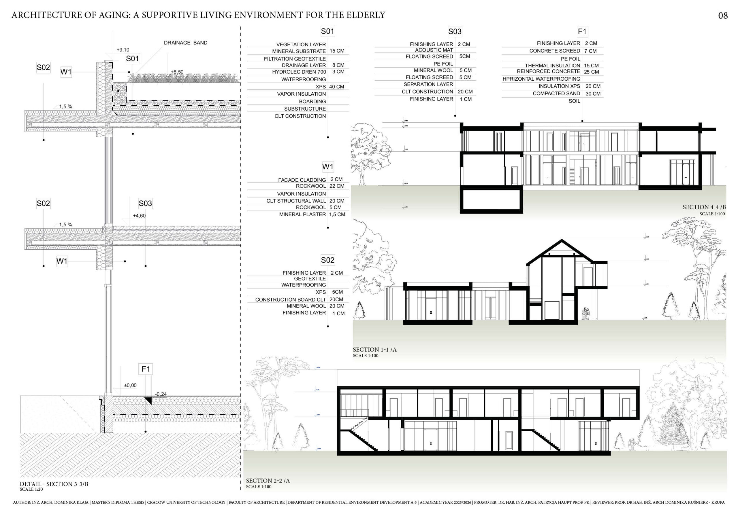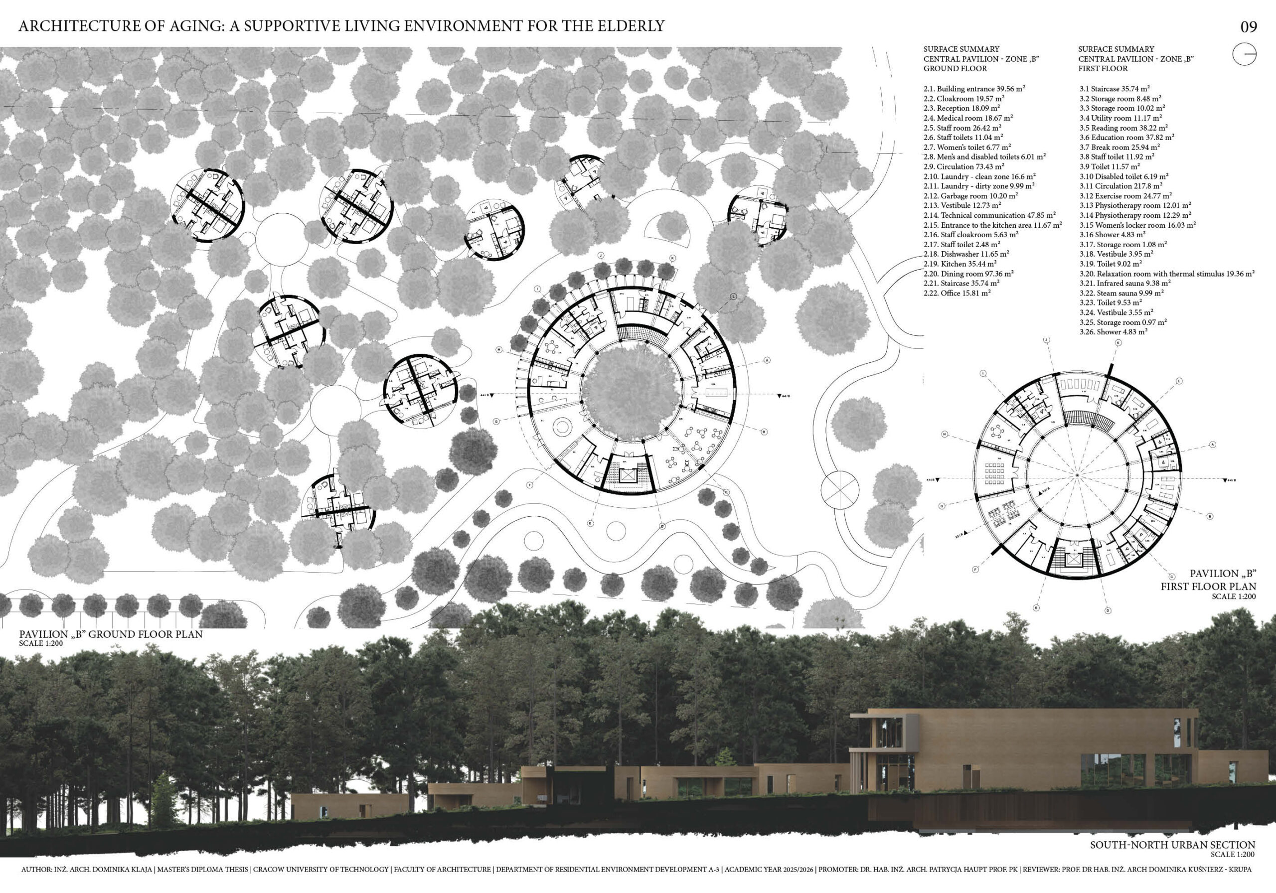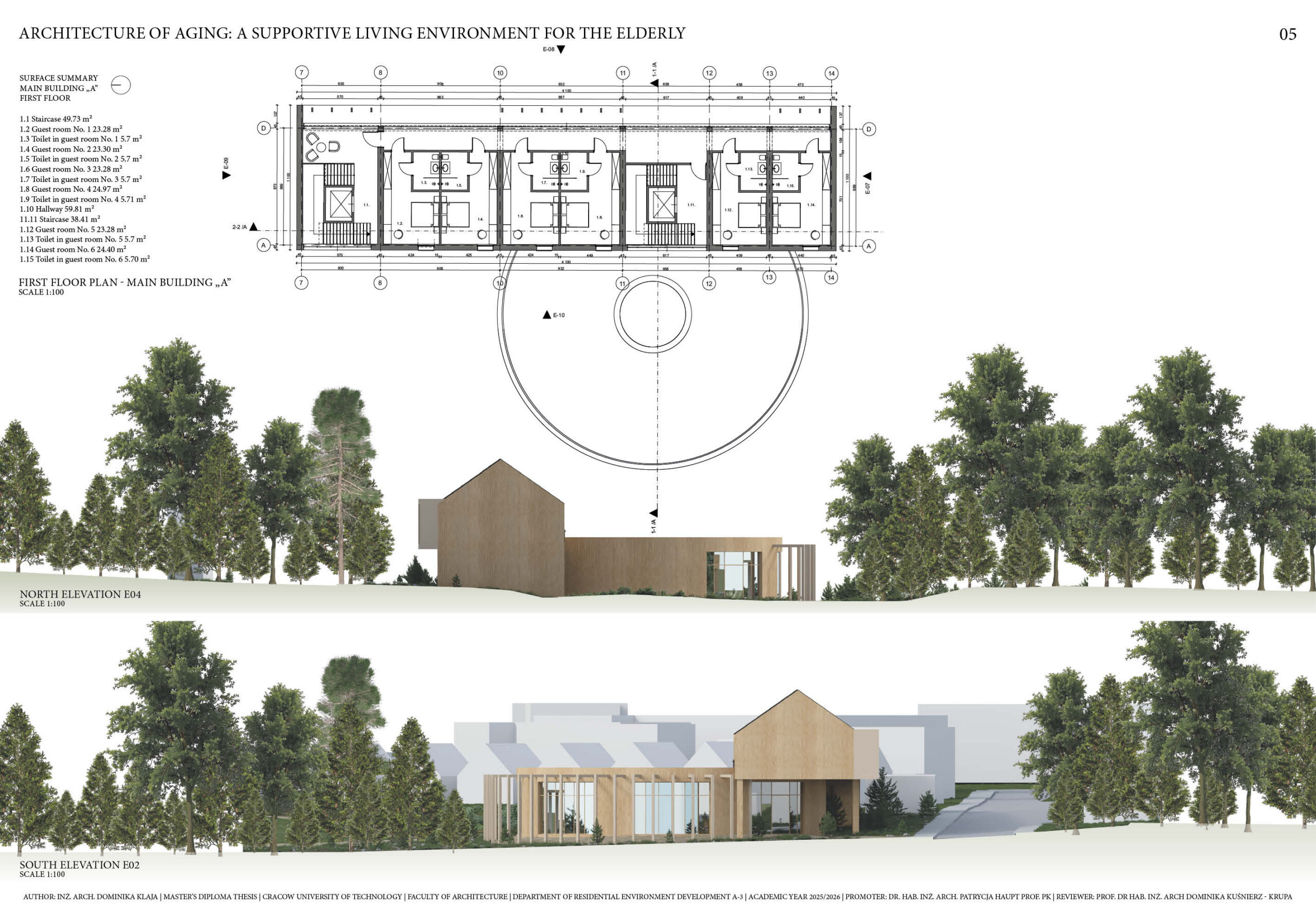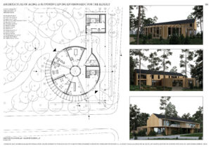 a space that would allow for tranquility, day-to-day activity and contact with nature. The functional and spatial concept enables providing basic medical care and employees’ support without dominating the functions characteristic for medical facilities. The main goal of this project is to create a living environment enabling seniors to live with a sense of autonomy and dignity, while at the same time offering them the basic life supports. The purpose of the work