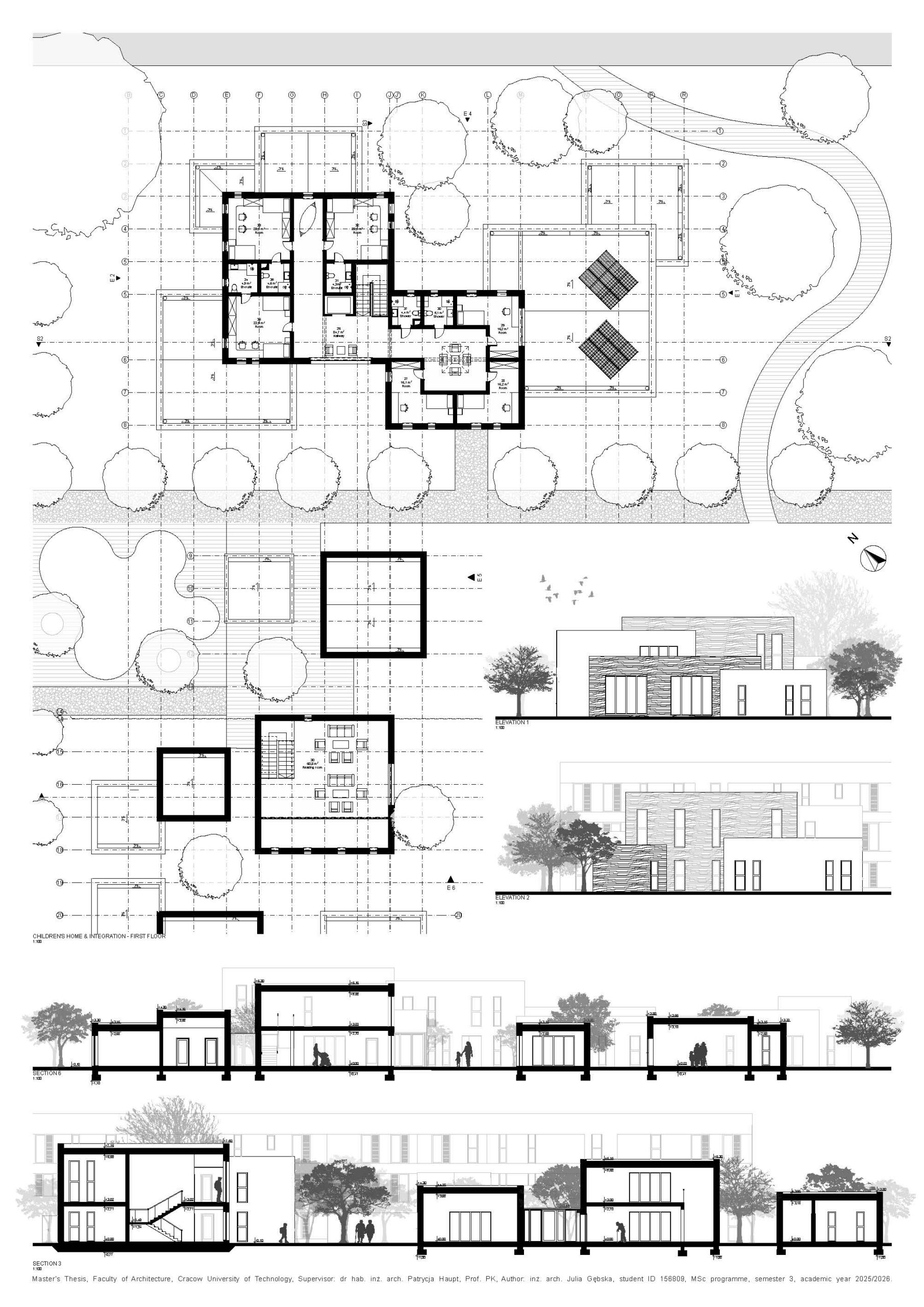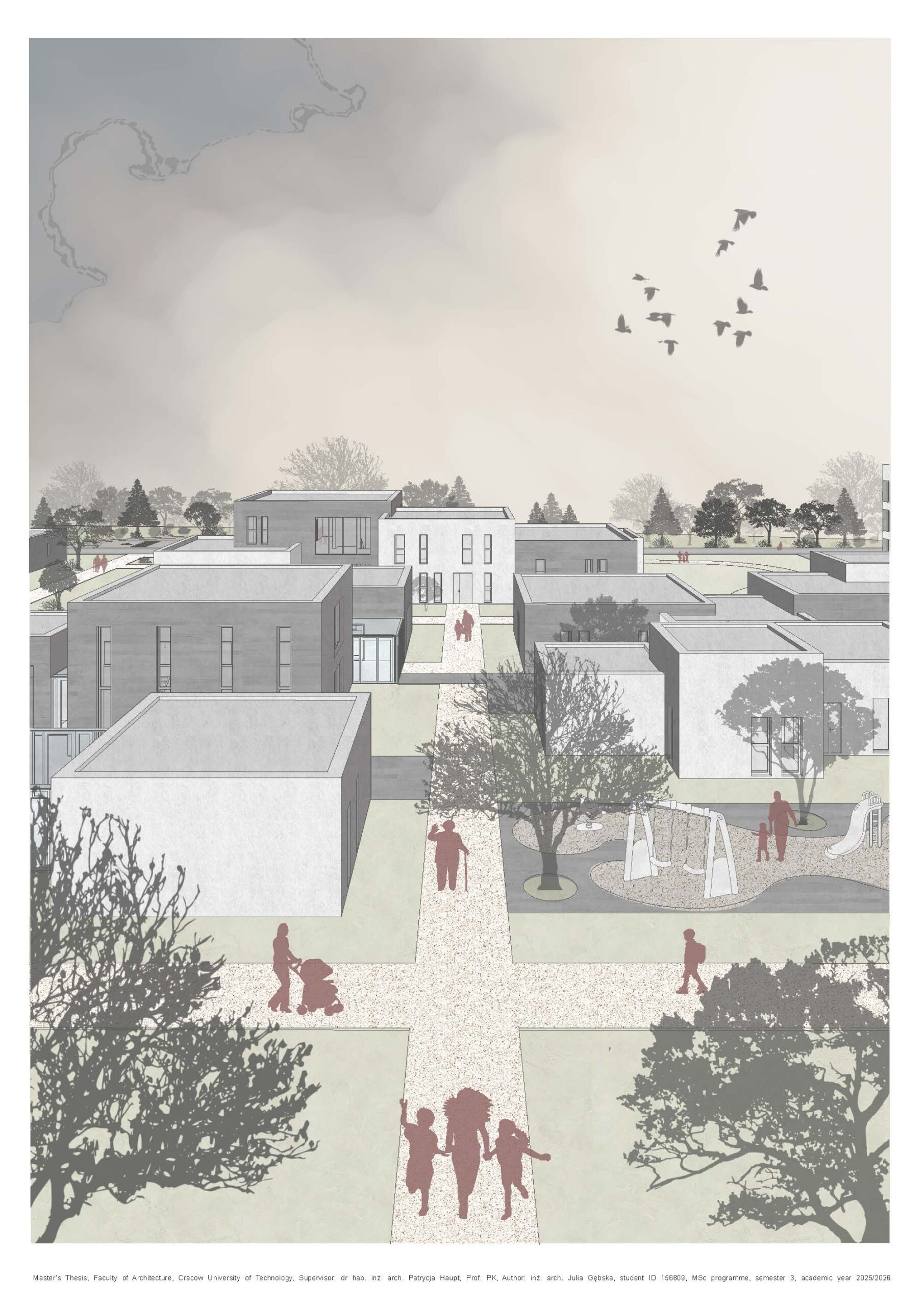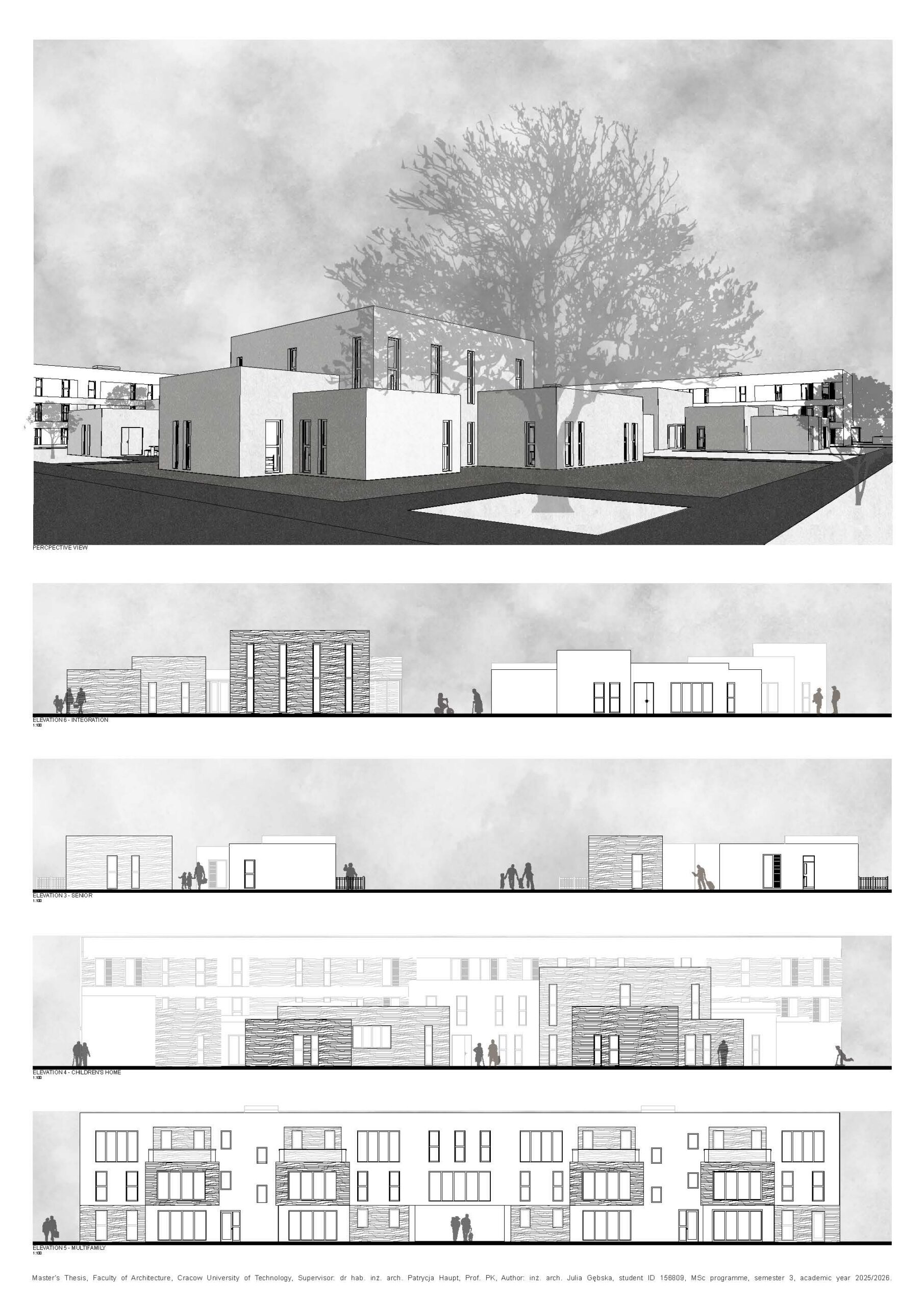 This master’s thesis presents the design of a socially oriented architectural and urban complex combining a children’s home, a senior living facility, multi-family housing, and shared integration spaces. The project addresses contemporary demographic and social challenges, including population ageing, social isolation, and the spatial separation of generations.