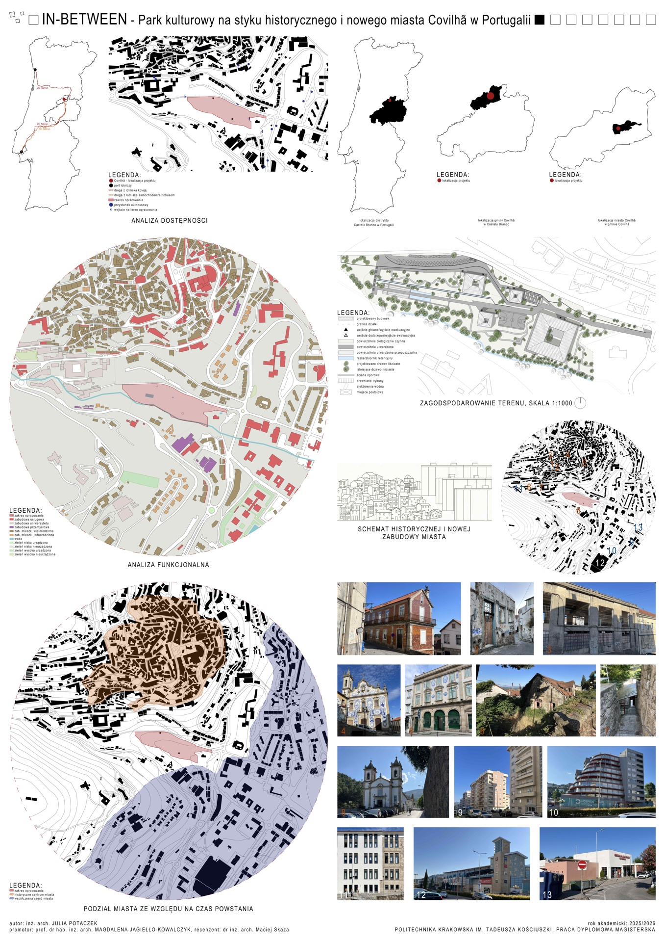 Wiele historycznych miast usytuowanych na wzgórzach zmaga się z problemem stopniowego wyludniania dawnych centrów oraz intensywnego rozwoju nowych dzielnic zlokalizowanych u podnóża wzniesień. Zjawisko to prowadzi do przestrzennego, funkcjonalnego i społecznego rozdzielenia miasta, a w konsekwencji do degradacji historycznej tkanki urbanistycznej. Praca podejmuje ten problem na przykładzie miasta Covilhã w Portugalii, którego średniowieczne centrum położone na zboczu wzgórza traci swoją żywotność na rzecz łatwiej dostępnych terenów niżej położonych.