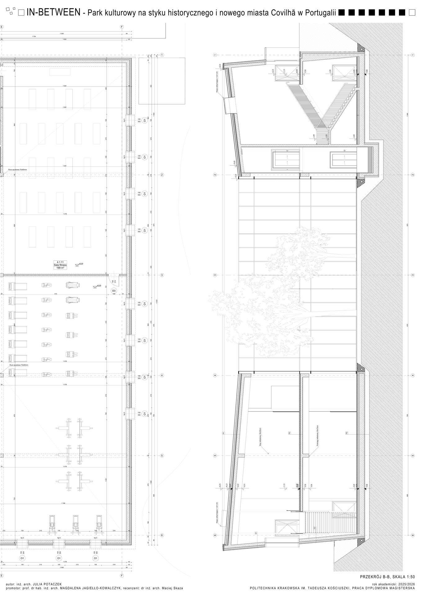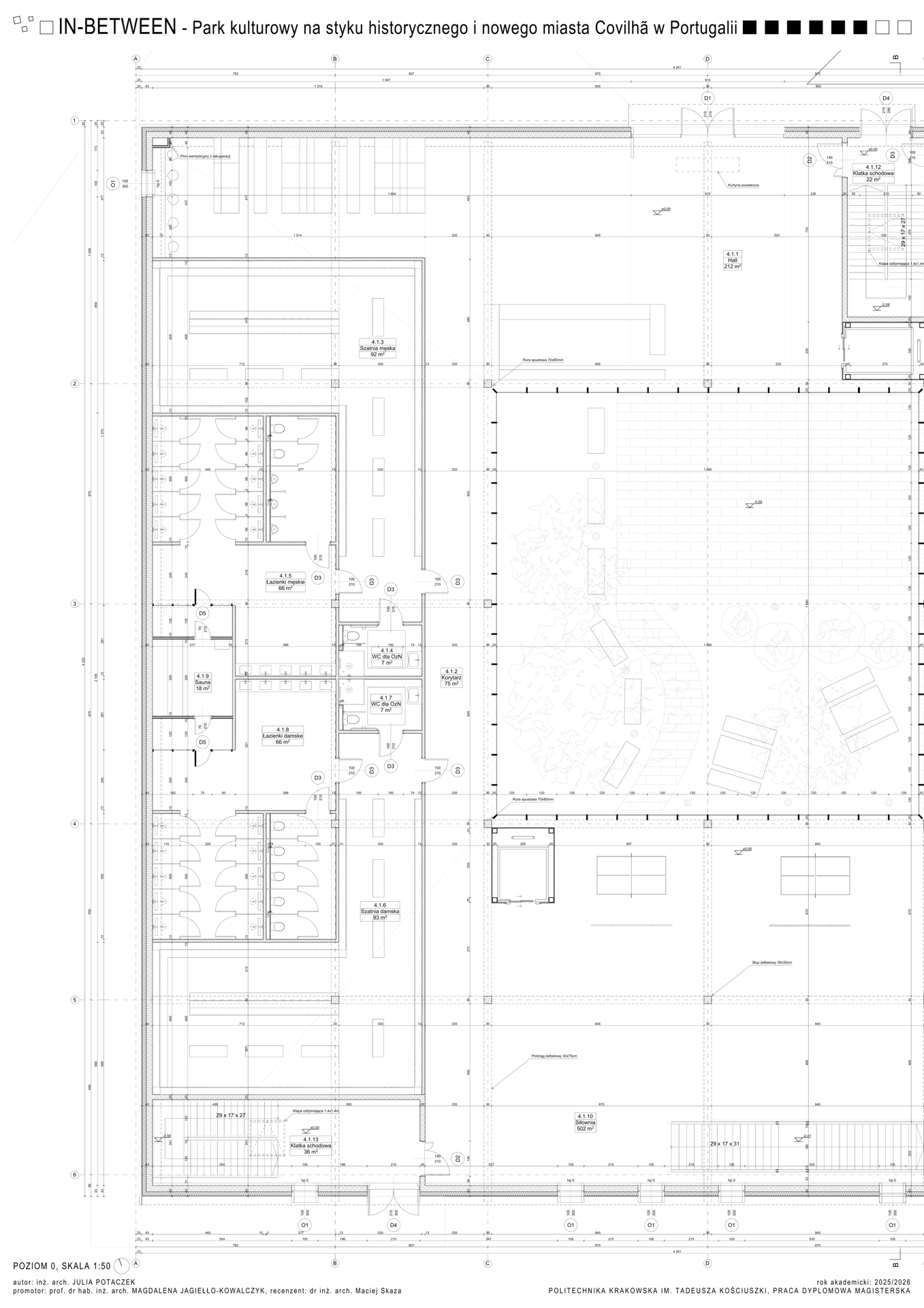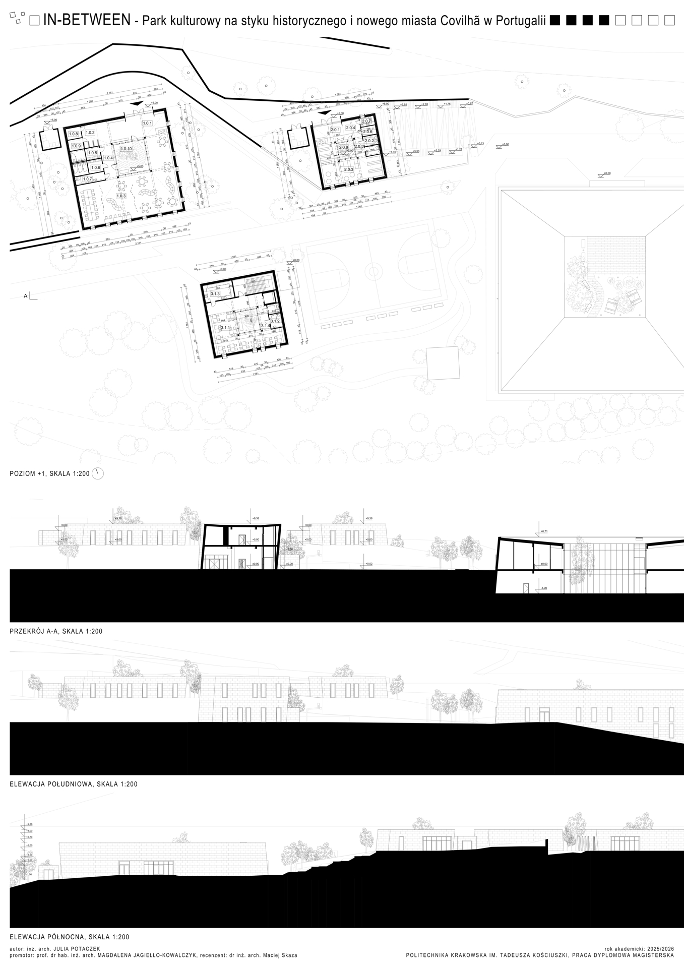 Celem projektu jest stworzenie strategii przestrzennej integrującej historyczną i współczesną część miasta poprzez zagospodarowanie strefy pośredniej – „in-between”. Zaprojektowany park kulturowy z zespołem obiektów użyteczności publicznej pełni rolę łącznika pomiędzy dwiema strukturami miejskimi, odpowiadając na problem dostępności, braku aktywności społecznej oraz zaniedbanej przestrzeni publicznej. Program funkcjonalny obejmuje m.in. przestrzenie warsztatowe, wystawowe, bibliotekę, kawiarnię oraz centrum sportowe.