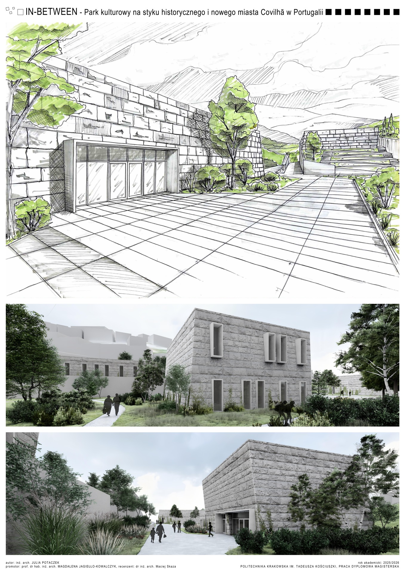 Projekt zakłada harmonijne wpisanie nowej zabudowy w istniejące ukształtowanie terenu oraz dialog architektury z otoczeniem historycznym i współczesnym. Przestrzeń zielona, nowe ciągi piesze i rekreacyjne oraz integracja funkcji kulturalnych mają na celu przywrócenie życia społecznego i stworzenie atrakcyjnego miejsca spotkań dla mieszkańców obu części miasta. Praca ukazuje potencjał stref przejściowych jako kluczowych elementów zrównoważonej rewitalizacji miast wzgórzowych.