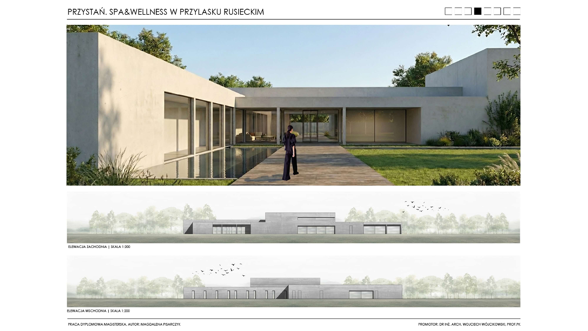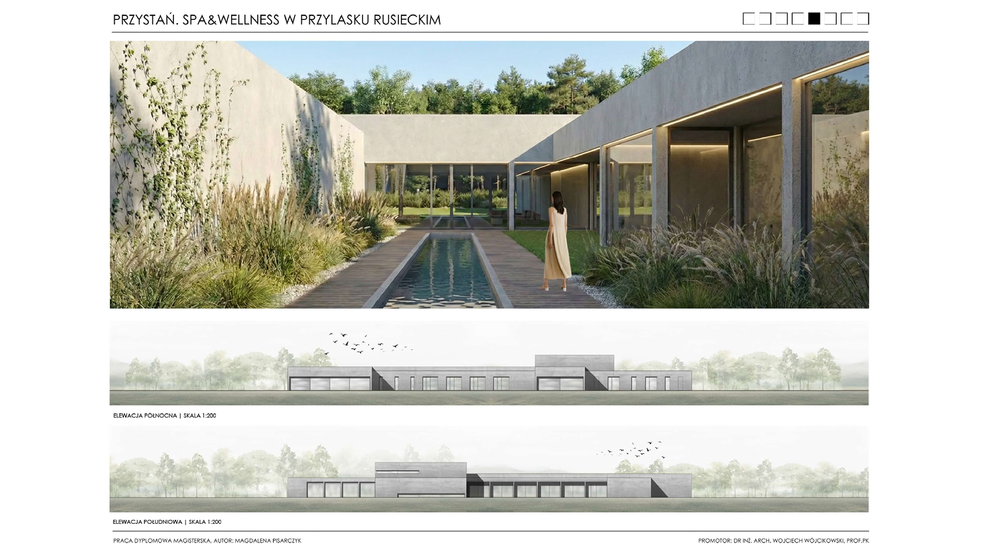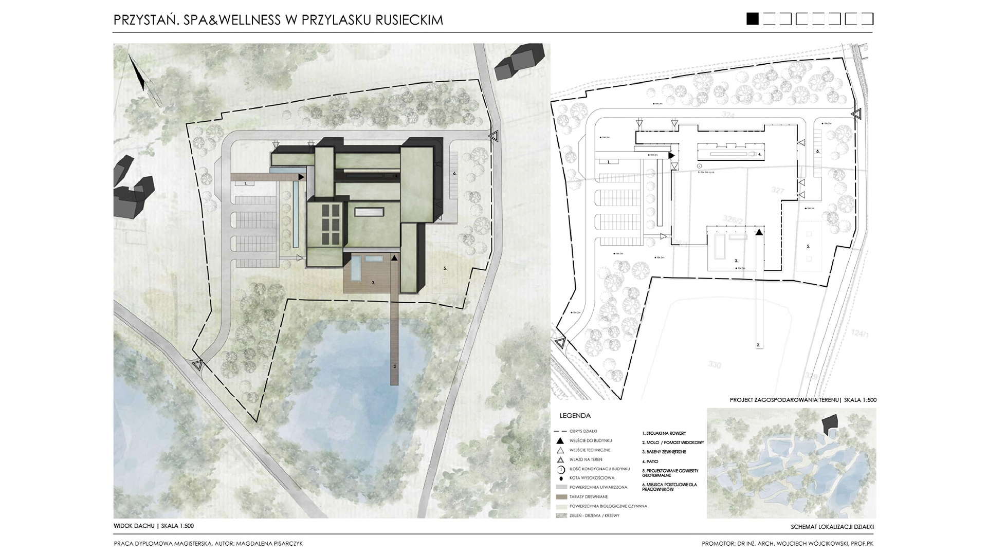 Projektowany obiekt Spa & Wellness Przystań w Przylasku Rusieckim jest odpowiedzią na deficyty współczesnej cywilizacji, takie jak brak kontaktu z naturą, brak ciszy i równowagi oraz próbą zdefiniowania nowej nowej typologii architektury rekreacyjnej w Polsce, która nie dominuje nad krajobrazem, lecz wchodzi z nim w symbiotyczną relację. Nazwa projektowanego obiektu „Przystań. Spa&Wellness” nie jest przypadkowym wyborem, lecz wynikiem całej koncepcji architektonicznej. Dobór słowa „przystań” jest podyktowany jego dwuwymiarowym znaczeniem, które łączy fizyczną formę budynku z jego niematerialną funkcją terapeutyczną.