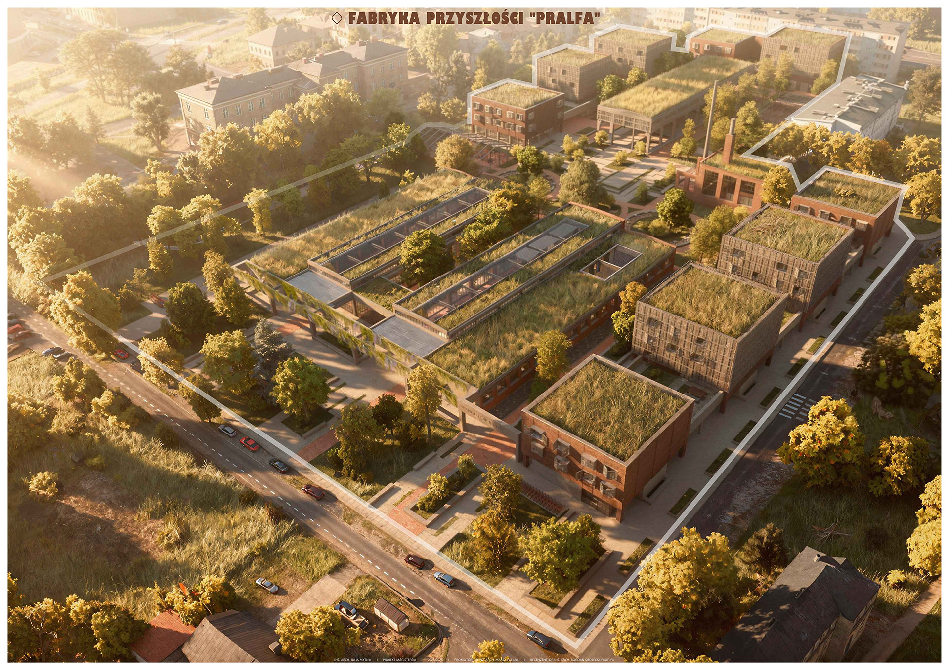 Projekt Fabryka Przyszłości „Pralfa” to koncepcja adaptacji i rewitalizacji terenów poprzemysłowych po opuszczonej fabryce maszyn pralniczych „Pralfa” w Tarnowie. Głównym celem pracy jest próba oddania zaniedbanych, zdewastowanych i nieużytkowanych terenów w centrum miasta społeczności lokalnej, poprzez stworzenie nowego kwartału zabudowy, w którym znajdować się będzie wielofunkcyjny kompleks z funkcjami usługowymi, mieszkaniowymi i sportowymi. Szczególna uwagę poświęcono ternom zewnętrznym tworząc centralny park, wielopoziomowe place oraz żywnościową farmę miejską.