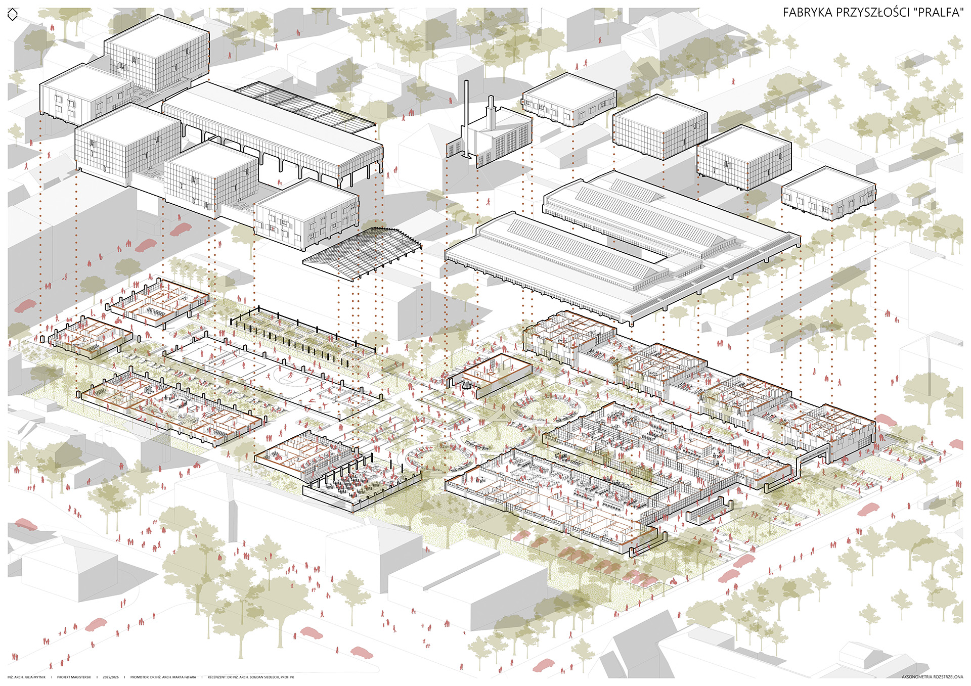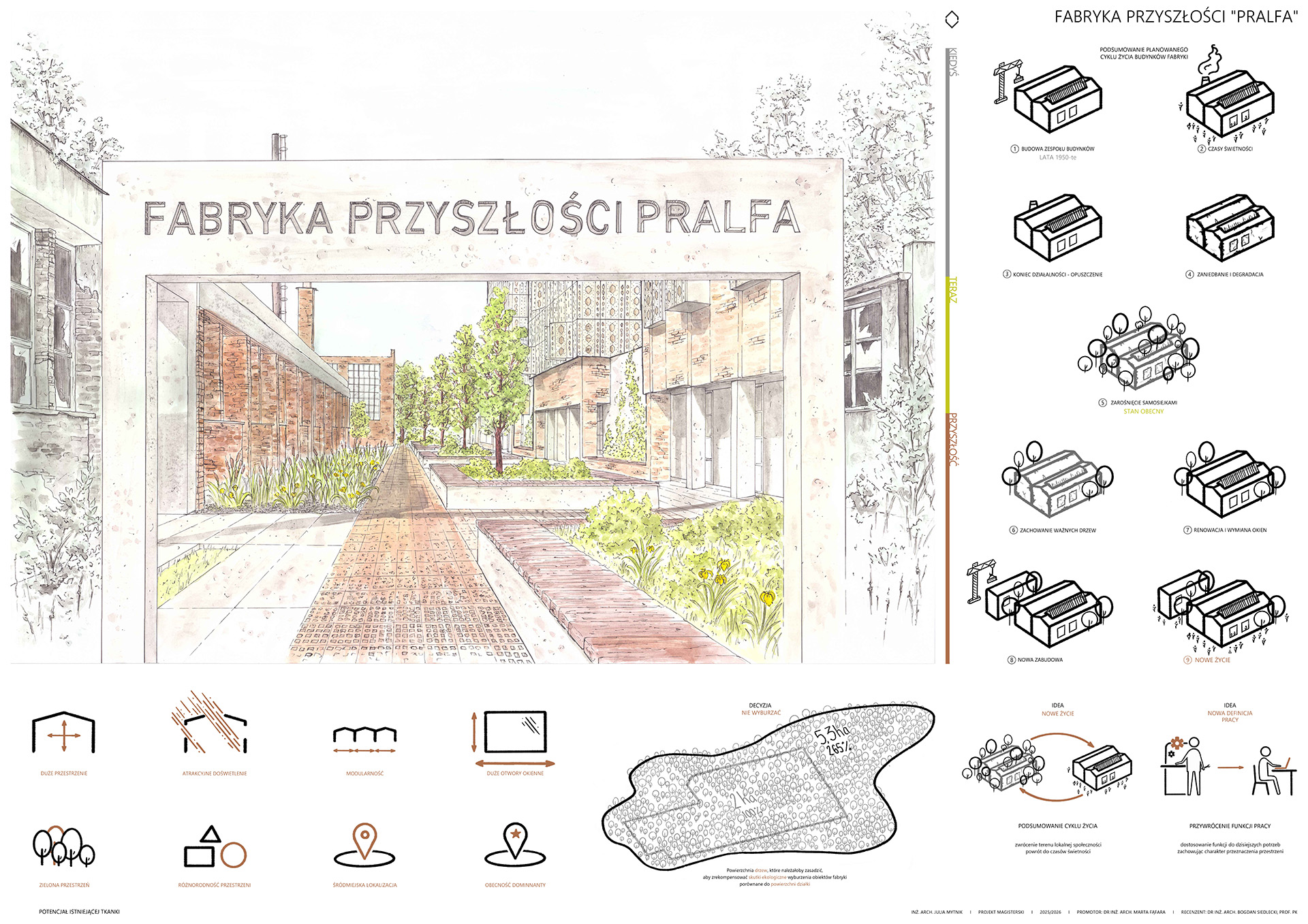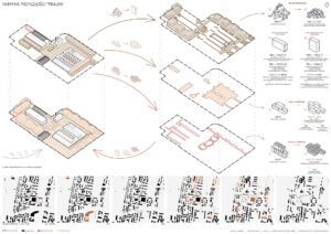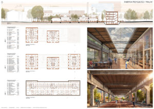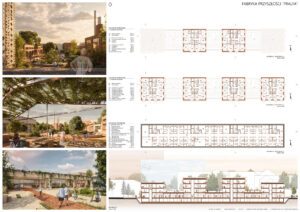 Na podstawie dogłębnej analizy terenów poprzemysłowych, ich potencjału i problemów z nimi związanych, wyników analizy końca życia budynków, a także wnikliwych analiz urbanistycznych zaprojektowano spójny kompleks wielofunkcyjny, dający nowe życie zapomnianej fabryce, zachowując jej tożsamość.