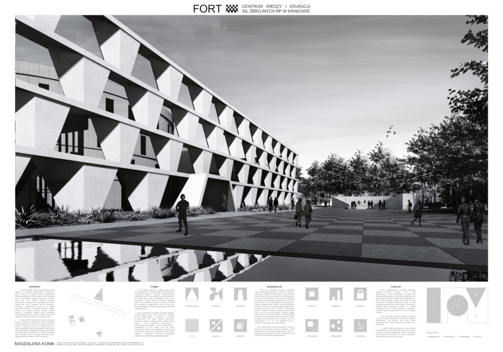 FORT Centrum Wiedzy I Edukacji Sił Zbrojnych RP w Krakowie FORT realizuje nadrzędne cele obiektu, wynikające z motywacji popularyzacji idei wojskowości oraz ukazania powagi i poświęcenia służb mundurowych, jednocześnie wpisując się w dyskurs o współczesnej architekturze obiektów instytucjonalnych oraz upowszechnieniu metod prefabrykacji w budownictwie, co bezpośrednio przekłada się na korzyści środowiskowe i społeczne.