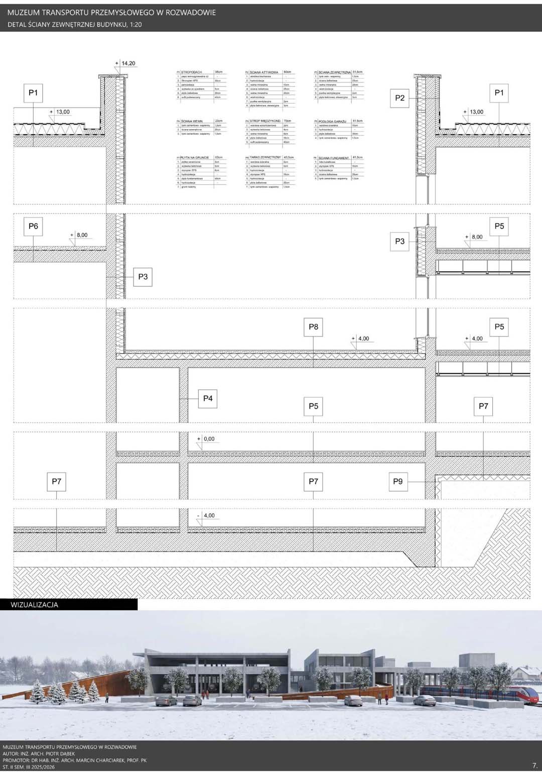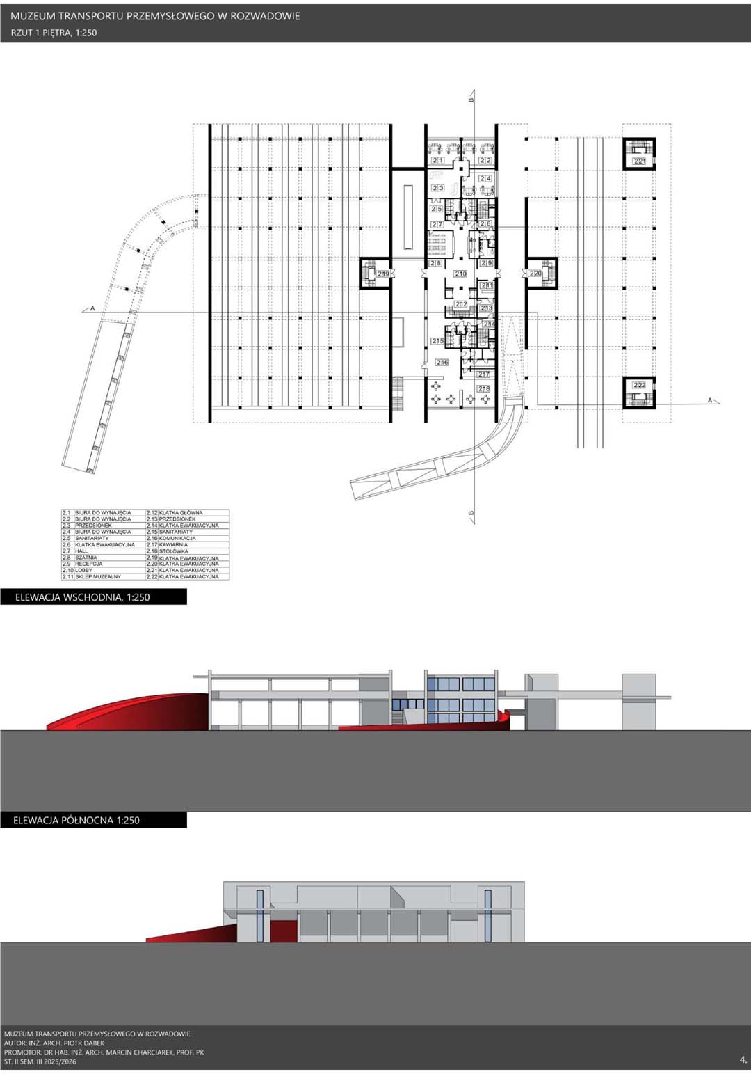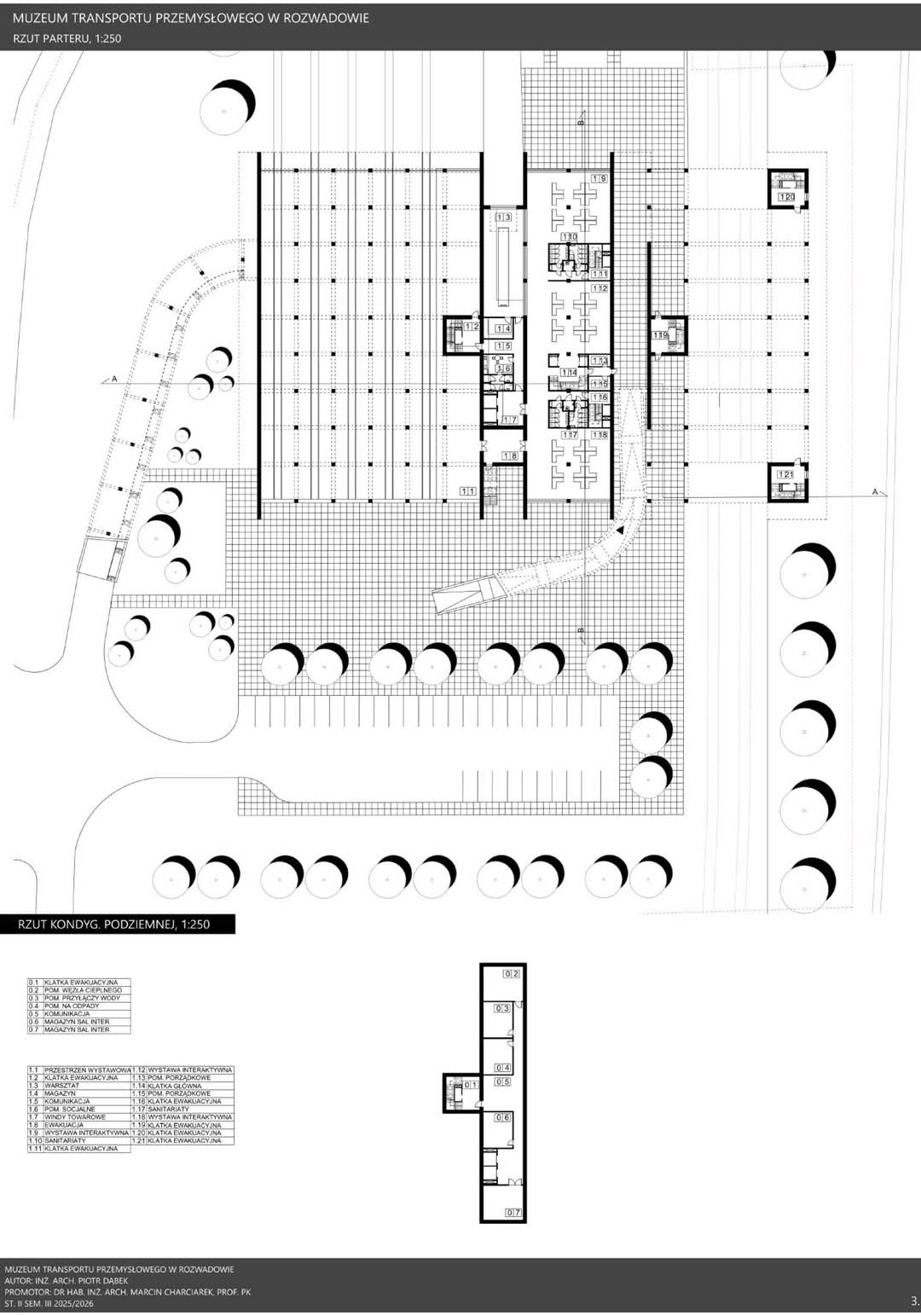 Transport od wieków stanowił jeden z kluczowych czynników rozwoju cywilizacyjnego, wpływając na gospodarkę, strukturę państw oraz codzienne życie społeczeństw. Szczególne znaczenie zyskał w okresie rewolucji przemysłowej, kiedy rozwój kolei i innych środków komunikacji przyczynił się do intensywnej urbanizacji oraz wzrostu mobilności. Postęp techniczny pozostawił liczne materialne świadectwa, które dziś stanowią ważny element dziedzictwa kulturowego, chronionego przez muzea transportu przemysłowego. Instytucje te zajmują się ochroną zabytków techniki, takich jak lokomotywy, tramwaje czy elementy infrastruktury, prowadząc prace konserwatorskie oraz gromadząc dokumentację historyczną. Istotną rolę pełnią również funkcje edukacyjne, umożliwiające poznanie procesów technologicznych poprzez ekspozycje i nowoczesne formy przekazu. Muzea transportu wzmacniają także tożsamość regionalną, przypominając o znaczeniu przemysłu w rozwoju lokalnych społeczności oraz stając się ważnym elementem turystyki poprzemysłowej. Projekt Muzeum Transportu Przemysłowego w Rozwadowie wyrasta z silnych związków miejsca z koleją i technologią. Jego architektura stanowi współczesną interpretację infrastruktury transportowej poprzez zastosowanie ramp, wiaduktów i monumentalnych hal. Horyzontalna bryła składa się z prefabrykowanych bloków betonowych o zróżnicowanej skali, odpowiadającej funkcjom obiektu. Integralną częścią założenia są torowiska prowadzące bezpośrednio do muzeum, wzmacniające autentyczność przestrzeni. Całość tworzy spójny, symboliczny obiekt łączący przeszłość z teraźniejszością.
