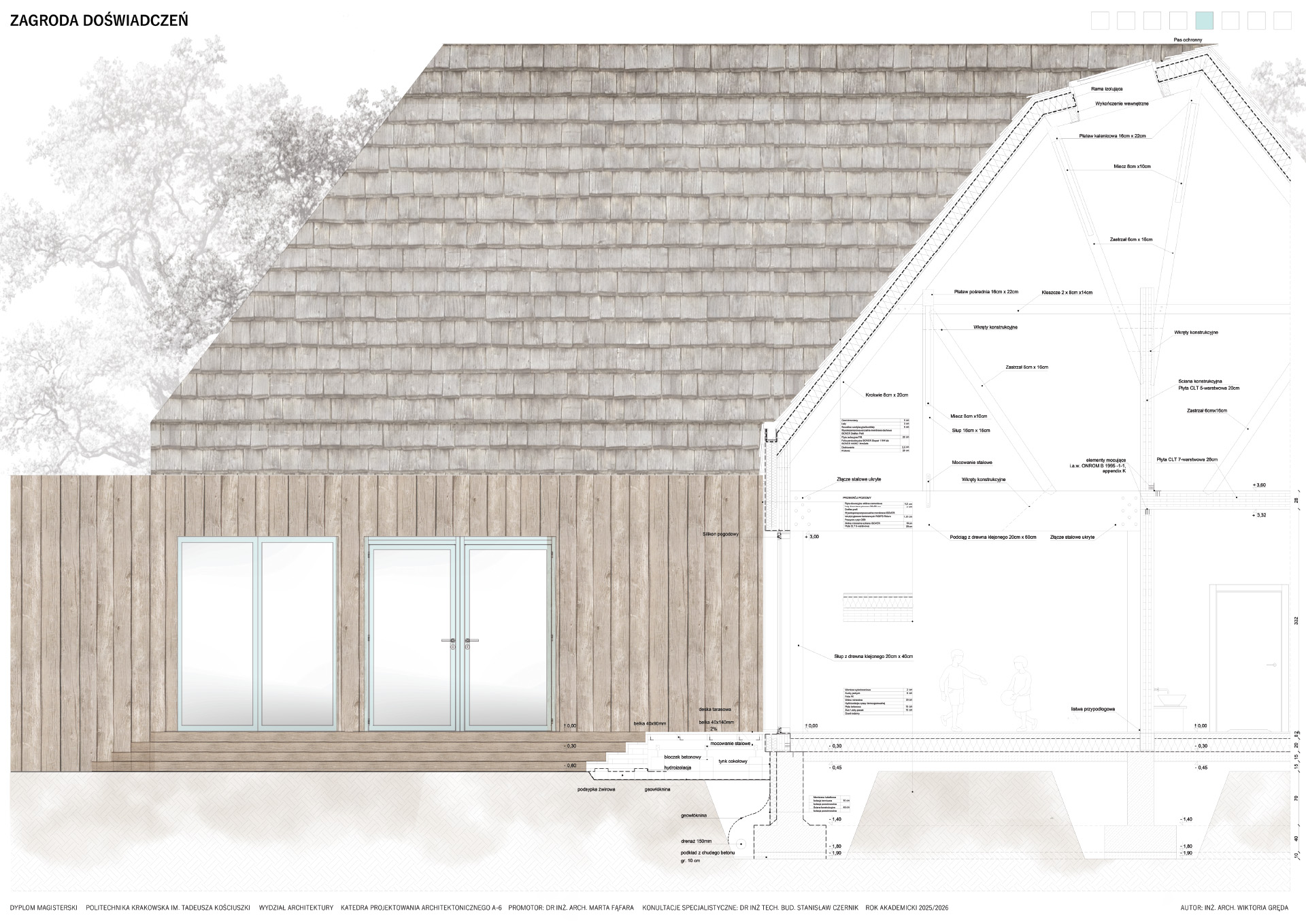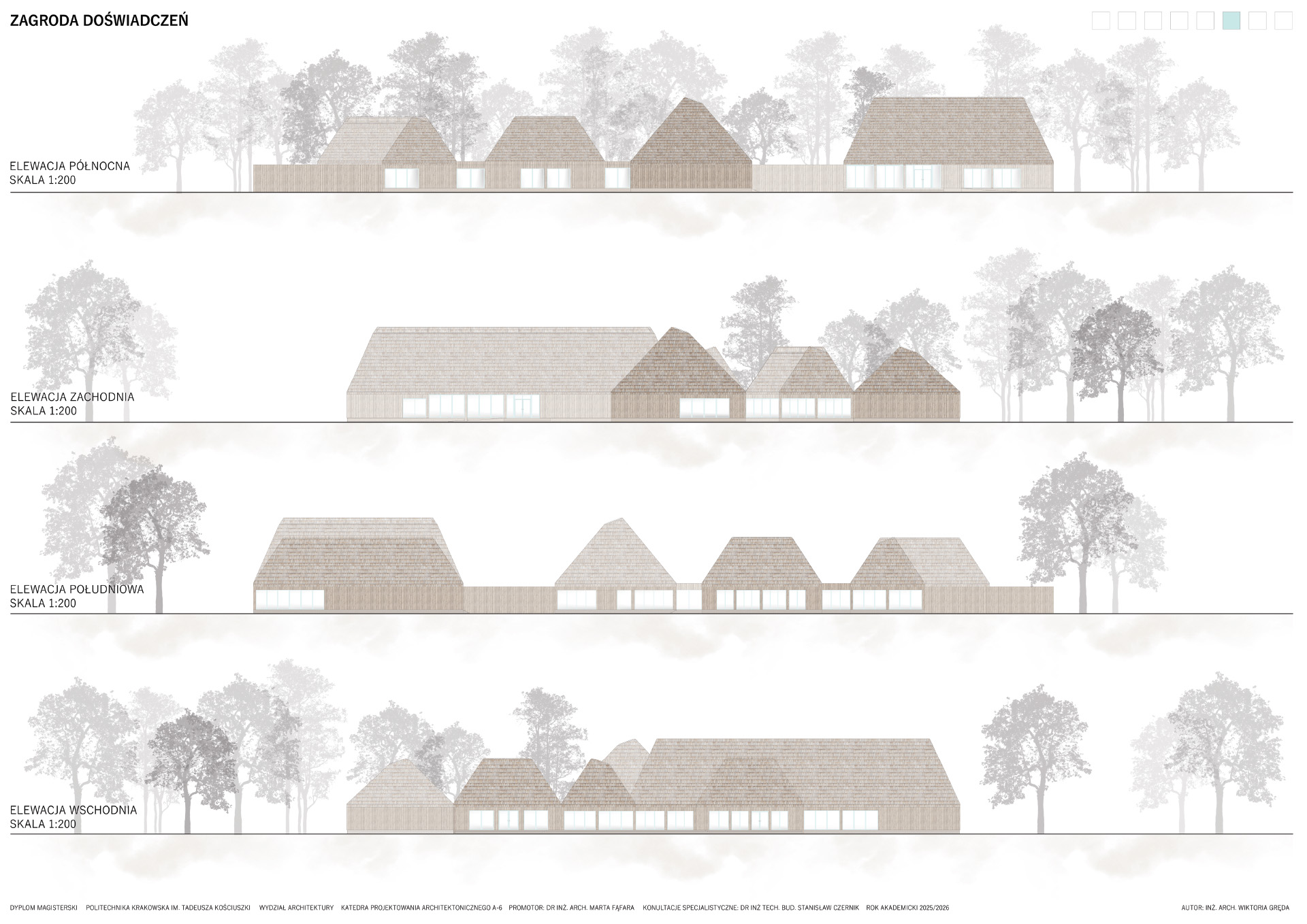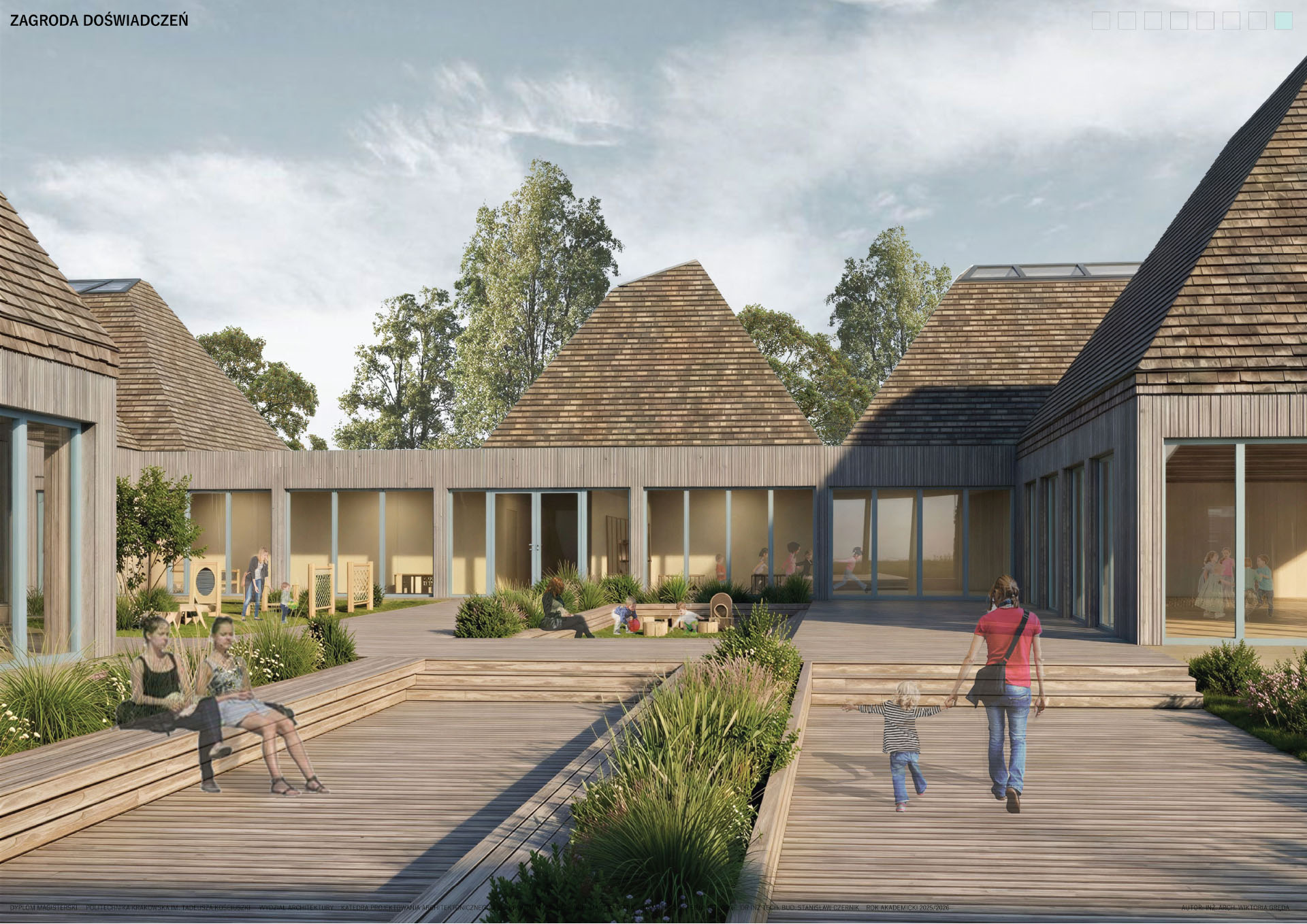 Zagroda Doświadczeń to projekt zespołu budynków zlokalizowanych w podkarpackiej wsi Żurawica, którego celem jest odtworzenie i twórcza interpretacja lokalnego archetypu zabudowy wiejskiej. Linearny układ wsi oraz zachowane ślady dawnych „błoń” stały się punktem wyjścia do analizy historycznego układu urbanistycznego i jego współczesnej adaptacji. Projekt sytuowany jest na zakończeniu głównej osi kompozycyjnej, w bezpośrednim sąsiedztwie parku, gdzie powstaje zagroda jako miejsce otwarte, integrujące lokalną społeczność.