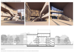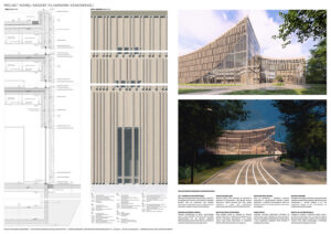 Projekt łączy zrównoważony rozwój z szacunkiem dla kontekstu. Poprzez wrażliwe wpisanie w zrewitalizowaną zieleń budynek nie dominuje otoczenia, lecz wchodzi z nim w harmonijny dialog, przywracając miastu zapomniany fragment przestrzeni.