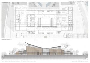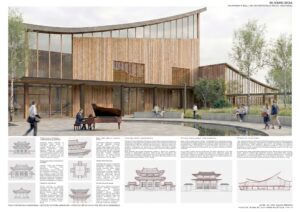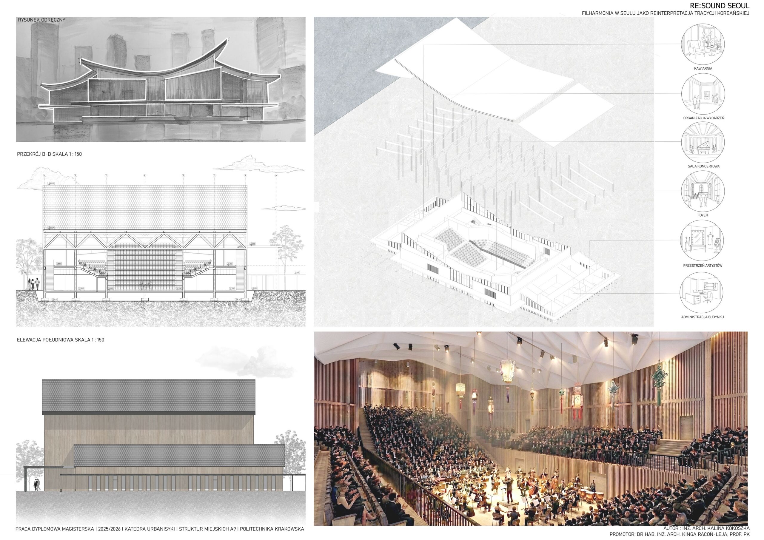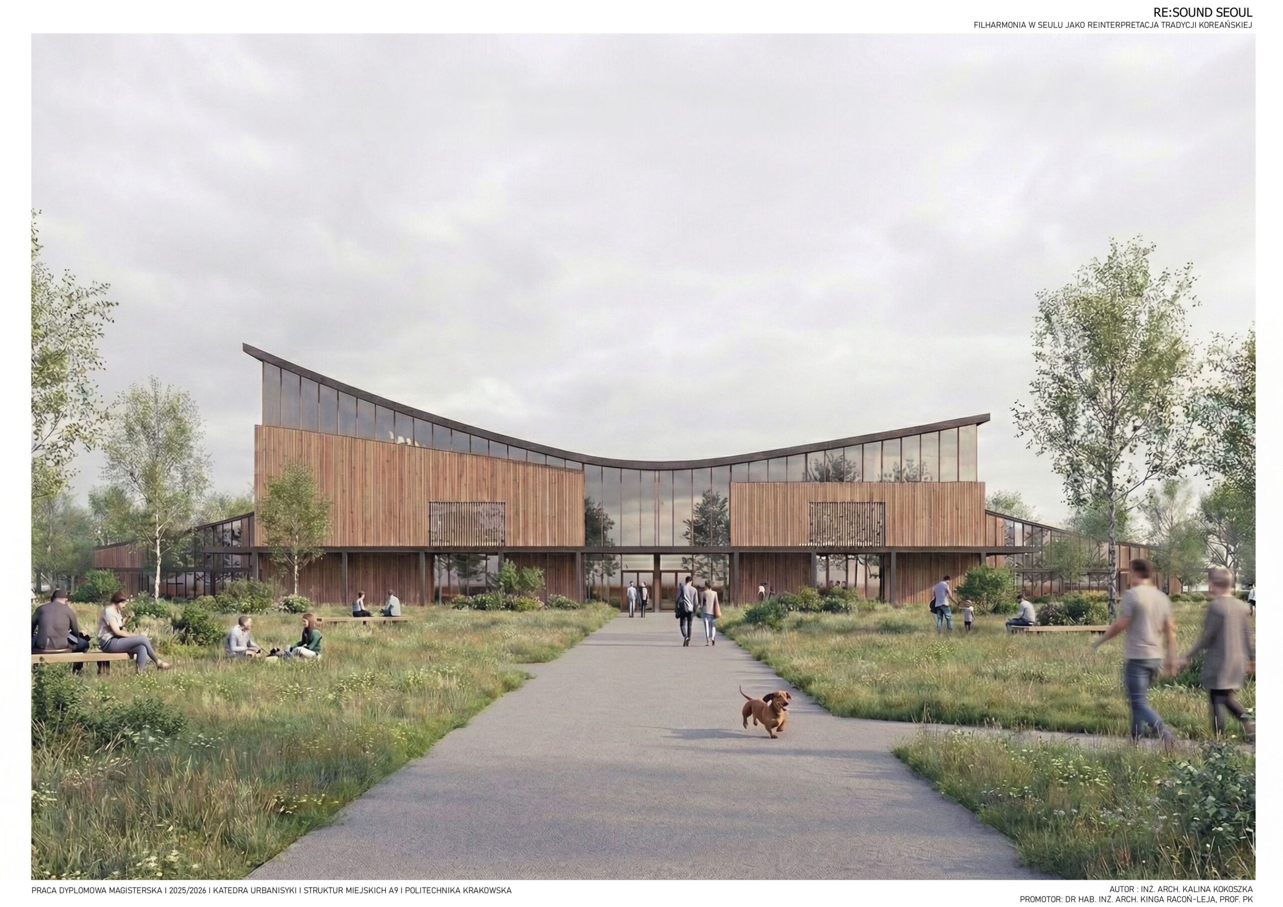 Koncepcja architektoniczna opiera się na idei reinterpretacji tradycyjnej architektury koreańskiej w formie nowoczesnej. Układ przestrzenny, horyzontalny charakter bryły oraz forma dachów nawiązują do zasad tradycyjnego budownictwa, takich jak kompozycja pawilonowa, relacja wnętrza z krajobrazem oraz czytelna struktura konstrukcyjna. Projekt dąży do zachowania równowagi pomiędzy współczesnymi wymaganiami funkcjonalnymi i technologicznymi a lokalną tożsamością miejsca.