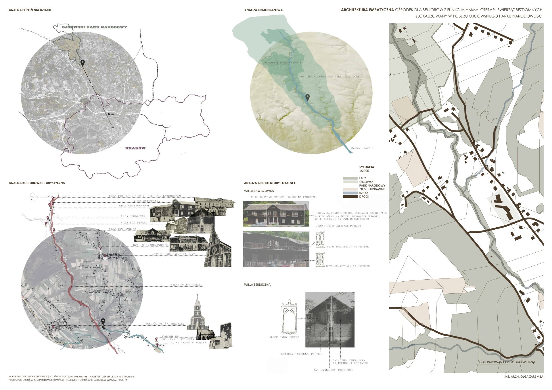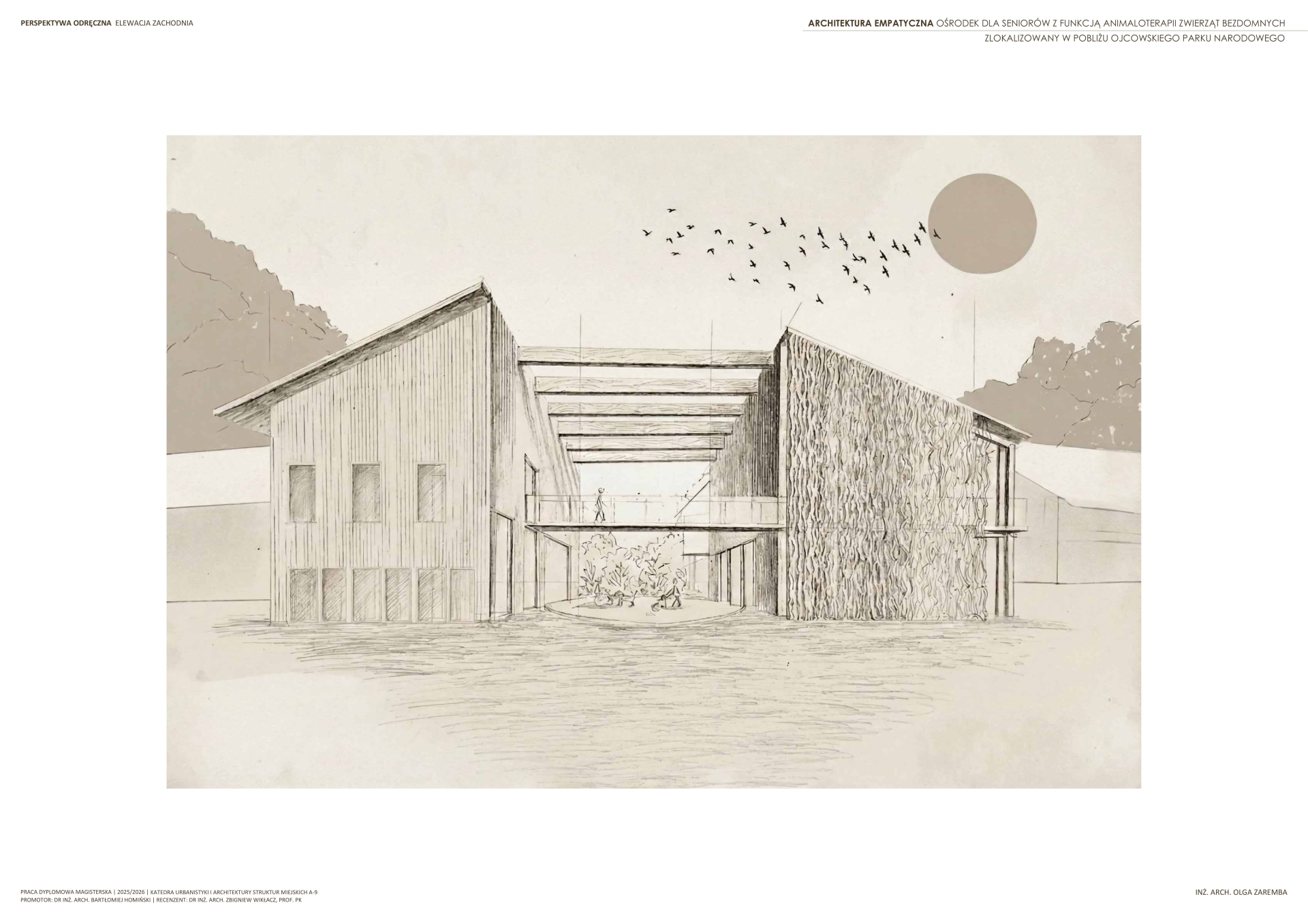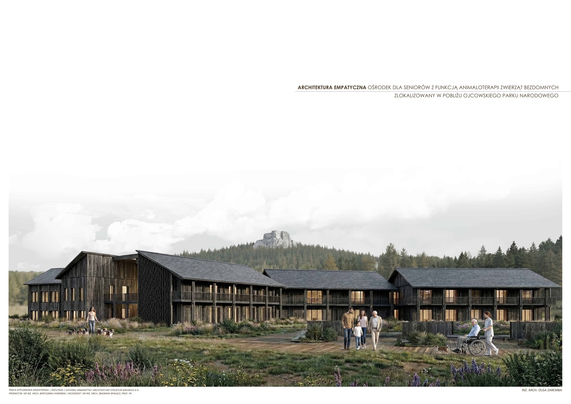 Architektura empatyczna – ośrodek dla seniorów z funkcją animaloterapii zwierząt bezdomnych, zlokalizowany w pobliżu Ojcowskiego Parku Narodowego