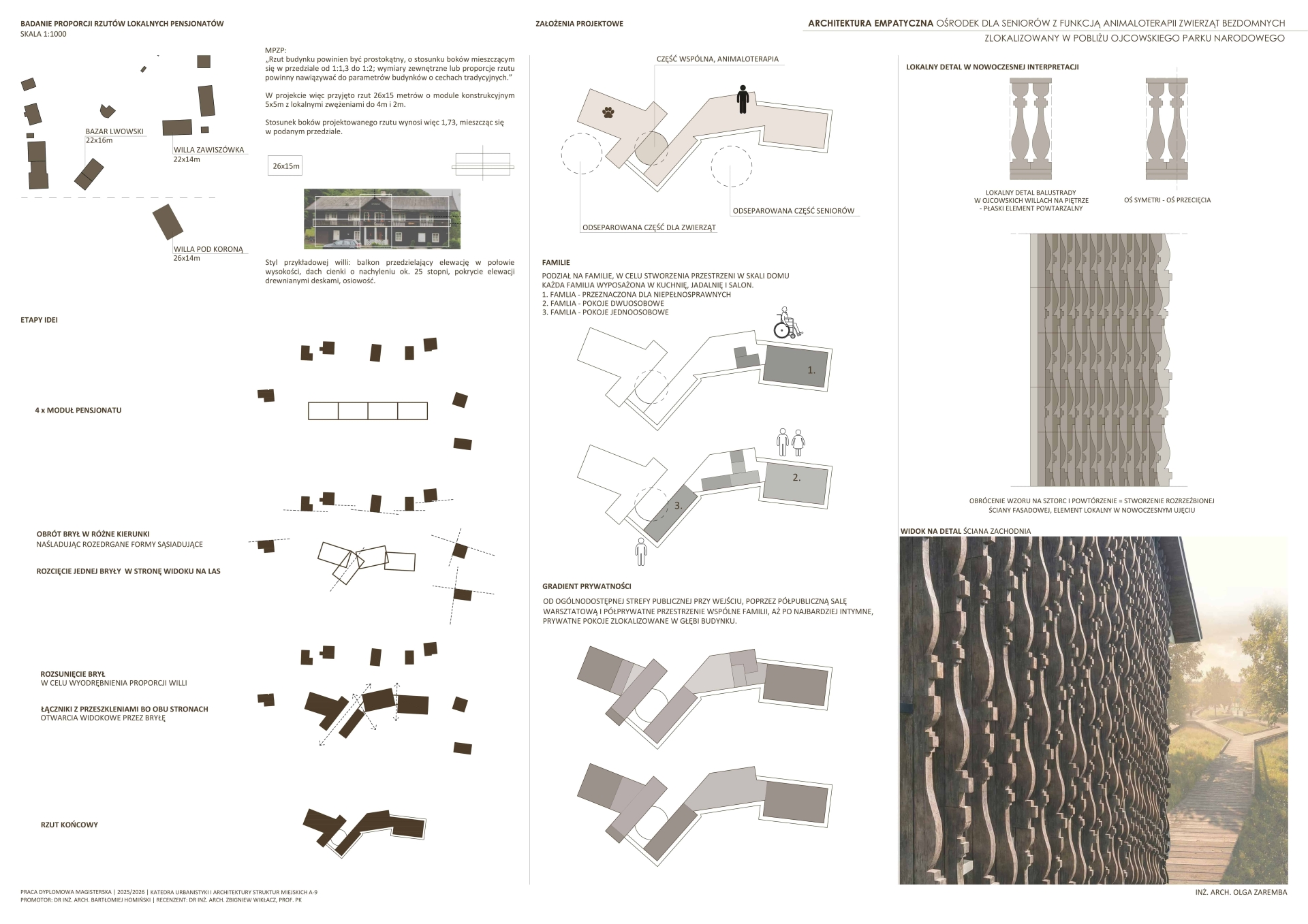 Ideą projektu jest stworzenie empatycznego modelu architektury opieki, który w sposób trwały łączy zamieszkanie seniorów z obecnością zwierząt, odpowiadając na brak tego typu obiektów w istniejącym systemie opieki w Polsce. Animaloterapia jest powszechnie stosowana i skuteczna, jednak najczęściej ma charakter tymczasowy.