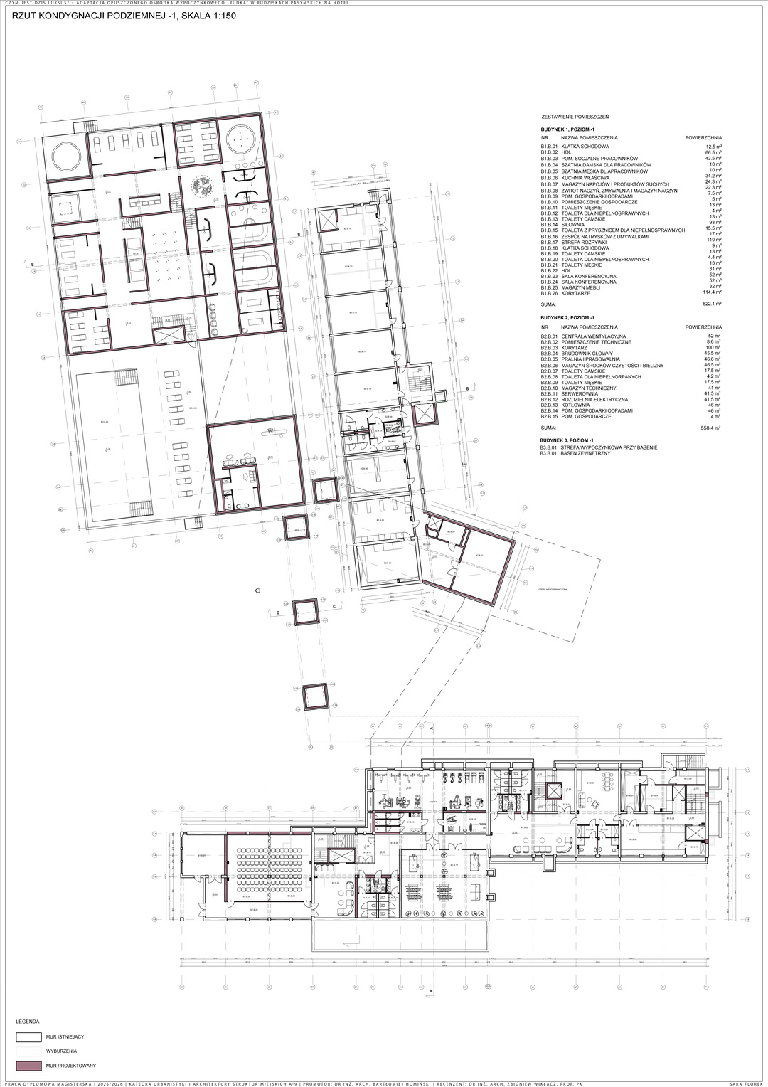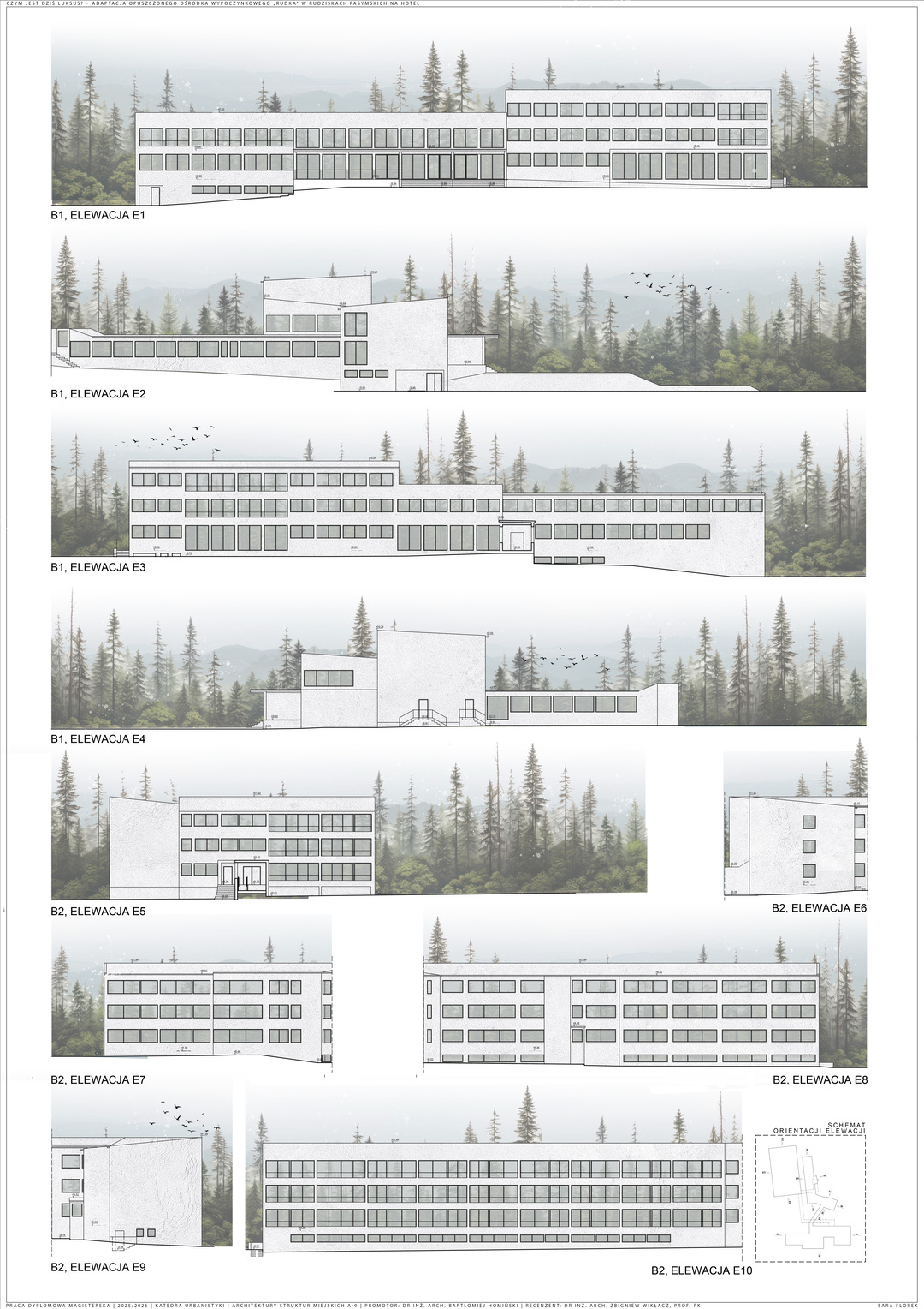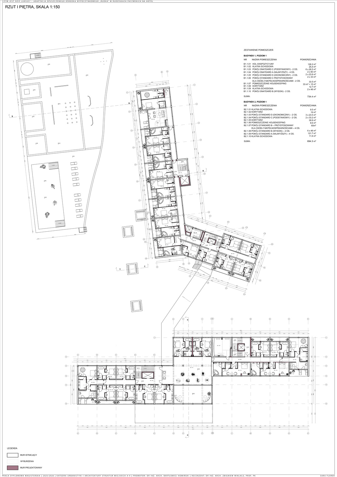Część analityczna obejmuje analizę lokalizacji i uwarunkowań przestrzennych, natomiast opis techniczny prezentuje rozwiązania zgodne z zasadami zrównoważonego budownictwa i dostępności. Projekt stanowi alternatywę dla nowej zabudowy, wpisując się we współczesne rozumienie luksusu i tworząc przestrzeń sprzyjającą powrotom.