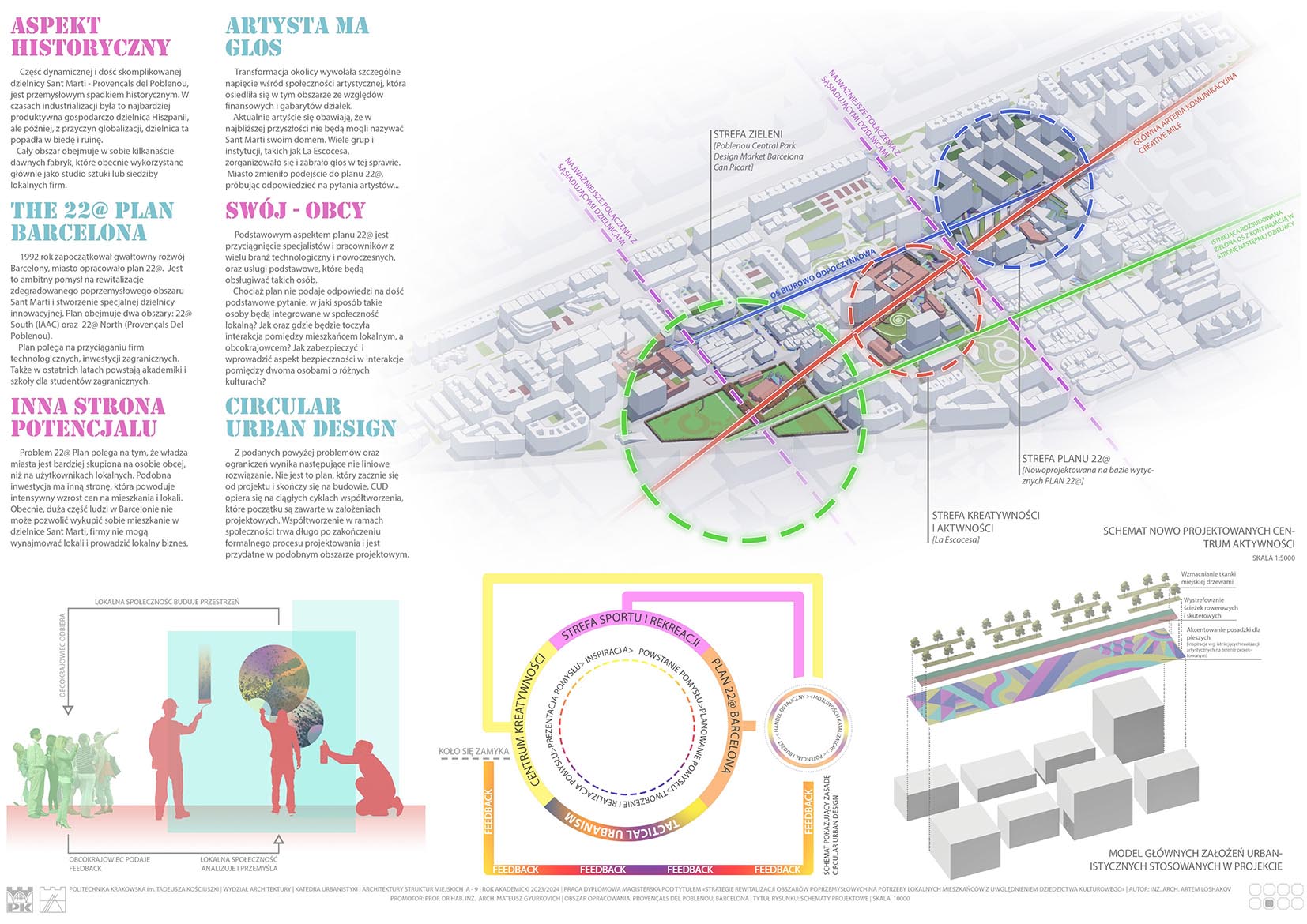 Projekt się skupia na uwzględnieniu nie tylko zapotrzebowania miasta, projektowaniu miasta wiedzy i technologii; ale też na zaspokojeniu potrzeb mieszkańców lokalnych, które potrzebują przestrzeń dla własnej działalności i tanich mieszkań. Wprowadzone funkcje i rozwiązania architektoniczno-plastyczne sugerują, że lokalni mieszkance są tu główni aktorzy. Także uwzględniony historyczny aspekt dzielnicy, i wzmocniony poprzez posadzkę, małą architekturę, itd.