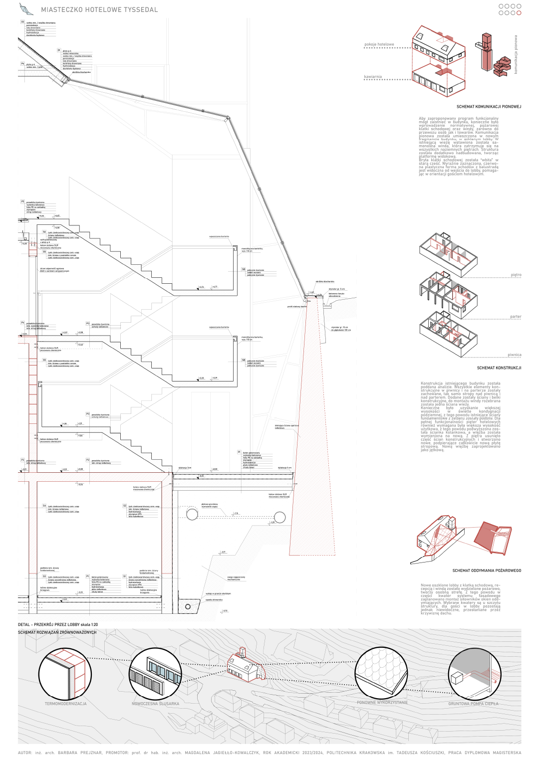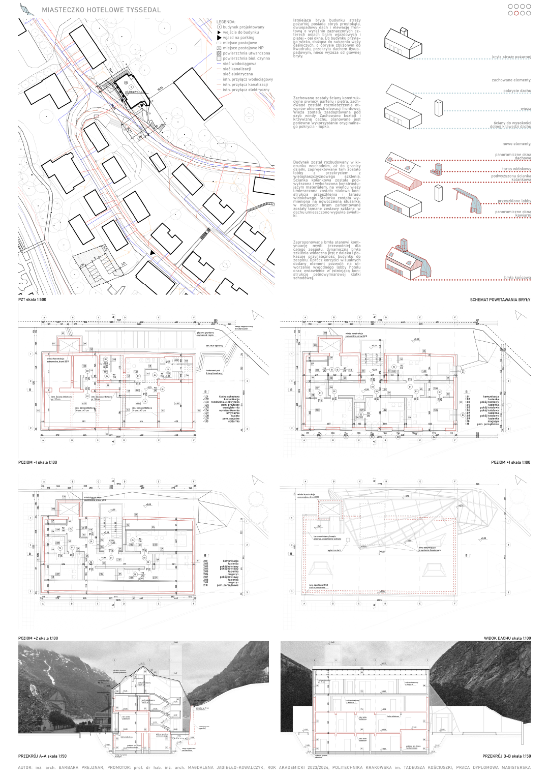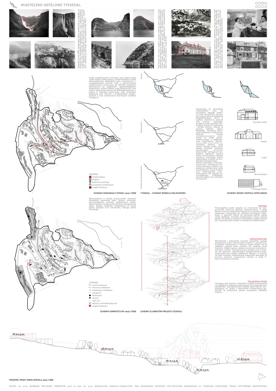 Projekt prezentuje propozycję identyfikacji wizualnej zespołu hotelowego, znajdującego się na działkach rozrzuconych po miejscowości Tyssedal w Norwegii, w gminie Ullensvang. Ze względu na rosnącą popularność szlaku turystycznego w okolicy, zapotrzebowanie na bazę noclegową rośnie, dlatego też na funkcję hotelową adaptowane są budynki o różnej historii, formie i stylu. Połączenie ich nie zawiera się jedynie w warstwie wizualnej, szczegółowo przeanalizowana i przeprojektowana została sieć połączeń pieszych oraz wpływ poszczególnych obiektów na kompozycję miejscowości. Zwrócono uwagę na dostępność budynków dla osób z ograniczonymi możliwościami poruszania się.