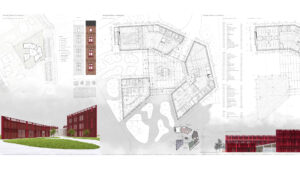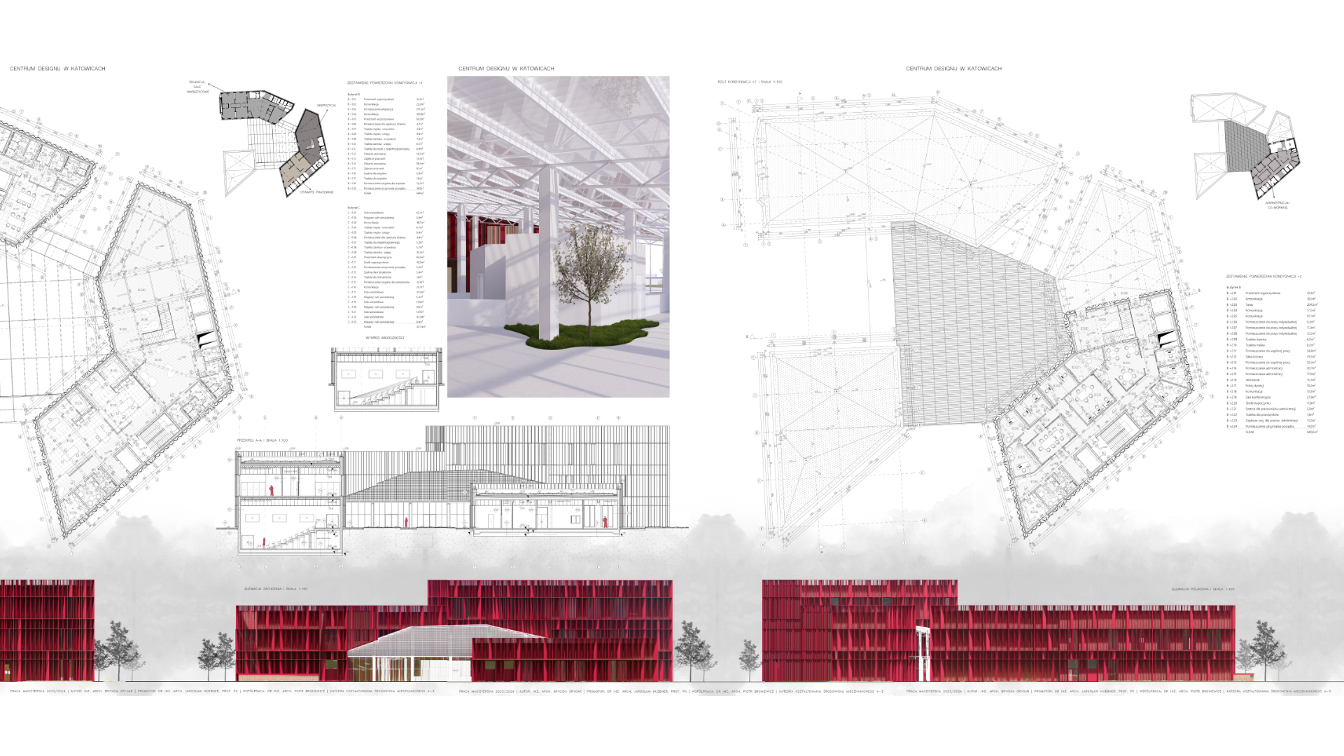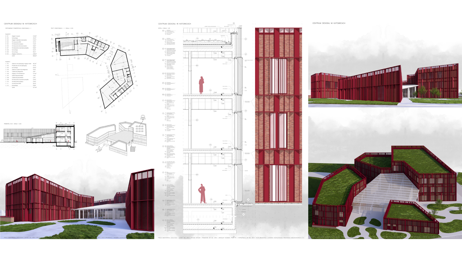 Centrum designu w Katowicach to założenie opierające się na trzech budynkach powiązanych ze sobą za pomocą wewnętrznego, zadaszonego dziedzińca. Założenie jest częścią Parku Zawodzie, w którego skład wchodzi Centrum Chin oraz Destylarnia ginu. Centrum stanowi rolę edukacyjną, wystawienniczą oraz wypoczynkową. Obiekt zaprojektowano w odpowiedzi na chęć przybliżenia odbiorcom dokonań młodego pokolenia artystów oraz zapoznanie ich z Polską sztuką użytkową powstałą na przestrzeni ostatniego stulecia. W założeniu przewidziano również przestrzenie warsztatowe, mające za zadanie łączenie starszego pokolenia rzemieślników z dziećmi. Elewacje projektowanych budynków nawiązują do lokalnego archetypu zabudowy, jakimi są familoki, charakteryzujące się ceglaną elewacją oraz stolarką okienną i drzwiową pomalowaną wraz ze szpaletami w kolorze czerwonym.