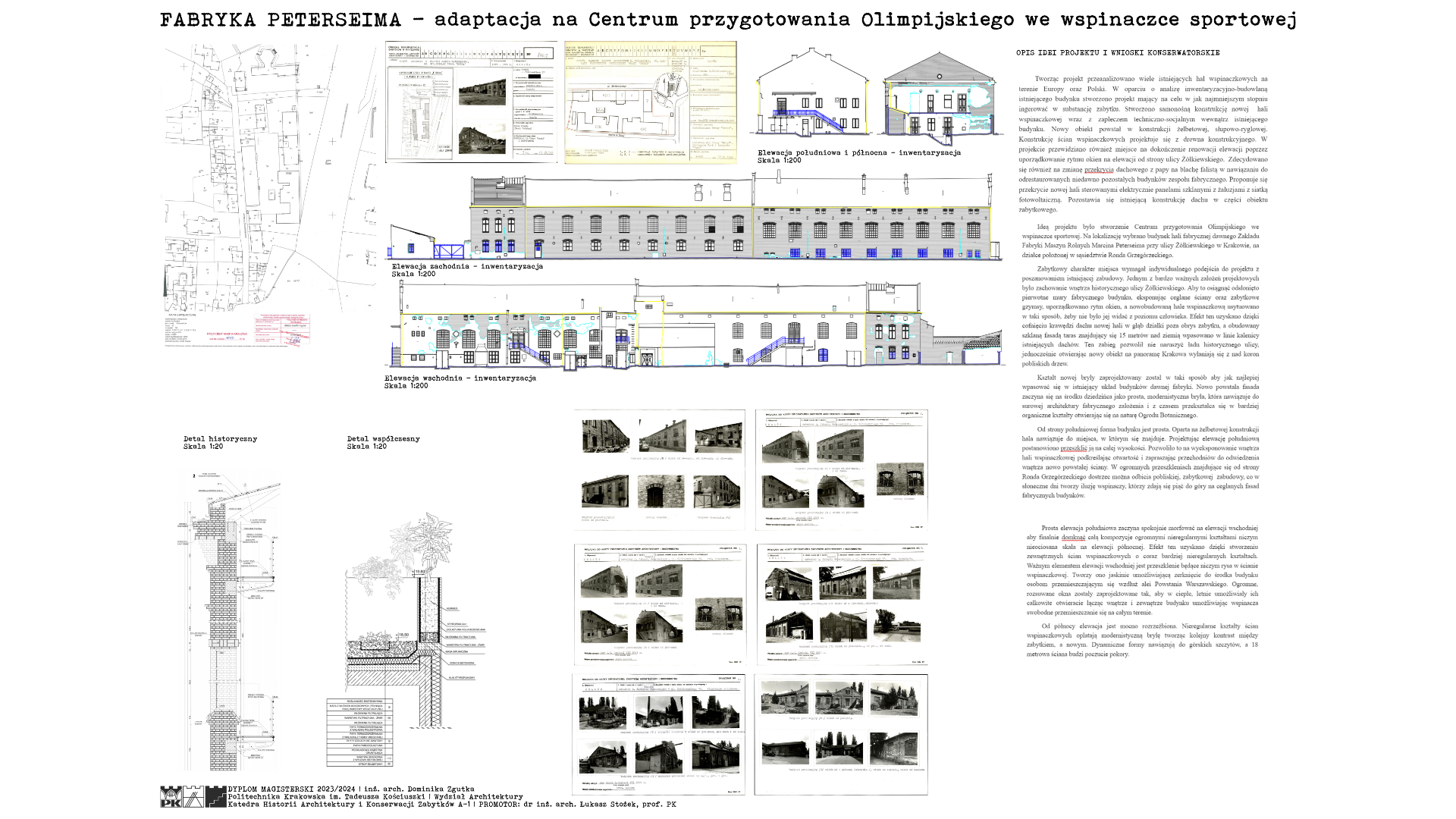 Ideą projektu było stworzenie, pierwszego w Polsce, nowoczesnego Centrum przygotowania Olimpijskiego we wspinaczce sportowej. Na lokalizację wybrano budynek hali fabrycznej dawnego Zakładu Fabryki Maszyn Rolnych Marcina Peterseima przy ulicy Żółkiewskiego w Krakowie. Jednym z bardzo ważnych założeń projektowych było zachowanie historycznego wnętrza ulicy Żółkiewskiego. Aby to osiągnąć odsłonięto pierwotne mury fabrycznego budynku, eksponując ceglane ściany oraz zabytkowe gzymsy, a nowo budowaną halę wspinaczkową usytuowano w taki sposób aby jak najlepiej wpasować się w istniejący układ budynków dawnej fabryki wewnątrz całego założenia. Elewacja od południa to prosta, modernistyczna bryła, która nawiązuje do surowej architektury fabrycznego założenia, z czasem przekształca się w bardziej organiczne kształty otwierając się na północy na naturę Ogrodu Botanicznego. W nowopowstałym kompleksie znajduje się hala wspinaczkowa o wysokości 18 m wraz ze specjalistycznym zapleczem sportowym. Dodatkowo zaprojektowano zewnętrzną 30-metrową wieżę wspinaczkową, tworząc z niej punkt widokowy na panoramę Krakowa.