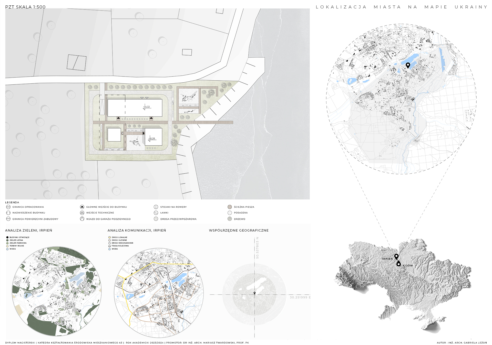 Projekt zakłada stworzenie wielofunkcyjnej przestrzeni publicznej w Irpieniu, odpowiadającej na potrzeby społeczności w kontekście powojennym. Głównym celem jest integracja mieszkańców i poprawa ich zdrowia psychicznego. Koncepcja uwzględnia długotrwałe skutki psychologiczne wojny, zapewniając inkluzywność dla wszystkich grup społecznych.
