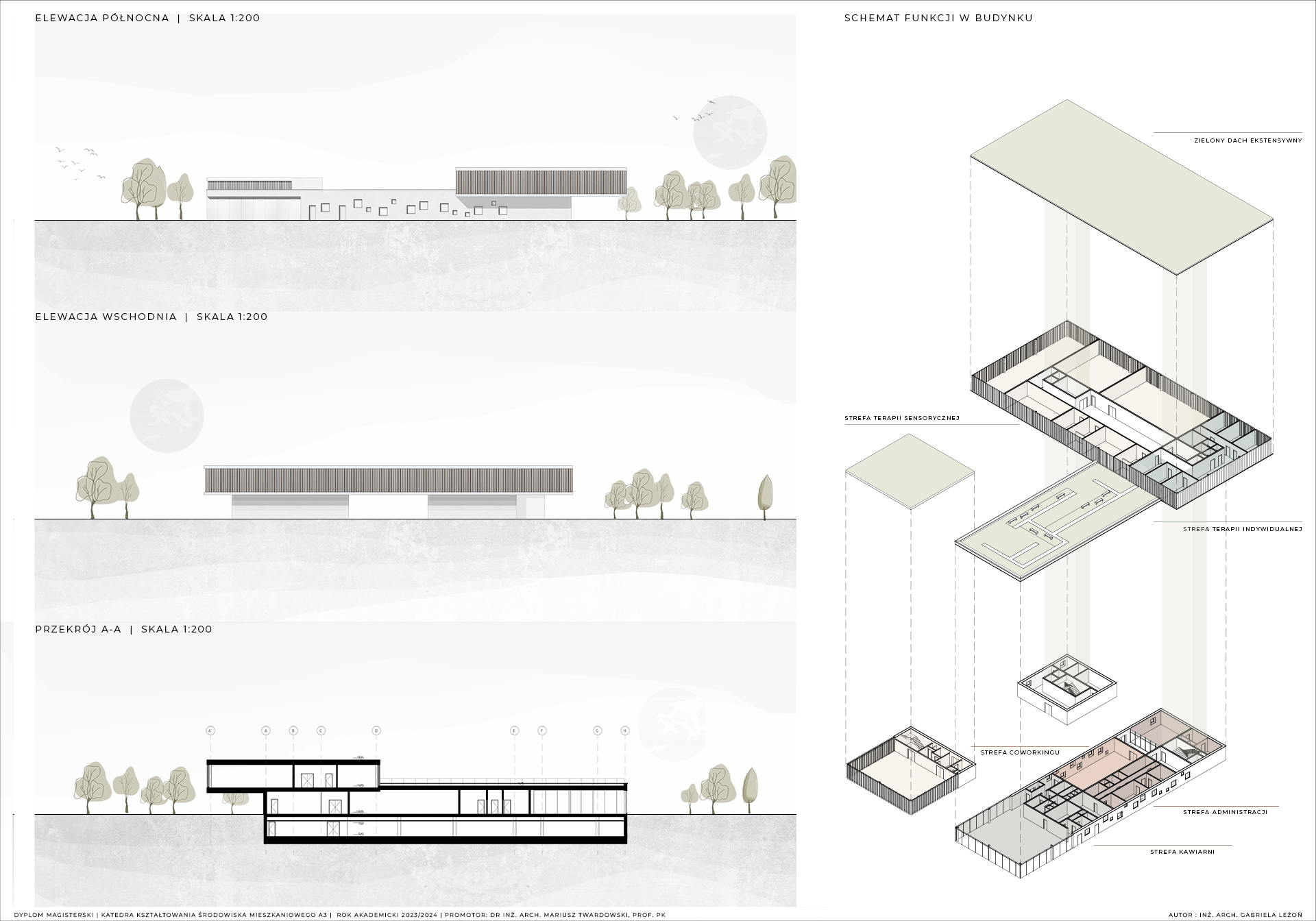 Obiekt, zlokalizowany w pobliżu terenów zielonych i jeziora, łączy funkcje terapeutyczne, rekreacyjne i integracyjne. Przewidziano przestrzenie do profesjonalnej terapii psychologicznej i sensorycznej oraz miejsca do odpoczynku i kontemplacji.