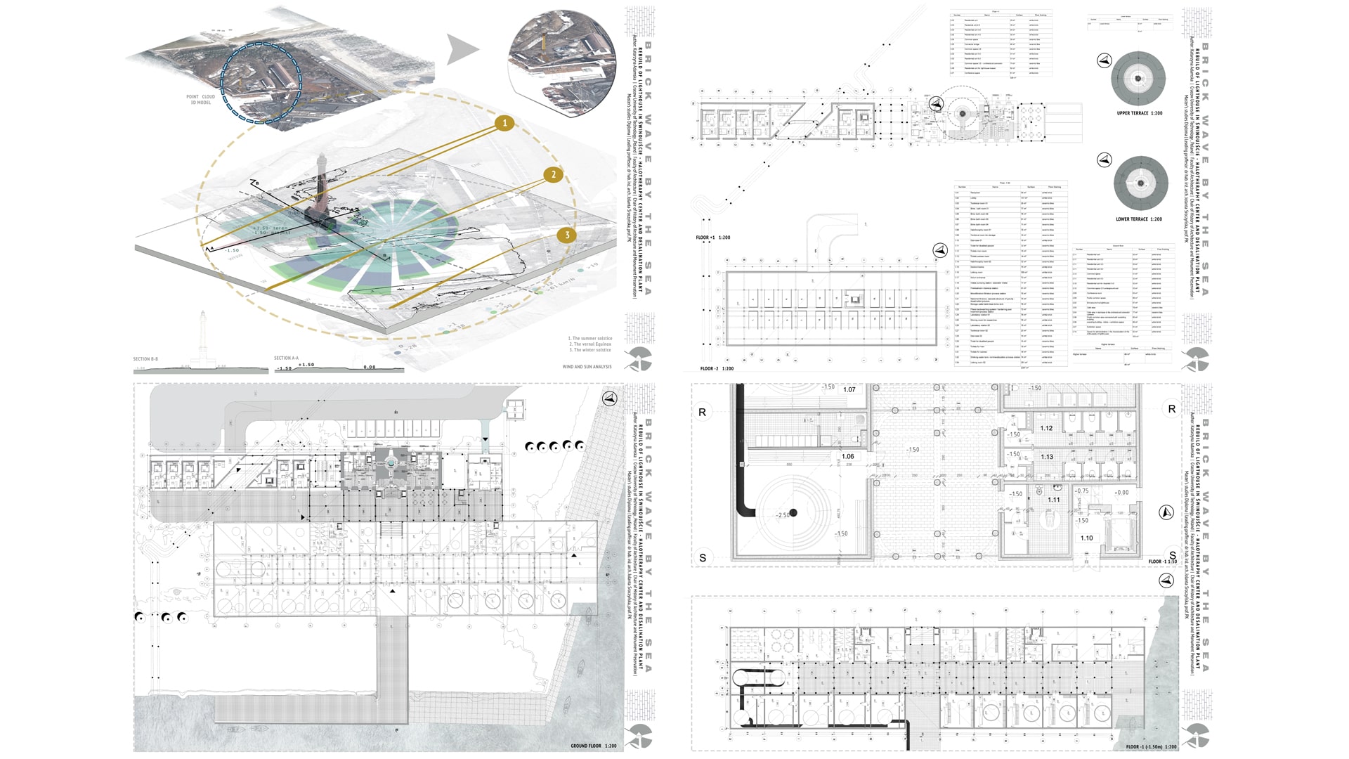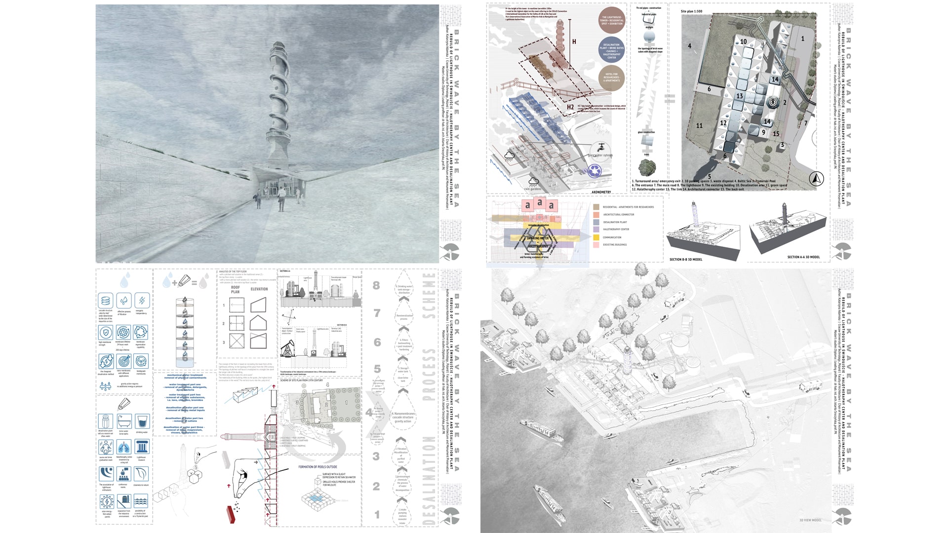 The thesis focuses on the concept of adapting and rebuilding the lighthouse in Świnoujście as the tallest brick structure of its kind in the world. The aim of the project is to give the structure: the function of a seawater desalination centre in the face of the world’s drinking water shortage crisis. The recovered sea salt will be used to create a space for salt treatment – halotherapy – and a space for popularising the architecture of lighthouses in Poland. This work thoroughly penetrate the process of desalination of seawater and how salt functions as a treatment element. The marine environment, the trajectory of the marine transport route and the function of the gas port at no great distance, is analysed. The architectural form itself makes use of the topography of the site. The cube „salt” forms are arranged in two directions: towards the Baltic Sea and the Trymerski Basin. The main form is a cube made of white clinker brick, with a gabled roof, but diagonally, which allows the façade to refer to the contour of a sea wave and grains of salt.