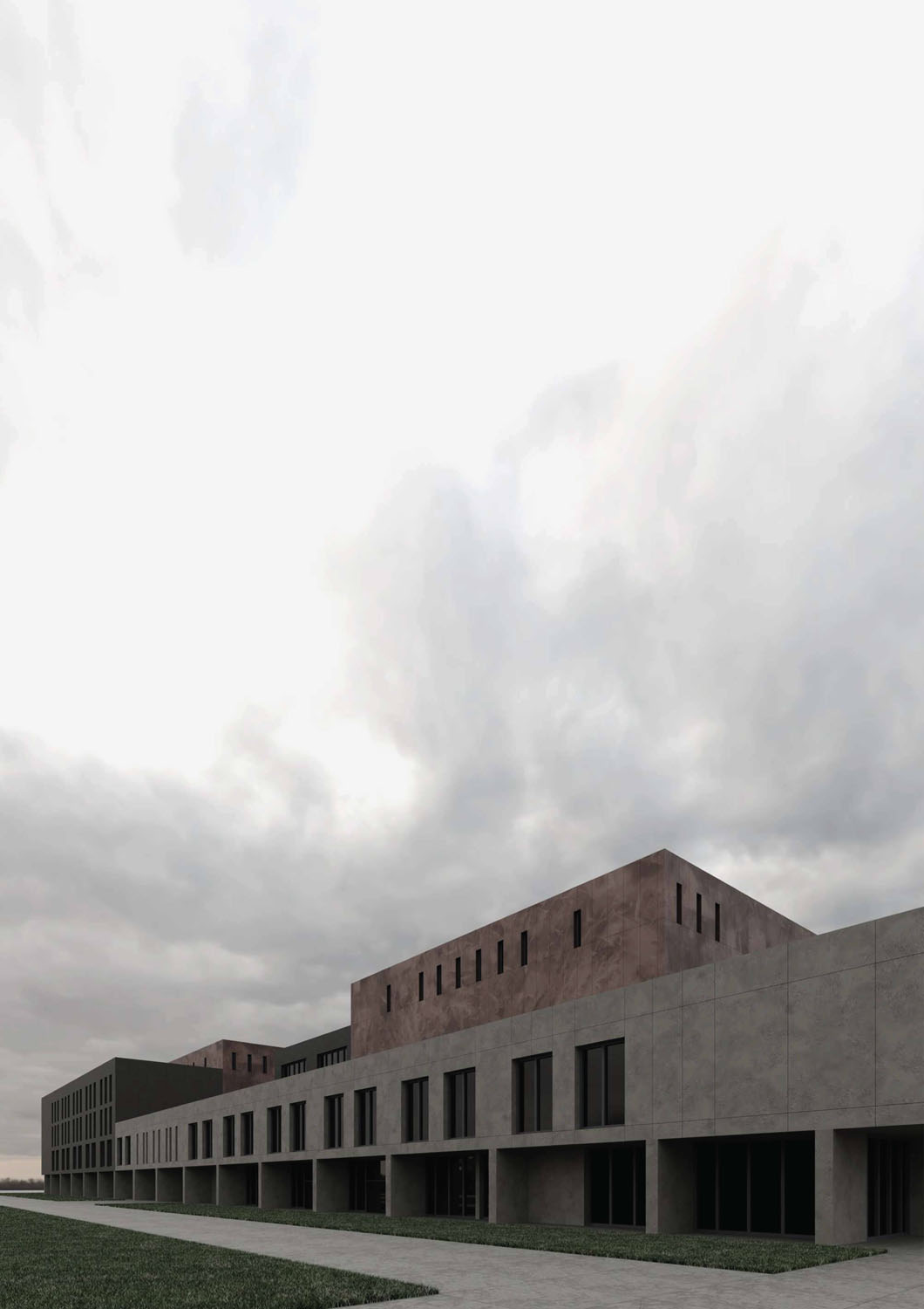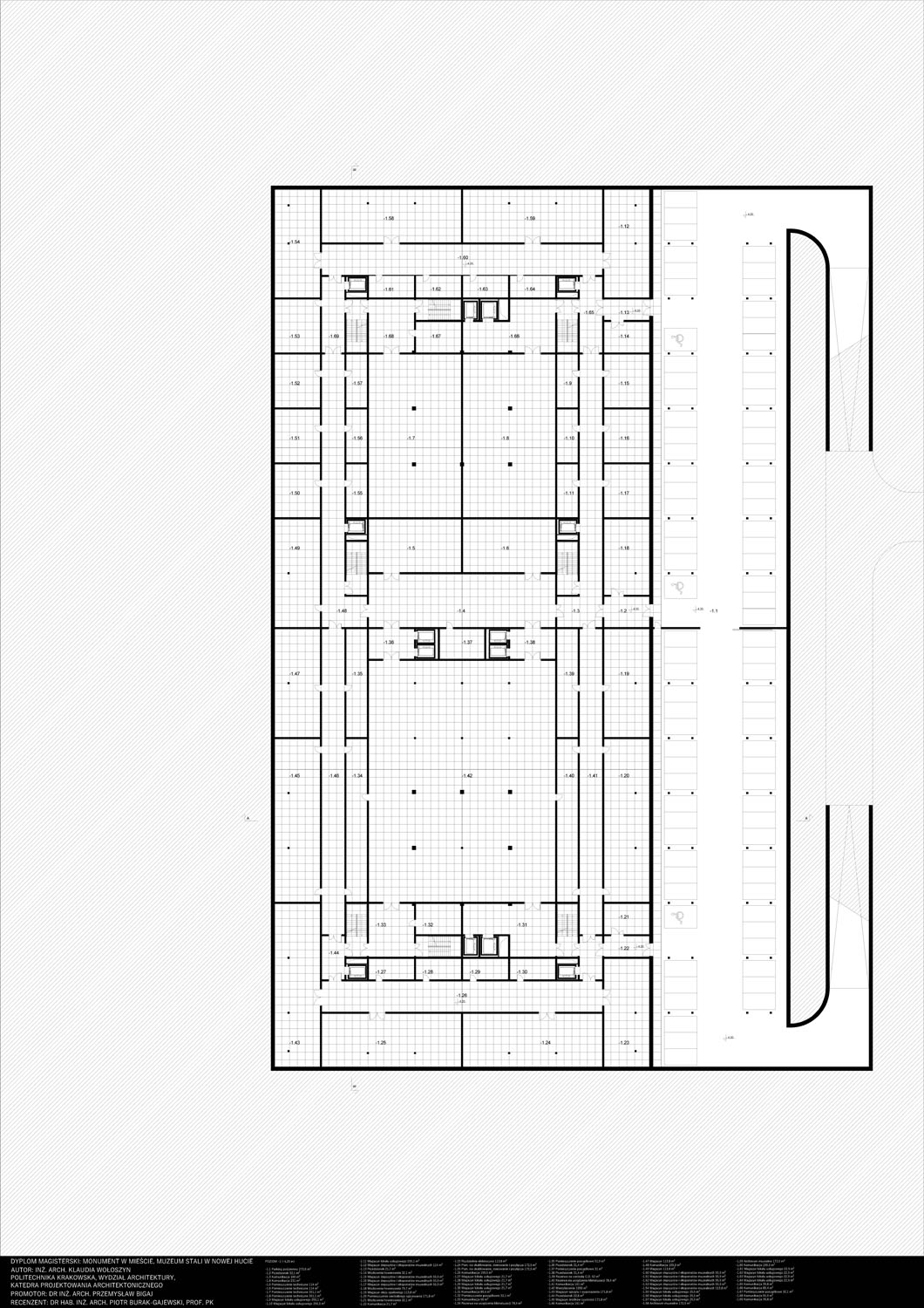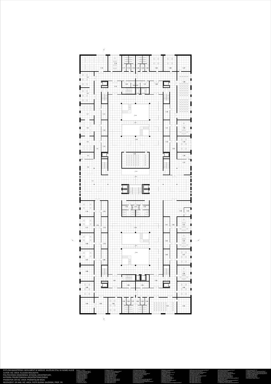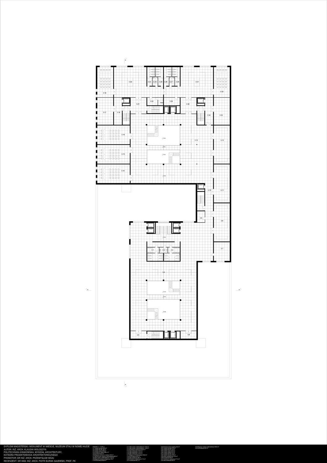 Zadaniem projektowym było stworzenie budynku grającego rolę monumentu miejskiego. Docelowo zadanie to objęło Muzeum Stali w Nowej Hucie. Obiekt zlokalizowano w miejscu obecnego Parku Ratuszowego. Pretekstem do powstania bryły budynku był obraz amerykańskiej malarki – Patsy Krebs. Obraz, z którego czerpana była inspiracja do bryły muzeum powstał na płótnie w roku 1990. Obraz jest symetryczny i zawiera w sobie trzy kolory – biel, czerń oraz dwa żółte kwadraty akcentujące kompozycję. Po wysunięciu wysokości z płaskiego dzieła powstała trójwymiarowa bryła o podstawie prostokąta. Dwie niższe bryły, które nachodzą na siebie wykończone są betonowymi płytami elewacyjnymi co nadaje budowli surowego wyglądu. Swoim ułożeniem nawiązuje on do istniejącego już otoczenia miejskiego poprzez dostosowanie jego wysokości oraz wyrównanie linii elewacji z otaczającą zabudową. Akcentem całego obiektu są dwie wysunięte do góry bryły – na obrazie żółte prostokąty. W projekcie pokryte one zostały blachą kortenowską. Mają one za zadanie tworzyć imitację starych kominów hutniczych nawiązując tym do programu wystaw muzealnych oraz historii miejsca.
