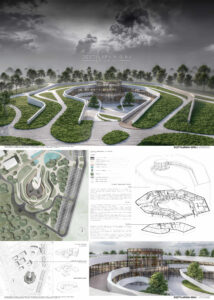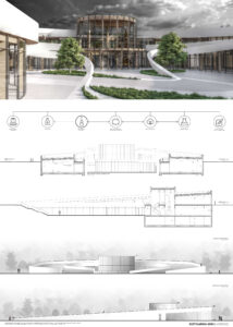 Ideowym rdzeniem projektu pod względem estetycznym jest stworzenie formy, która bezpośrednio zintegrowana zostanie ze strukturą otaczającego ją terenu. Ma za zadanie sprawiać wrażenie bardziej obiektu wyrastającego z ziemi, niż na niej posadowionego. Obłe kształty i zaokrąglone narożniki dodadzą organiczności, a dach będzie ściśle połączony z roślinnością porastającą obszar wokół.