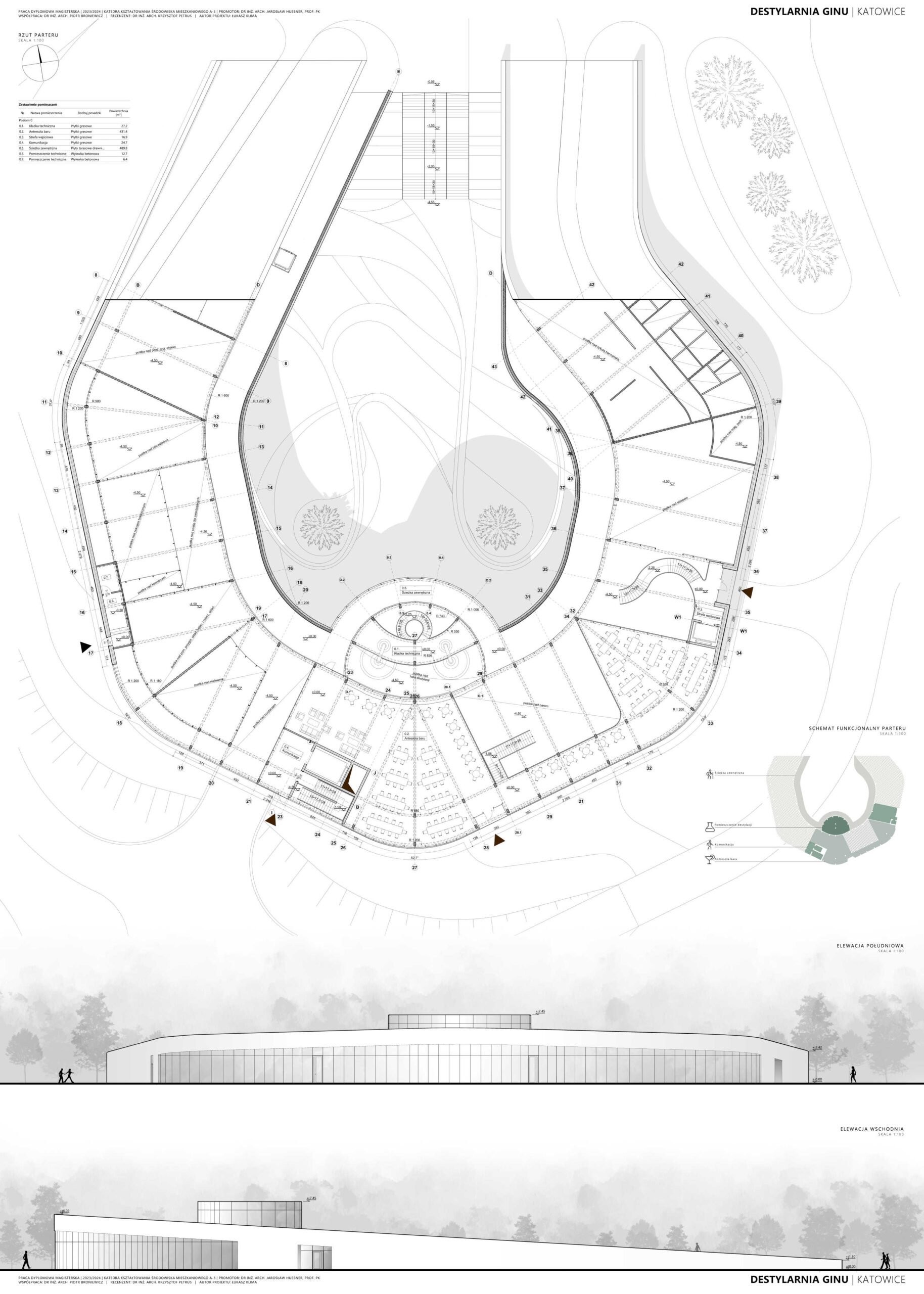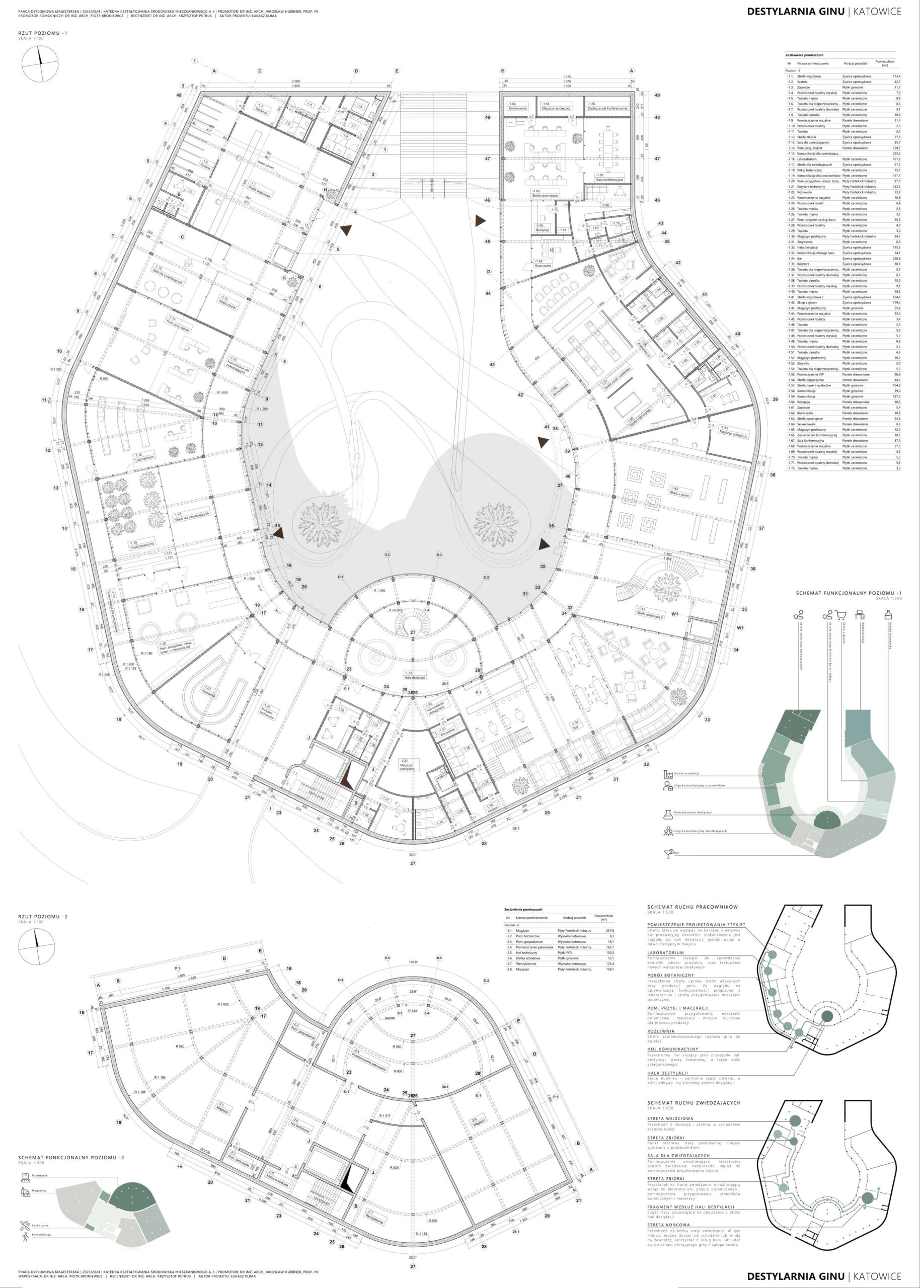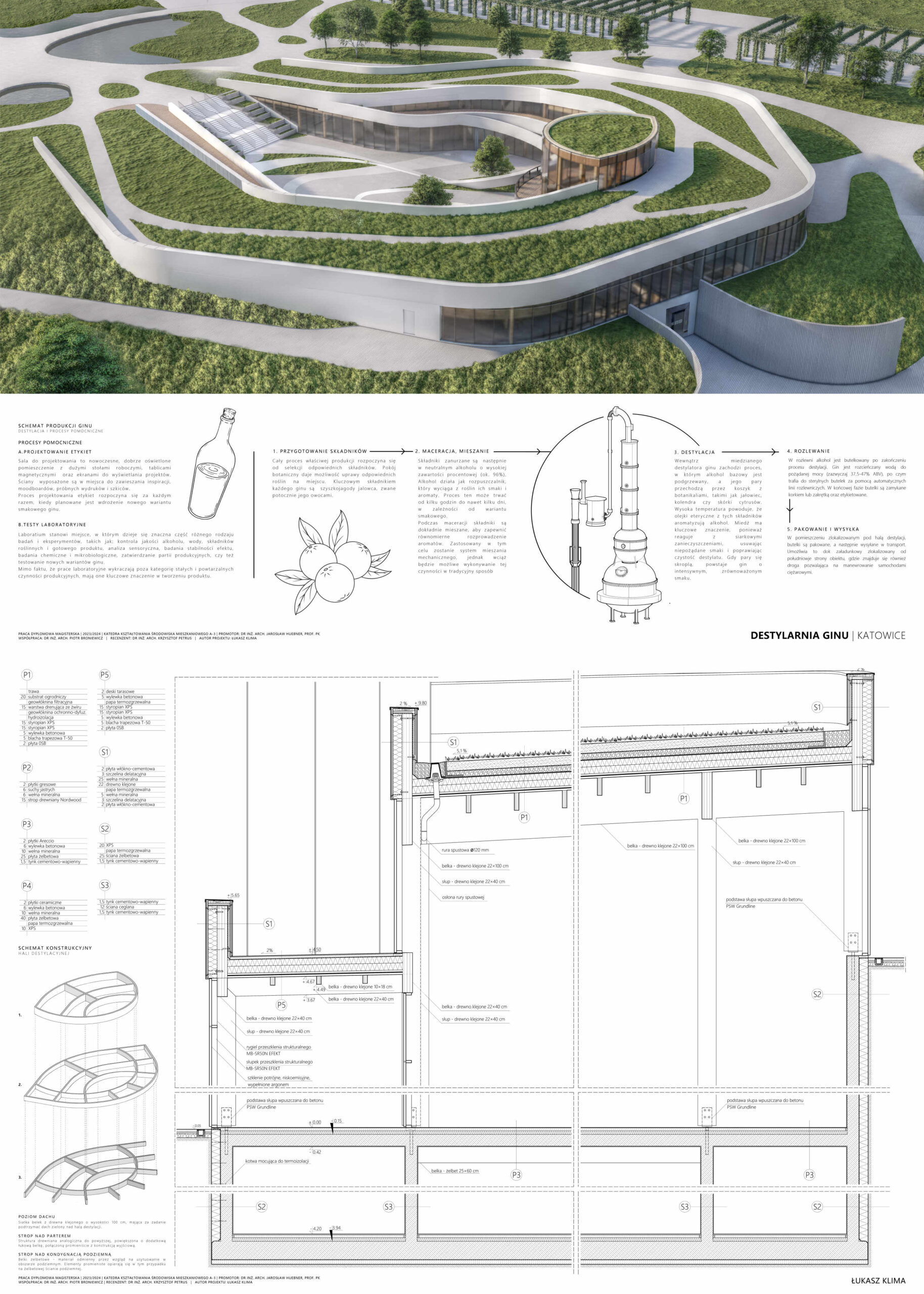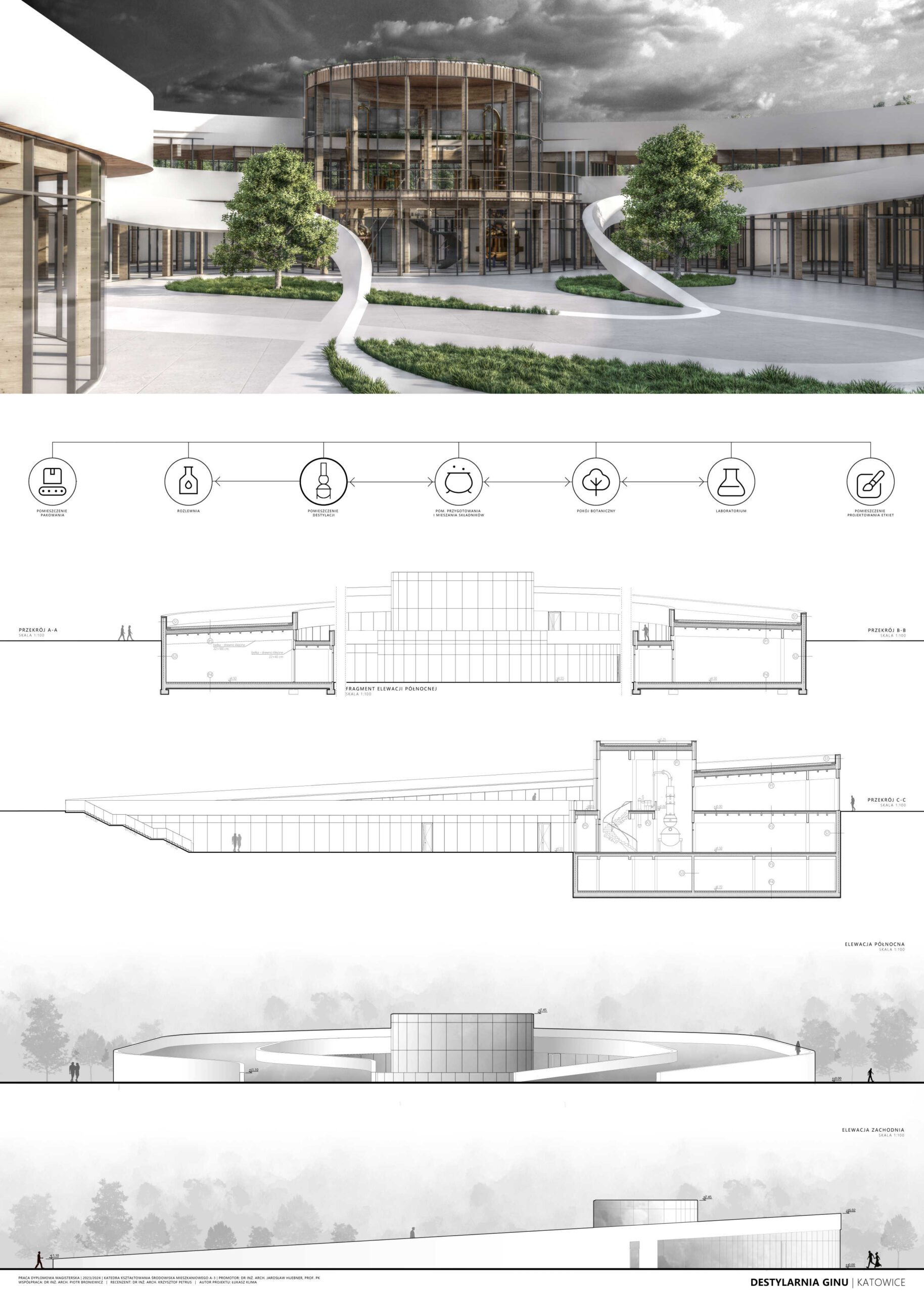 Sama destylarnia ginu będzie obiektem przeznaczonym dla ludzi z pasją. Sam proces produkcji nie byłby wystarczający, gdyby nie mogli doświadczyć go zainteresowani tematem ludzie z zewnątrz. Dlatego projekt przewiduje trasę zwiedzania ściśle powiązaną z całym procesem wytwarzania ginu, tak aby pozwolić obserwatorowi w sposób czynny zapoznać się z wszystkimi tajnikami tego procesu. Ścieżka kończyć się będzie w dwupoziomowym barze z widokiem na najbardziej reprezentatywną, usytuowaną w samym centrum projektu i wyniesioną ponad niego kubaturowo strefę obiektu – halę destylacji. Dwa miedziane destylatory o wysokości ponad 7 metrów stanowić będą główny akcent wizualny, widoczny z prawie każdej strony budynku.