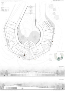 Pod względem interakcji z pozostałymi obiektami projektowanymi na działce – Centrum Kultury Chin i Centrum Designu – obiekt otwierał się będzie w kierunku środka całego terenu, stanowiącego splot wszystkich ważnych kierunków wychodzących z każdego z budynków. Obiekty stanowić będą całościowy zespół, celowo kontrastując ze sobą pod względem form, materiałów i kolorów. Cała przestrzeń wewnątrz i wokół nich stworzy duży obszar rekreacyjny, mający za zadanie zapewnić nowe, bardzo zróżnicowane możliwości spędzania wolnego czasu dla mieszkańców i przyjezdnych.