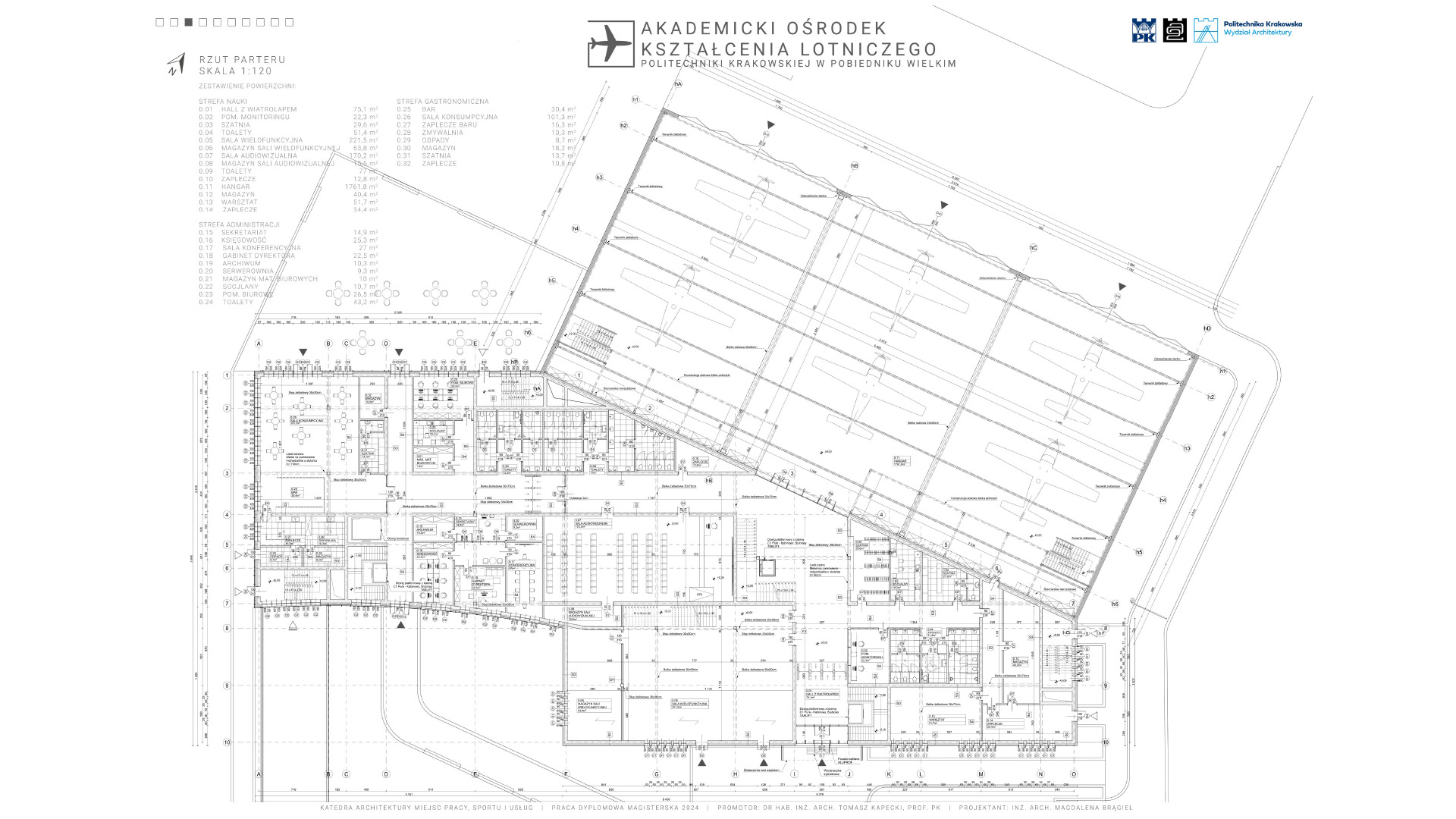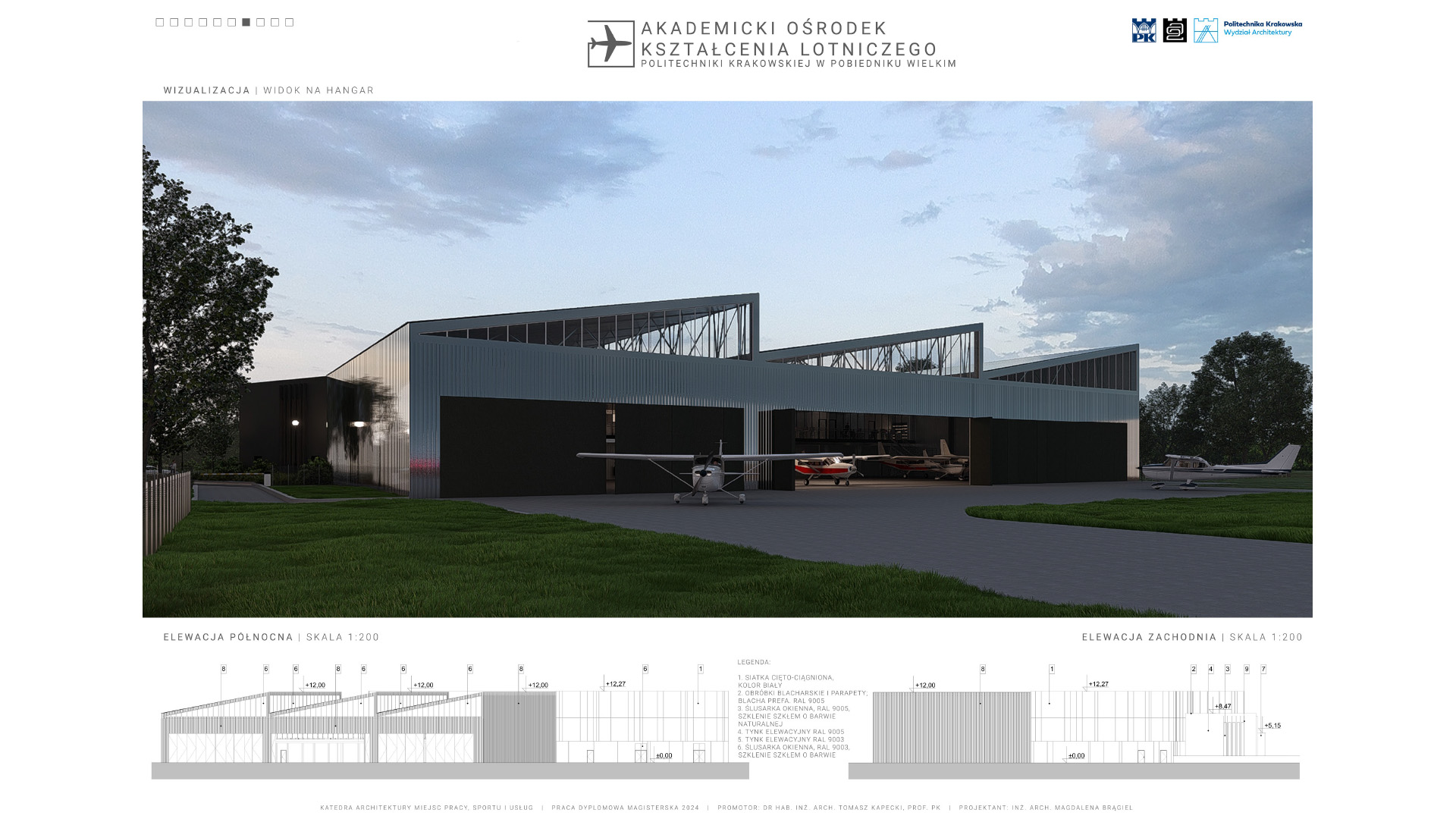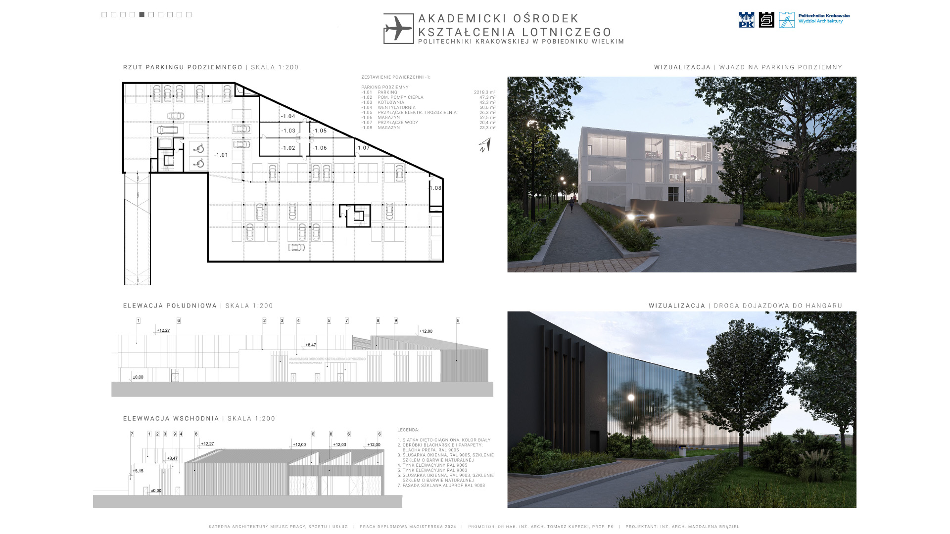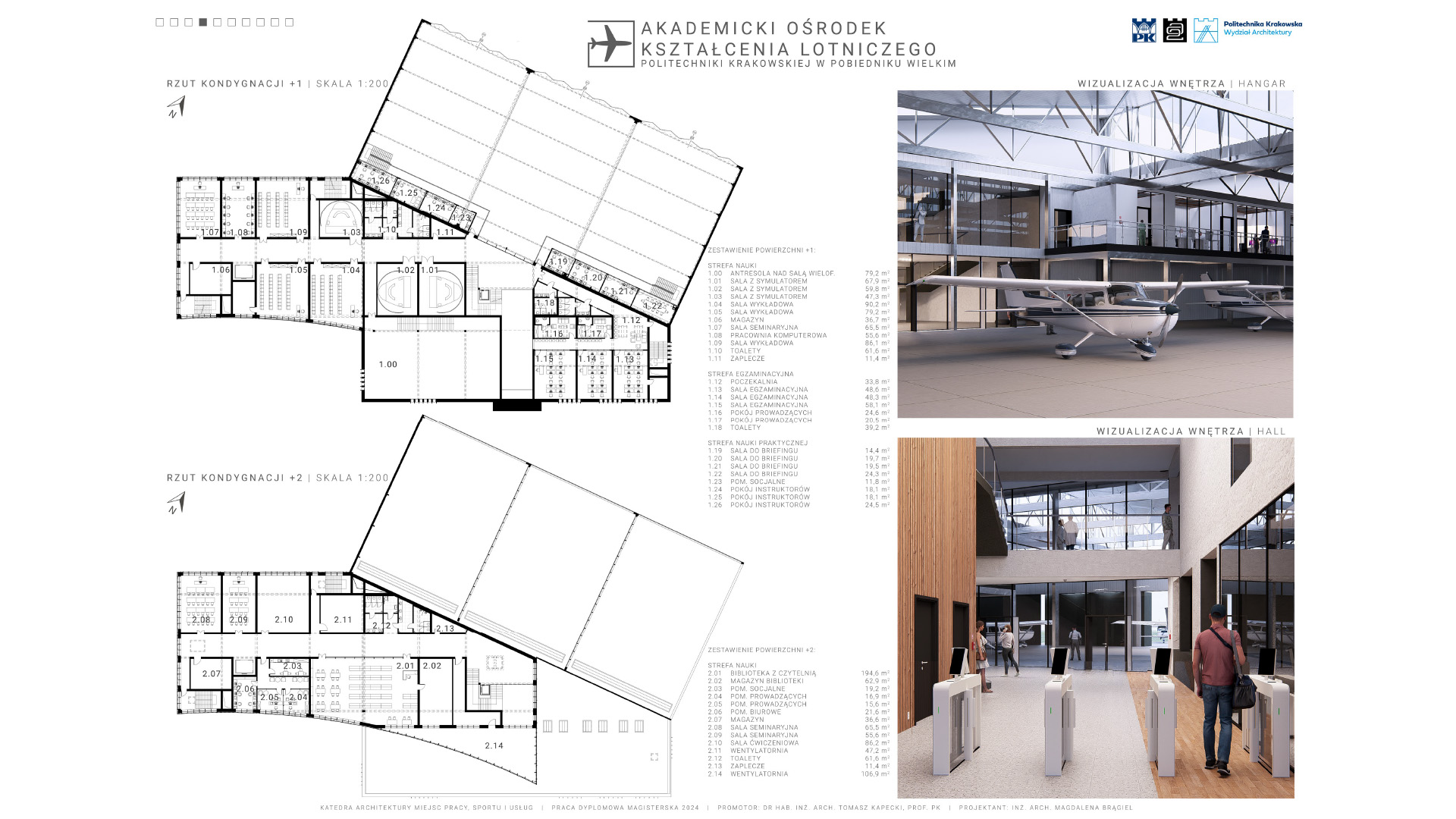 Ideą projektu jest stworzenie Akademickiego Ośrodka Kształcenia Lotniczego Politechniki Krakowskiej, który byłby odpowiedzią na mało dostępną edukacje lotniczą w województwie małopolskim. W Polsce działa 15 Politechnik z czego tylko 3 oferują kierunek związany z lotnictwem. Planowany obiekt zostałby zlokalizowany w sąsiedztwie pasa startowego w Pobiedniku Wielkim. Dzięki temu zabiegowi studenci nie będą zmuszeni podróżować między różnymi budynkami w celu odbycia zajęć. Projektowany budynek łączyłby w sobie wszystkie niezbędne funkcje takie jak strefę nauki teoretycznej, nauki praktycznej, strefę egzaminacyjną, strefę administracji oraz strefę gastronomiczną. Ośrodek posiadałby również pomieszczenia przeznaczone na najnowsze symulatory lotów. Ponad to projektuje się salę wielofunkcyjną zlokalizowaną zaraz przy głównym wejściu do budynku. Pozwalałoby to na organizację różnych wydarzeń oraz prelekcji związanych z lotnictwem. Stworzenie tego typu ośrodka byłoby doskonałą odpowiedzią na prężnie rozwijającą się branżę lotniczą w Krakowie.