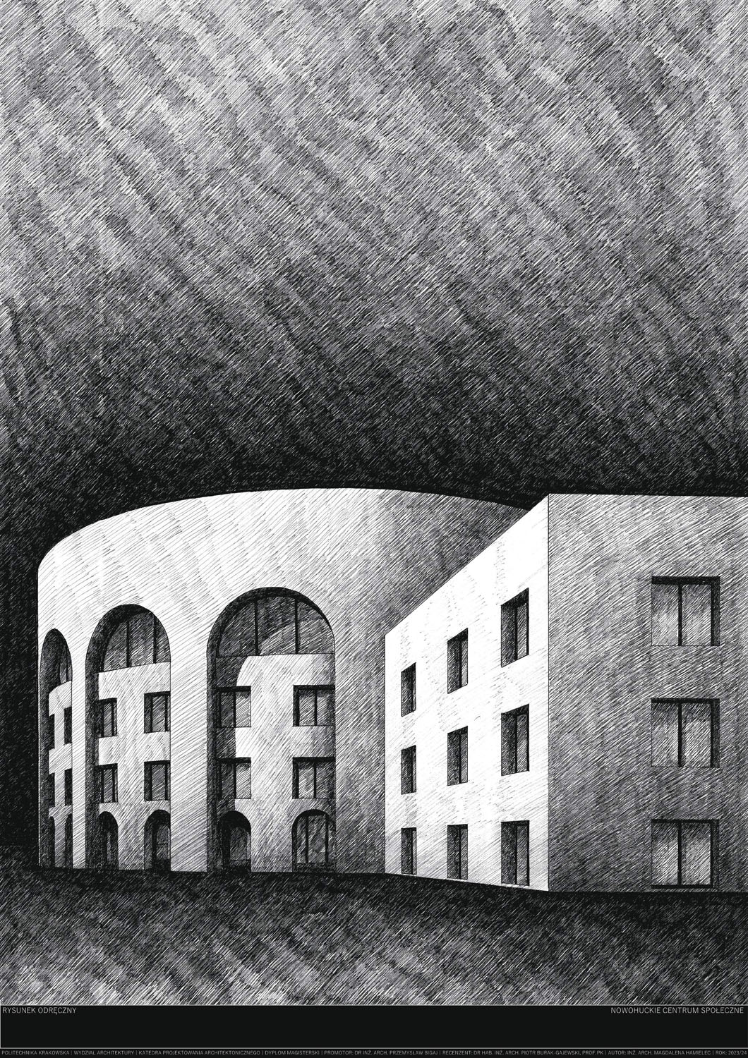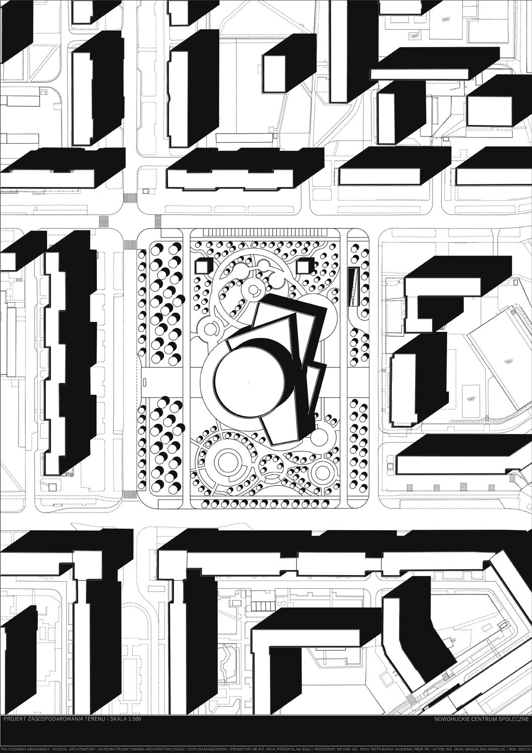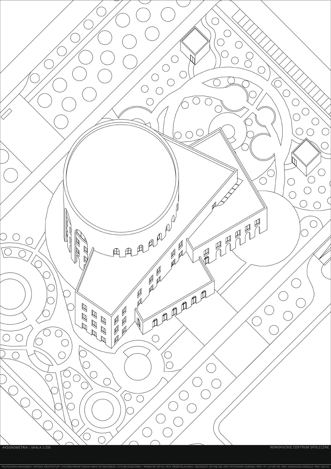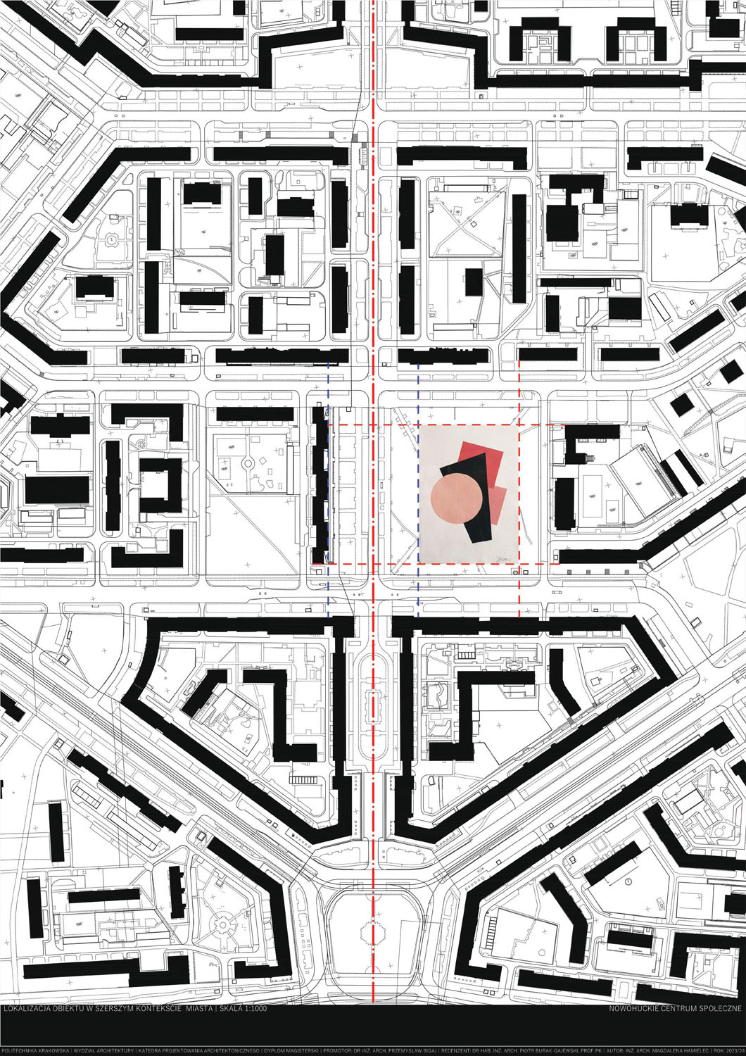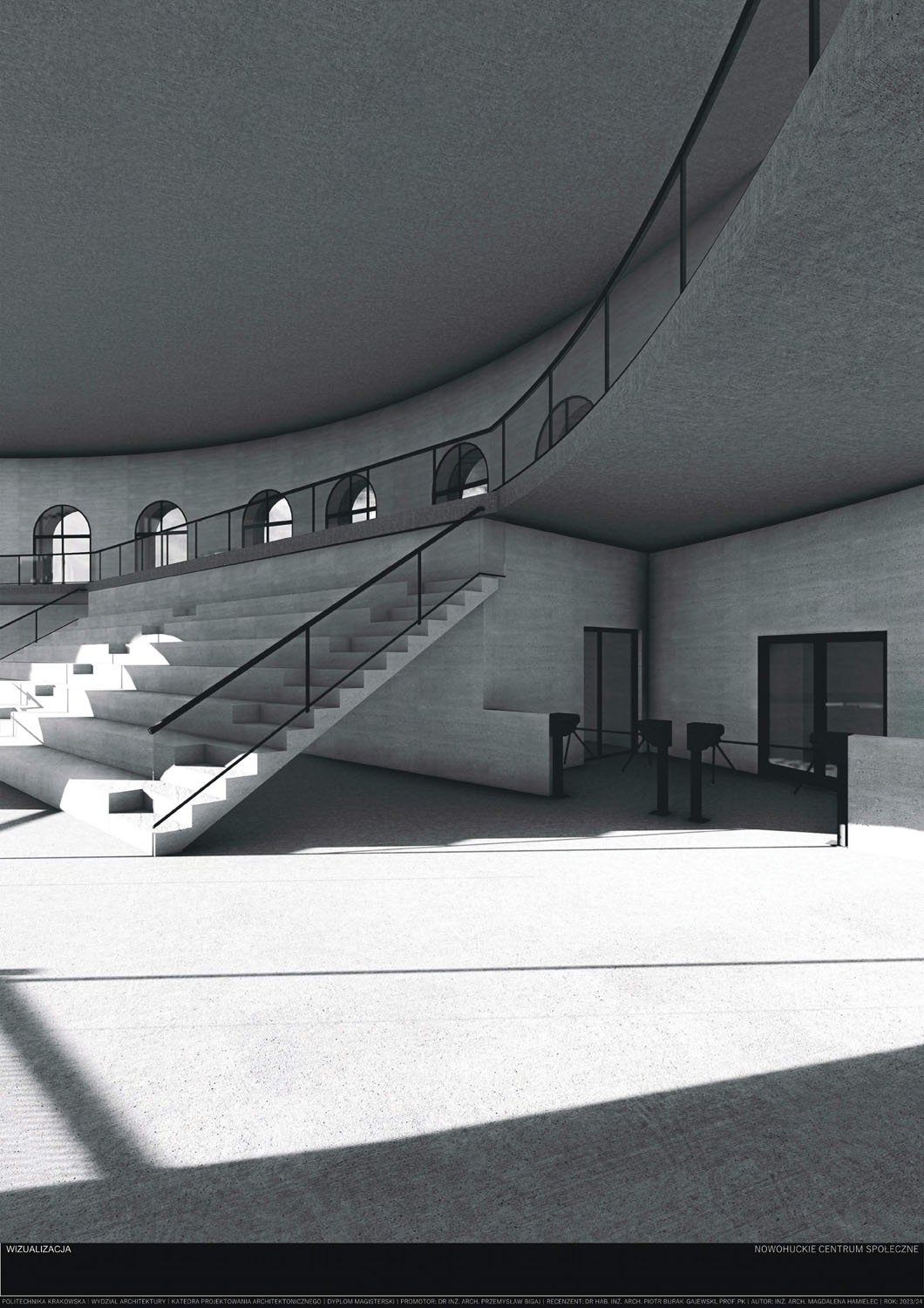 Główna idea zakłada zaprojektowanie Nowohuckiego Centrum Społeczności, które ma stanowić przestrzeń przede wszystkim dla wspólnoty danej dzielnicy Krakowa. Inicjatywa dla powstania tego typu obiektu powstała po wstępnych analizach oraz sytuacji demograficznej obszaru. Wykazały one, iż najbliższy teren projektowy stanowią osiedla mieszkaniowe z licznymi obiektami oświaty. Natomiast demograficznie, nie tylko w owej dzielnicy, ale i w całej Polsce mamy do czynienia z społeczeństwem „starzejącym się”. Przedstawione dane sugerują, iż dana dzielnica Krakowa stanowi głównie przestrzeń mieszkalną dla społeczności przynależnej do wszelakich kategorii wiekowych. Z tego względu zakłada się stworzenie obiektu będącego otwartą i przyjazną przestrzenią dla każdego mieszkańca Nowej Huty oraz odwiedzających tę dzielnicę.