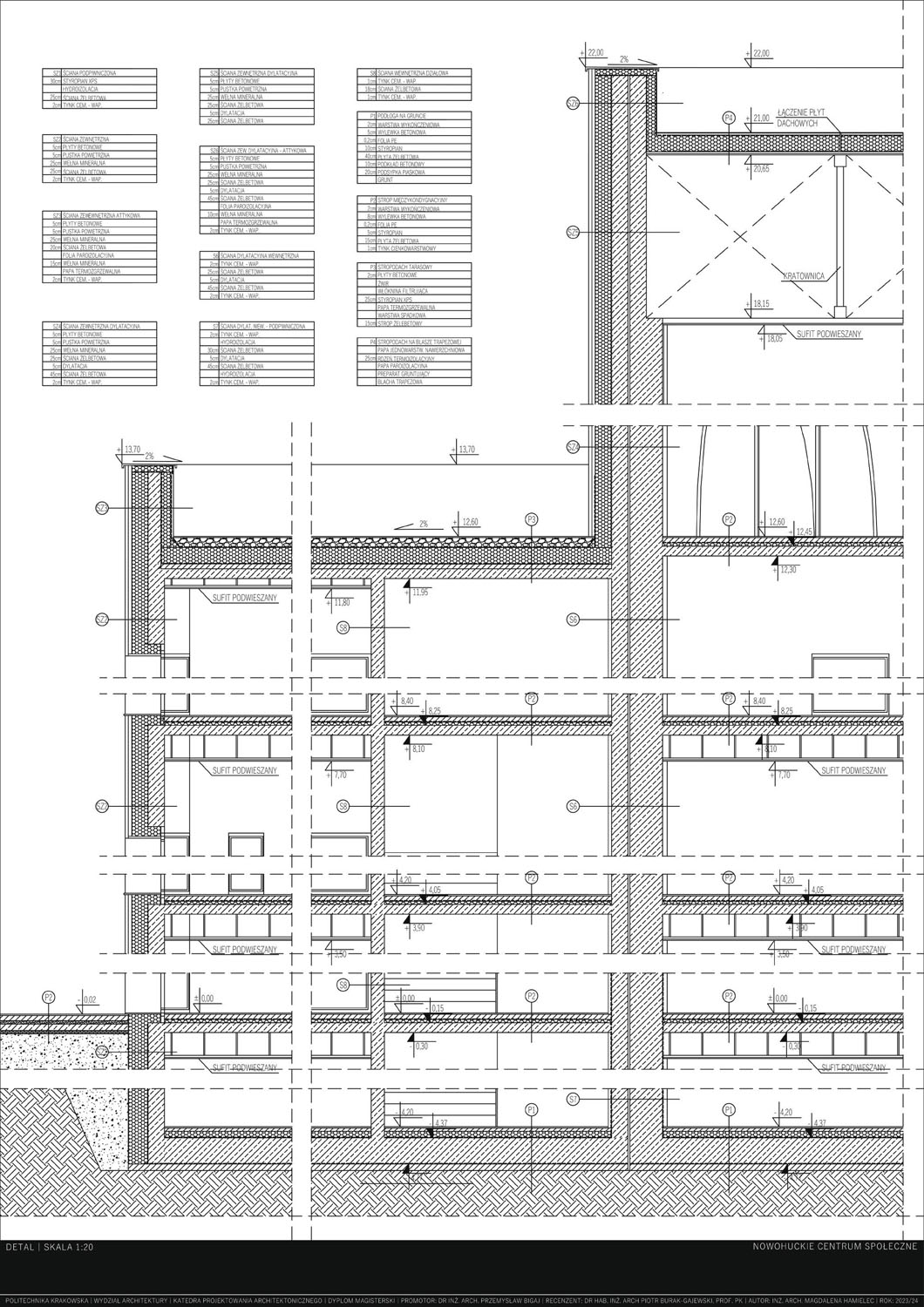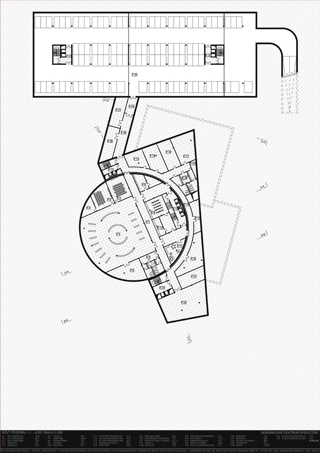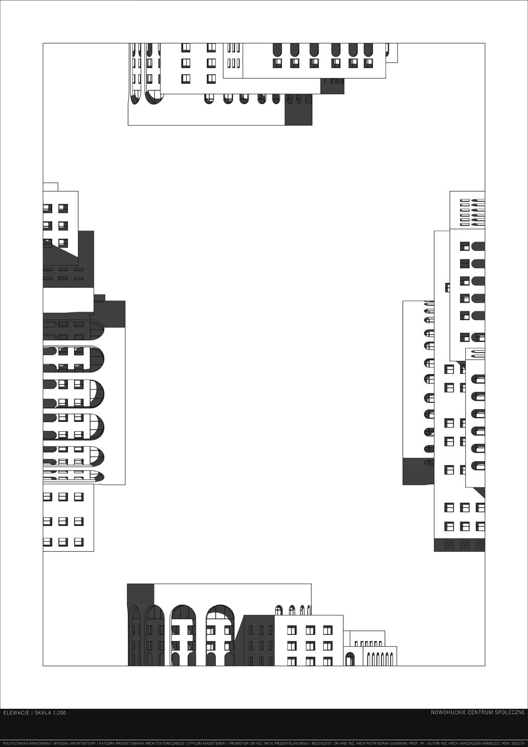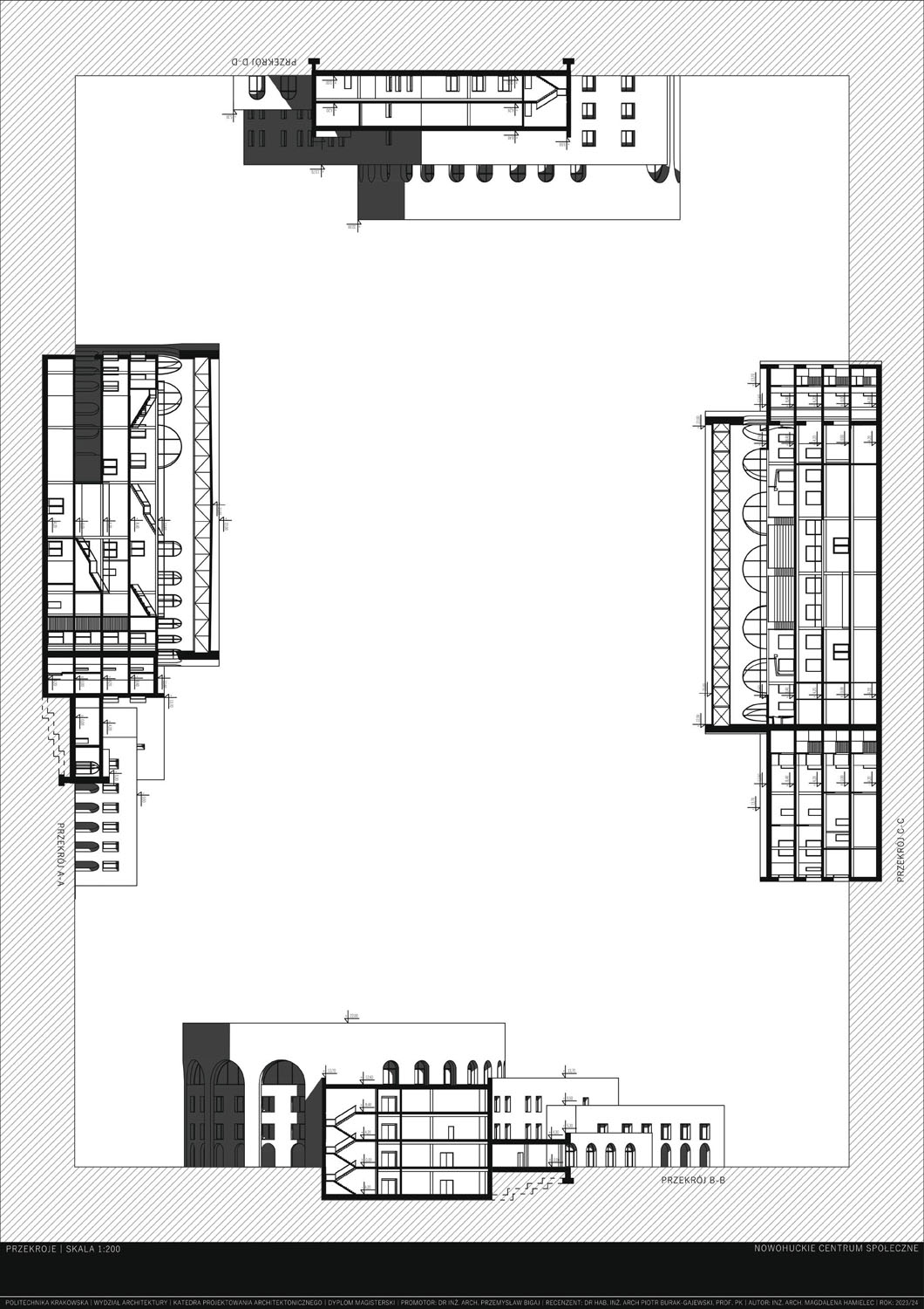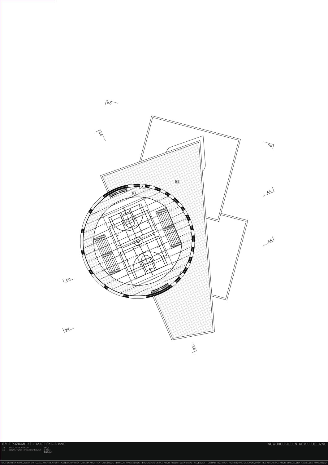Nowohuckie Centrum Społeczne to wielofunkcyjna przestrzeń zarówno zewnętrzna, wokół budynku, jak i wewnętrzna zamknięta oraz półotwarta na otoczenie. Sam obiekt posiada zarówno strefy wspólne jak i indywidualne podzielne ze względu na kategorie wiekowe użytkowników. Najważniejsze to użytkowników. Najważniejsze z nich to: strefa muzealna, strefa seniora, strefa biblioteki / czytelni, strefa młodzieży, strefa sportu.