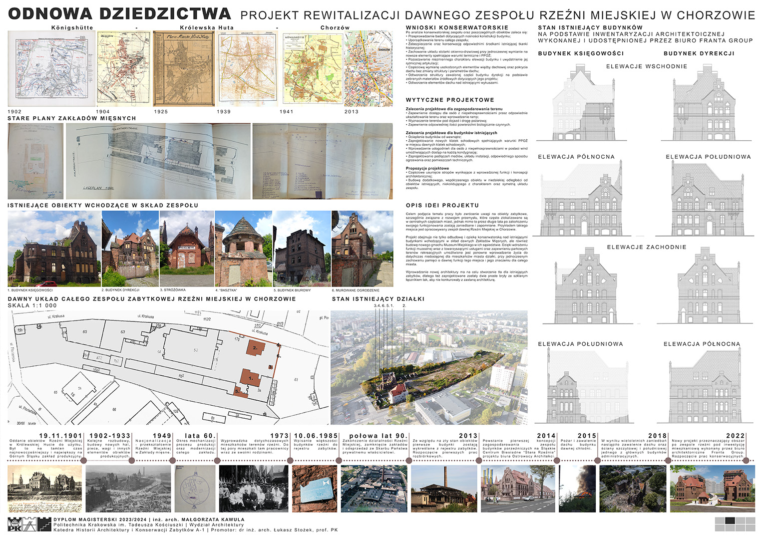 Celem podjęcia tematu pracy było zwrócenie uwagi na obiekty zabytkowe, szczególnie związane z rozwojem przemysłu, które często zlokalizowane są w centralnych częściach miast, jednak mimo tego przez lata po zakończeniu swojego funkcjonowania zostają zaniedbane i zapomniane. Przykładem takiego miejsca jest opracowywany zespół dawnej Rzeźni Miejskiej w Chorzowie.