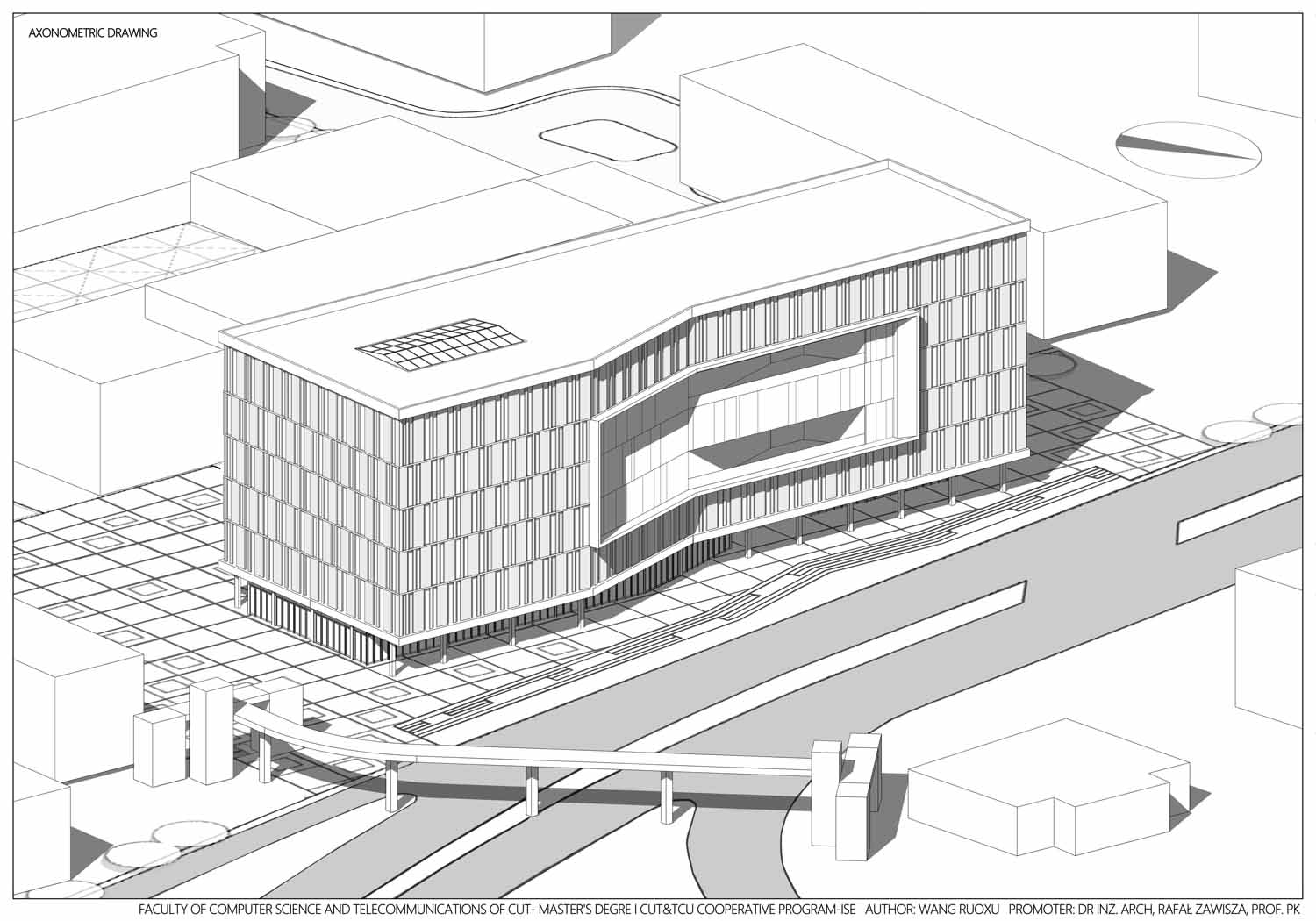 Polisemia architektury użyteczności publicznej: Projekt budynku Wydziału Informatyki i Telekomunikacji Politechniki Krakowskiej w Krakowie.