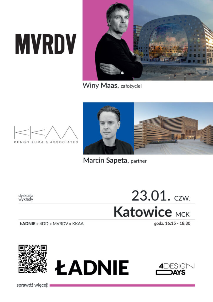 23 stycznia 2025 r. o godz. 16:15 w Międzynarodowym Centrum Kongresowym w Katowicach, podczas 4 Design Days 2025, odbędzie się panel dyskusyjny: ŁADNIE x 4DD x MVRDV x KKAA.