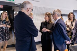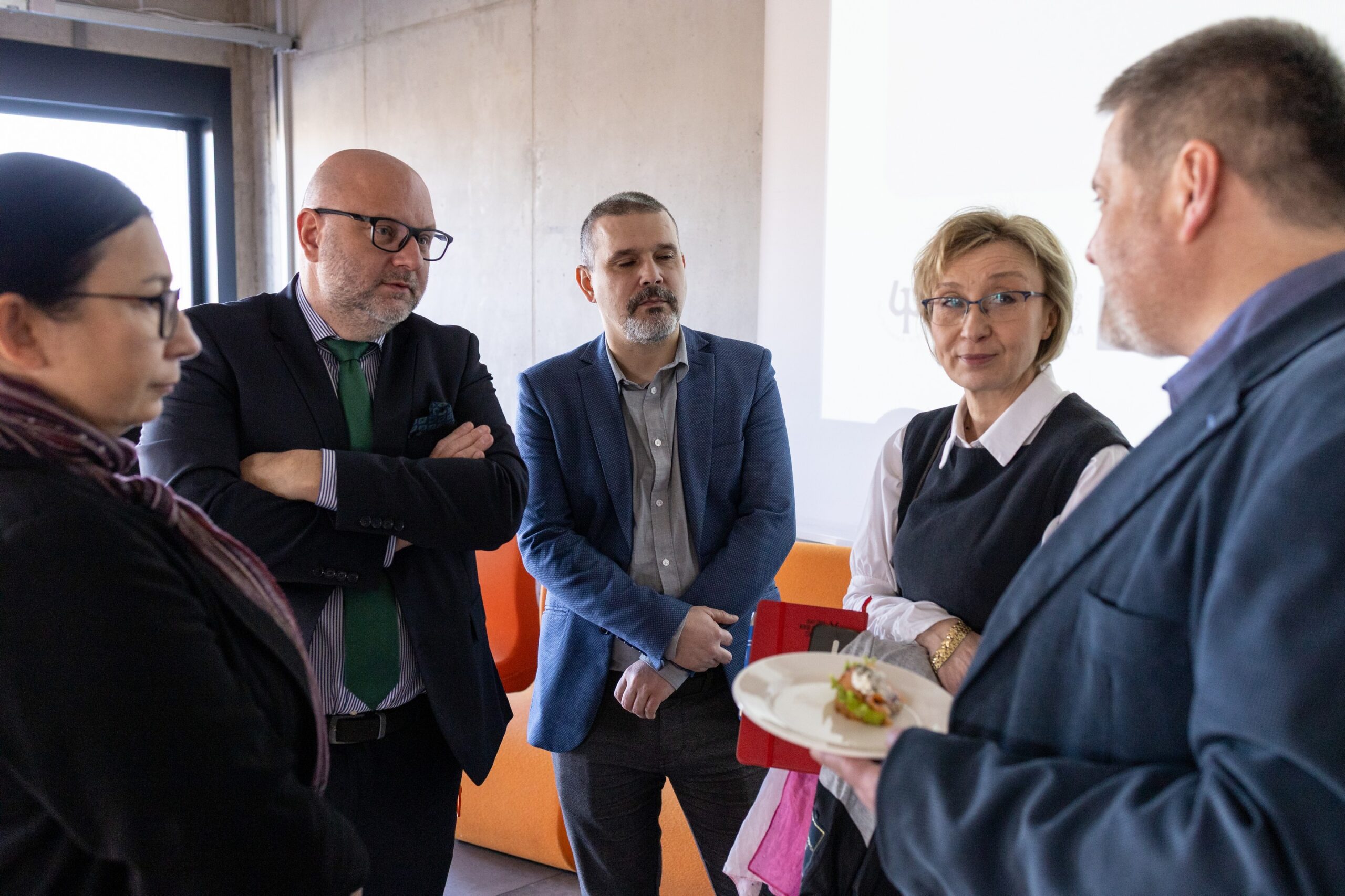 Goście mieli również okazję zwiedzić budynek WAWIZ, w tym laboratoria i zaplecze techniczne. Oprowadzał ich autor projektu, prof. dr hab. inż. arch. Sławomir Rosolski.