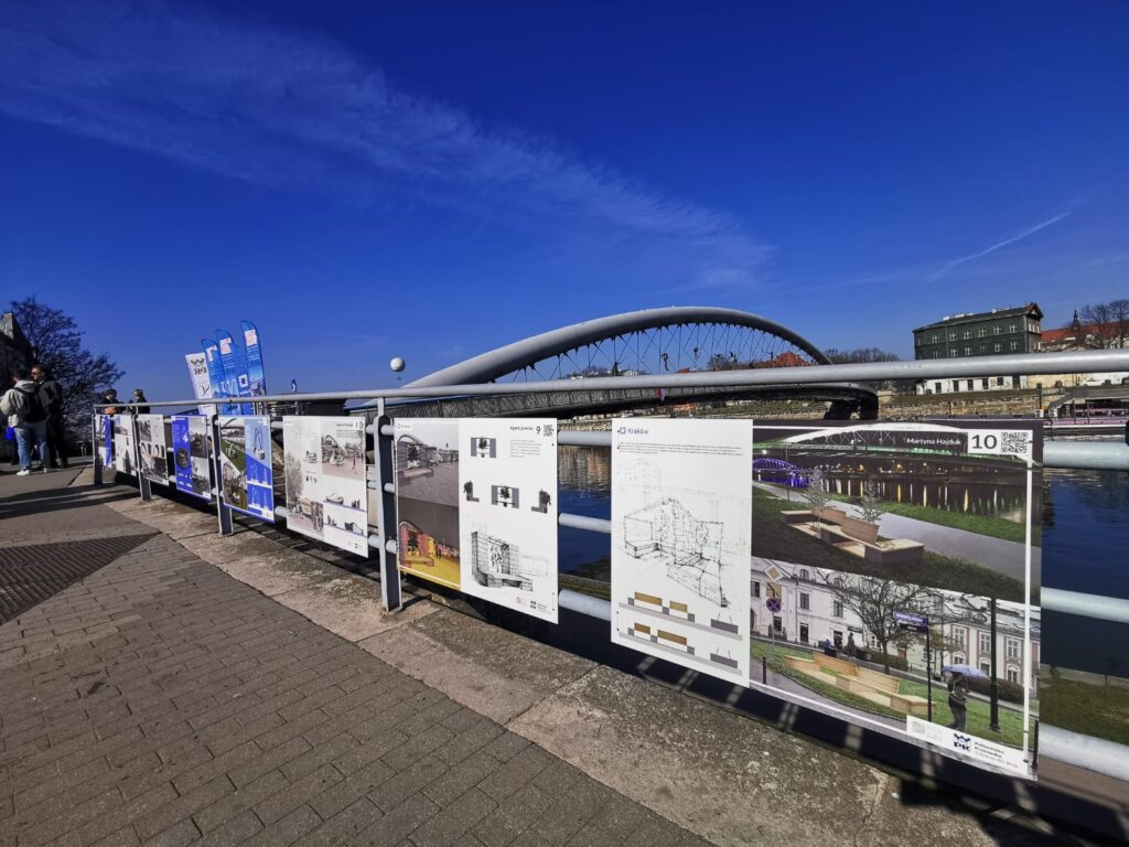 Finałowe projekty są zaprezentowane na planszach wystawionych w rejonie kładki. Aby oddać głos można zeskanować kody QR umieszczone na planszach z ulubionymi koncepcjami lub oddać głos za pośrednictwem strony Małopolskiej Izby Inżynierów Budownictwa. Głosowanie trwa od dnia 21.03.2025 przez 2 tygodnie.