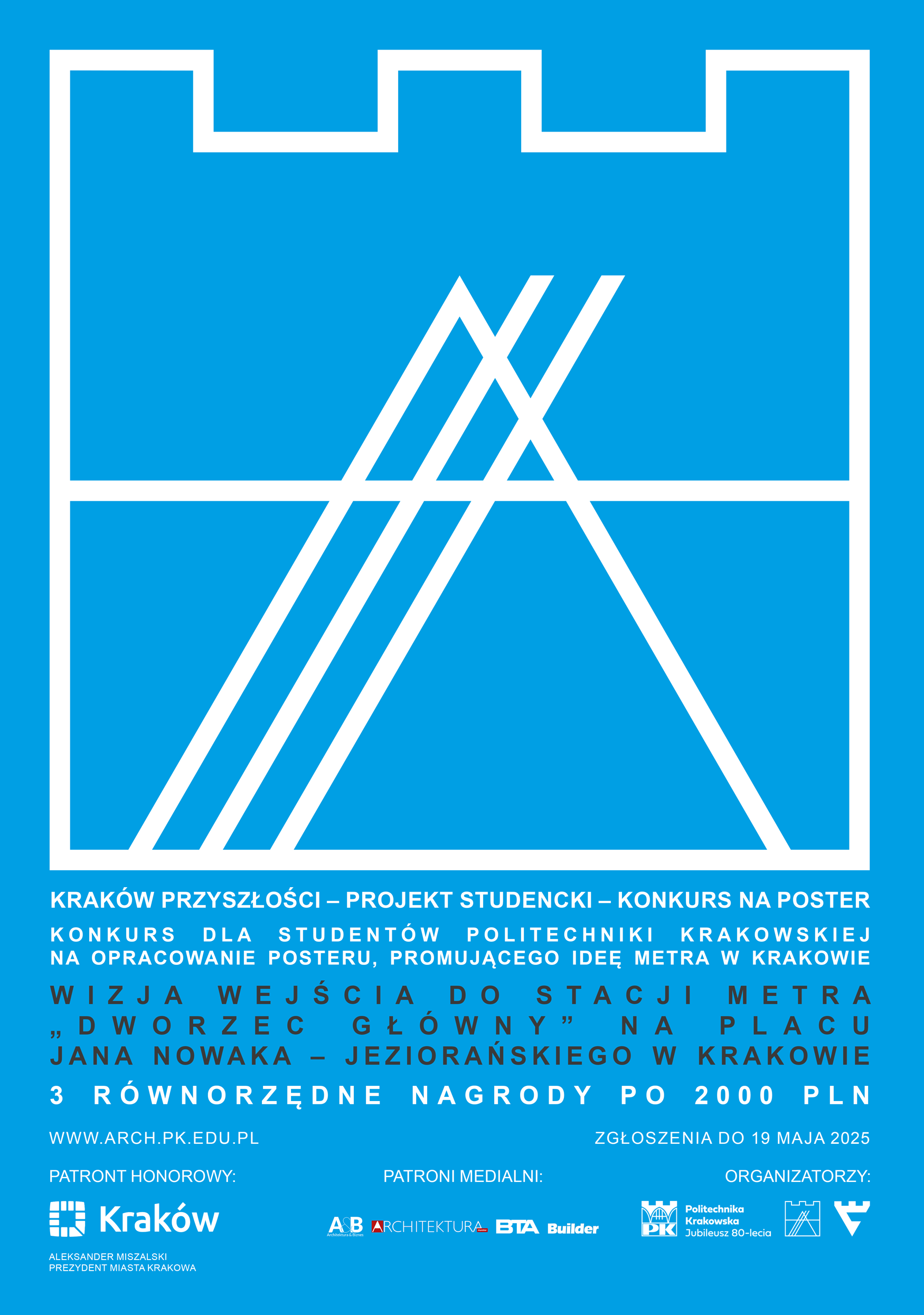 Konkurs na opracowanie posteru, promującego ideę wejścia do metra w Krakowie, dedykowany jest wszystkich studentom Politechniki Krakowskiej, a w szczególności tegorocznym dyplomantom I-go stopnia oraz otwartym kołom naukowym.