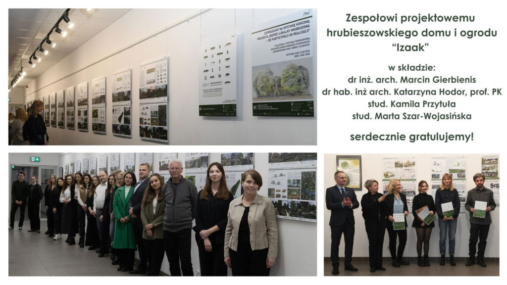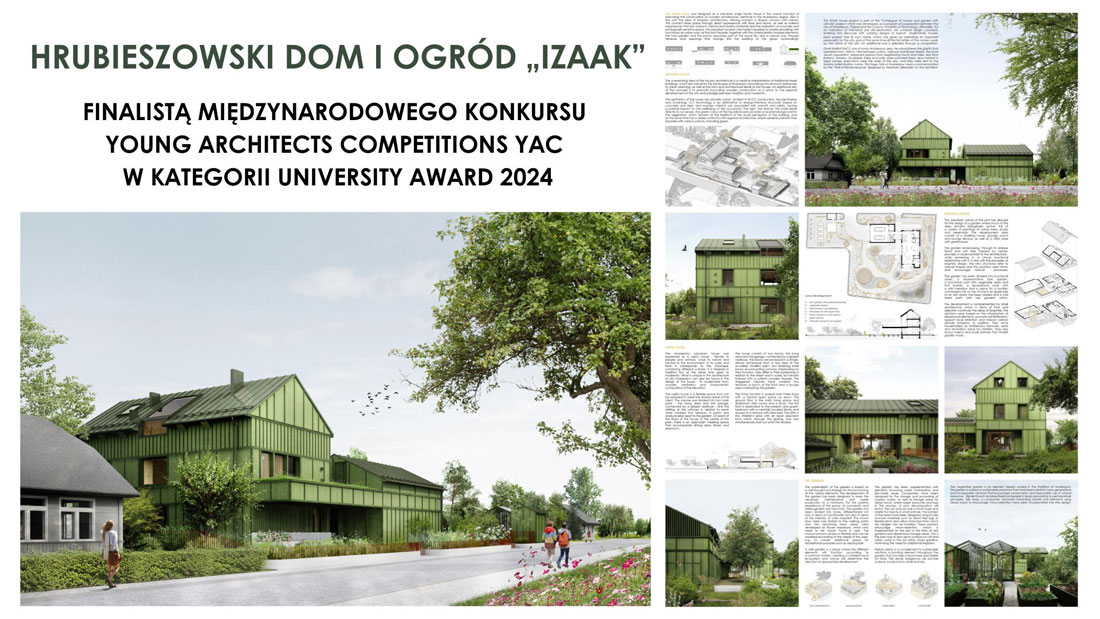 Dom i ogród „IZAAK” – zaprojektowany w zespole dr Marcin Gierbienis, prof. PK Katarzyna Hodor oraz Kamila Przytuła i Marta Szar-Wojasińska, łączącym dydaktyków i studentów kierunków architektura i architektura krajobrazu WAPK i opracowany w ramach projektu „Rozwój lokalny Hrubieszowa – od partycypacji do realizacji” – znalazł się w finale prestiżowego międzynarodowego konkursu dla młodych architektów (Young Architects Competitions YAC) – w kategorii projektów uniwersyteckich opracowanych wspólnie przez studentów i ich profesorów.
