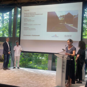 Budynek Edukacyjny w Leśnym Ogrodzie Botanicznym Marszewo w Gdyni autorstwa Gierbienis + Poklewski nagrodzony został w kategorii Zrównoważony Rozwój za – jak czytamy w uzasadnieniu – stworzenie miejsca na edukację, która swą formą i materiałem nawiązuje do tradycji i uczy o zrównoważonym rozwoju. Obiekt został zbudowany z drewna przy użyciu technologii CLT, a jego struktura i proporcje nawiązują do lokalnej kultury. To wielofunkcyjna przestrzeń spójnie zaprojektowana od detalu wnętrz po aranżację krajobrazową. Z wielką uwagą obiekt został wpisany w otoczenie z szacunkiem dla natury, krajobrazu i zastanych form osadniczych.