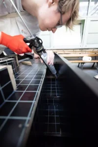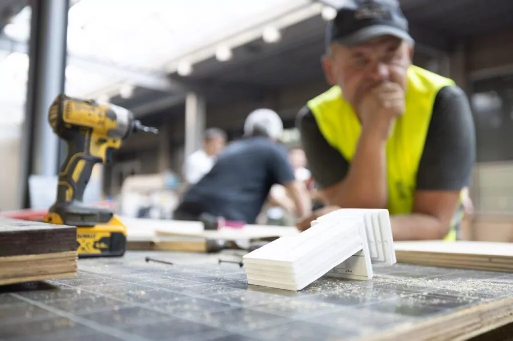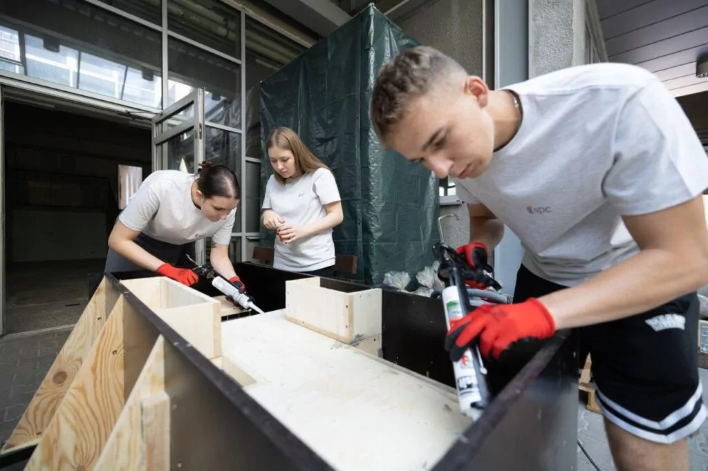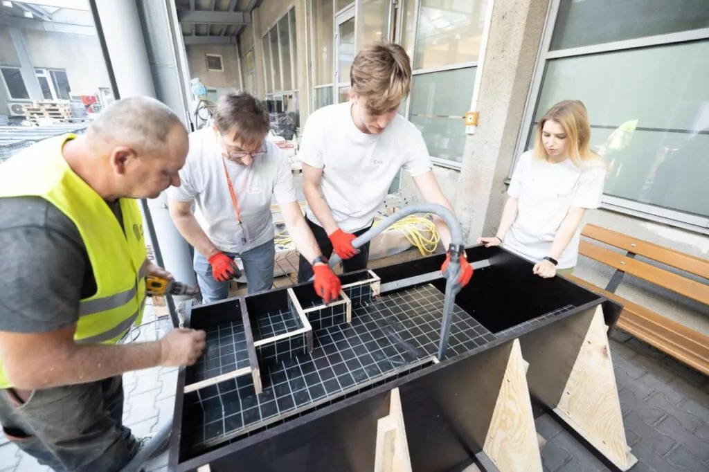 Trzeciego dnia warsztatów studenci kończyli montaż szalunków, uszczelniali je, skręcali i wkładali zbrojenie.