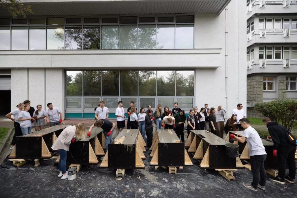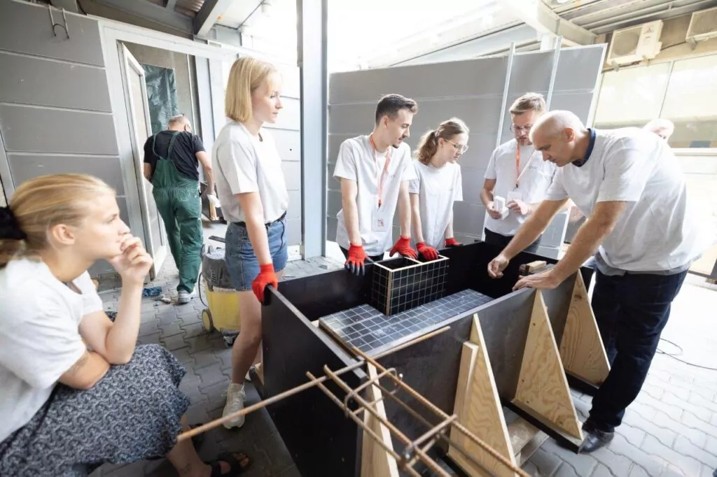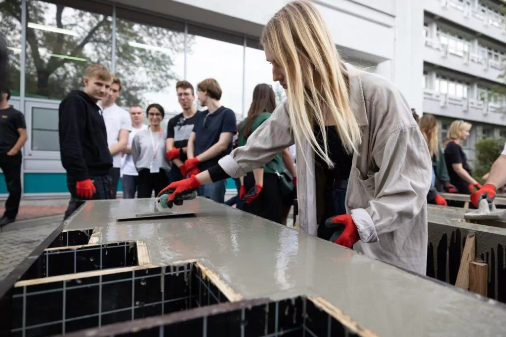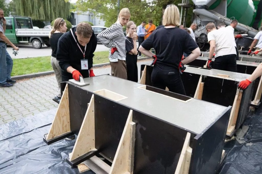 W warsztatach organizowanych od 11 do 15 września 2023 r. przez Stowarzyszenie Producentów Cementu, Katedrę Projektowania Architektonicznego Wydziału Architektury Politechniki Krakowskiej oraz Katedrę Technologii Materiałów Budowlanych Wydziału Inżynierii Materiałowej i Ceramiki Akademii Górniczo-Hutniczej wzięło udział 30 studentów, którzy reprezentowali wydziały architektury 6 politechnik: wrocławskiej, krakowskiej, śląskiej, poznańskiej, gdańskiej i lubelskiej.