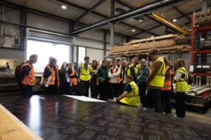 W firmowej stolarni studenci oglądali przygotowywany właśnie szalunek mostu składający się z 56 elementów.