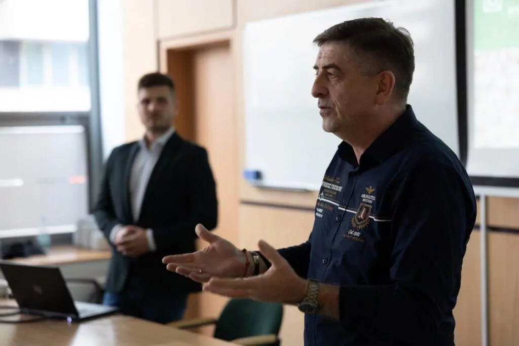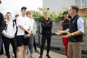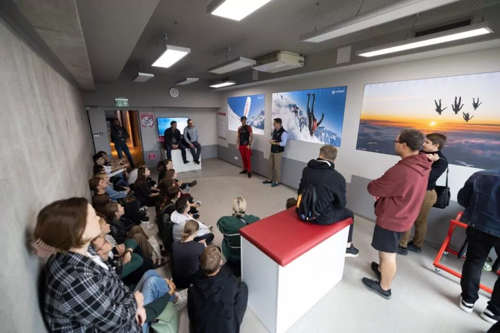 Kolejnym punktem na trasie wyjazdu studialnego był tunel aerodynamiczny FLYSPOT w Katowicach. Naszym przewodnikiem był Michał Braszczyński – pomysłodawca i budowniczy FLYSPOT, a obecnie prezes zarządu Aerotunel Sp. z.o.o.